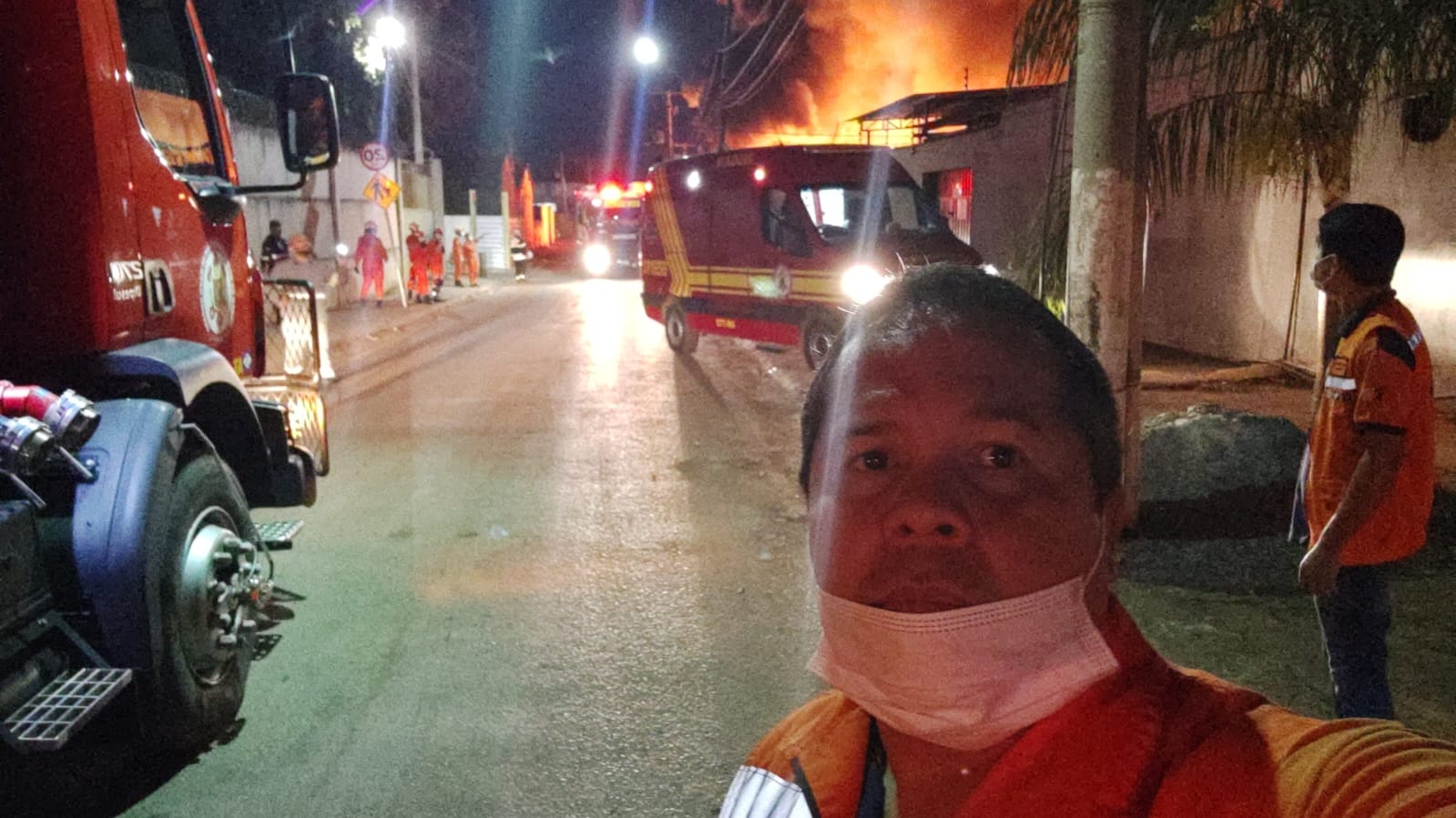 Defesa Civil de Cuiabá atua em apoio ao Bombeiro no combate a incêndio de grandes proporções