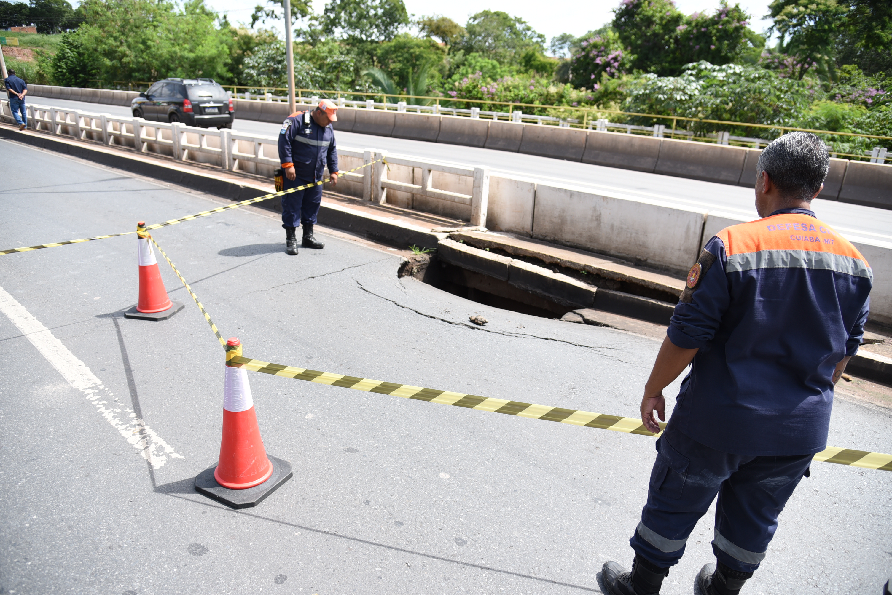 A Defesa Civil de Cuiabá interditou na manhã desta sexta-feira (18), uma das vias da ponte sobre o Rio Coxipó, que passa na Avenida Arquimedes Pereira Lima (Estrada do Moinho), após constatar um defeito na pista, provavelmente provocado por um deslizamento de terra. O diretor da Defesa Civil, José Pedro Zanetti, explica que após o fechamento da via, será necessário a avaliação para constatar qual a causa do problema. A pista interditada faz a ligação no sentido Centro ao Coxipó.