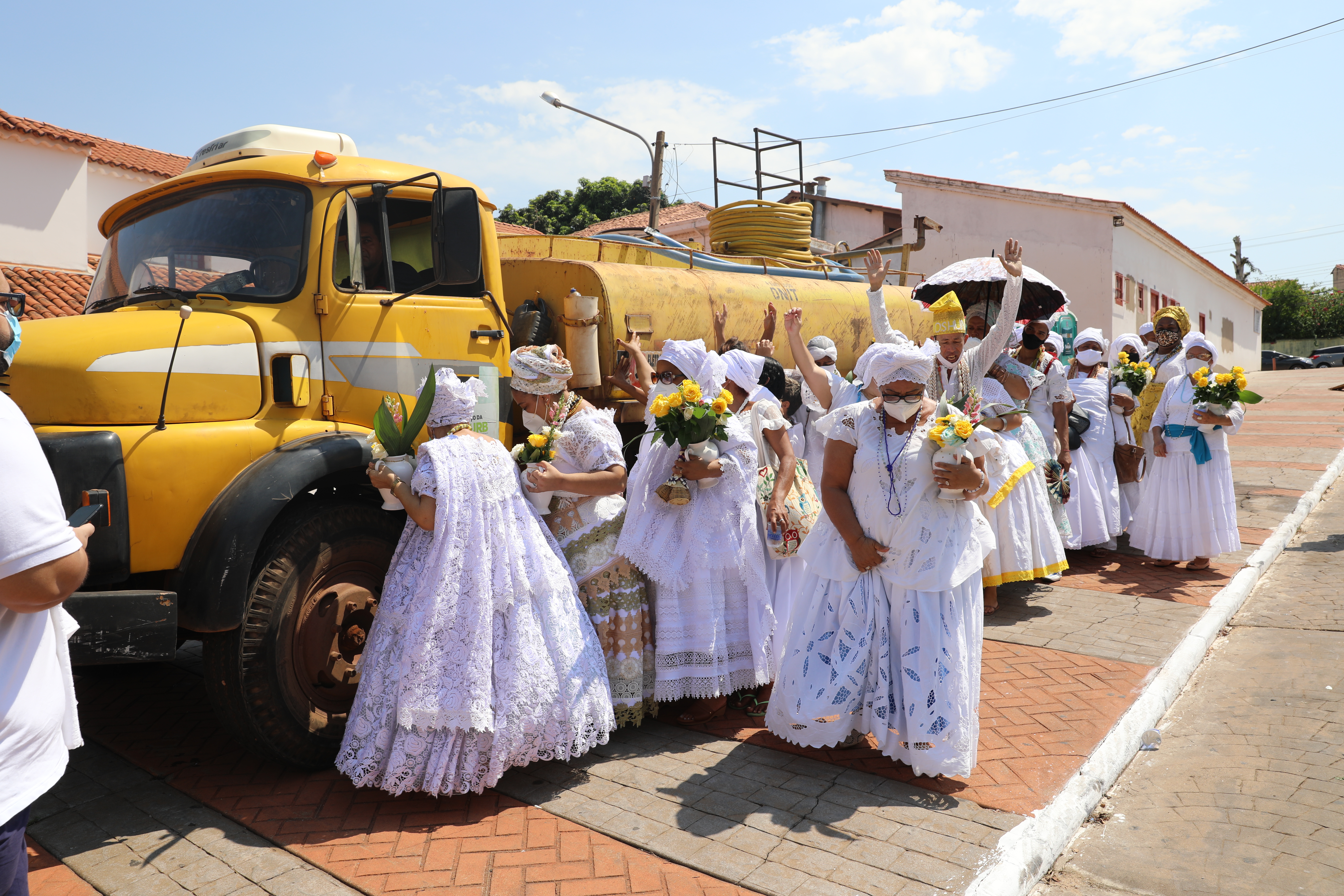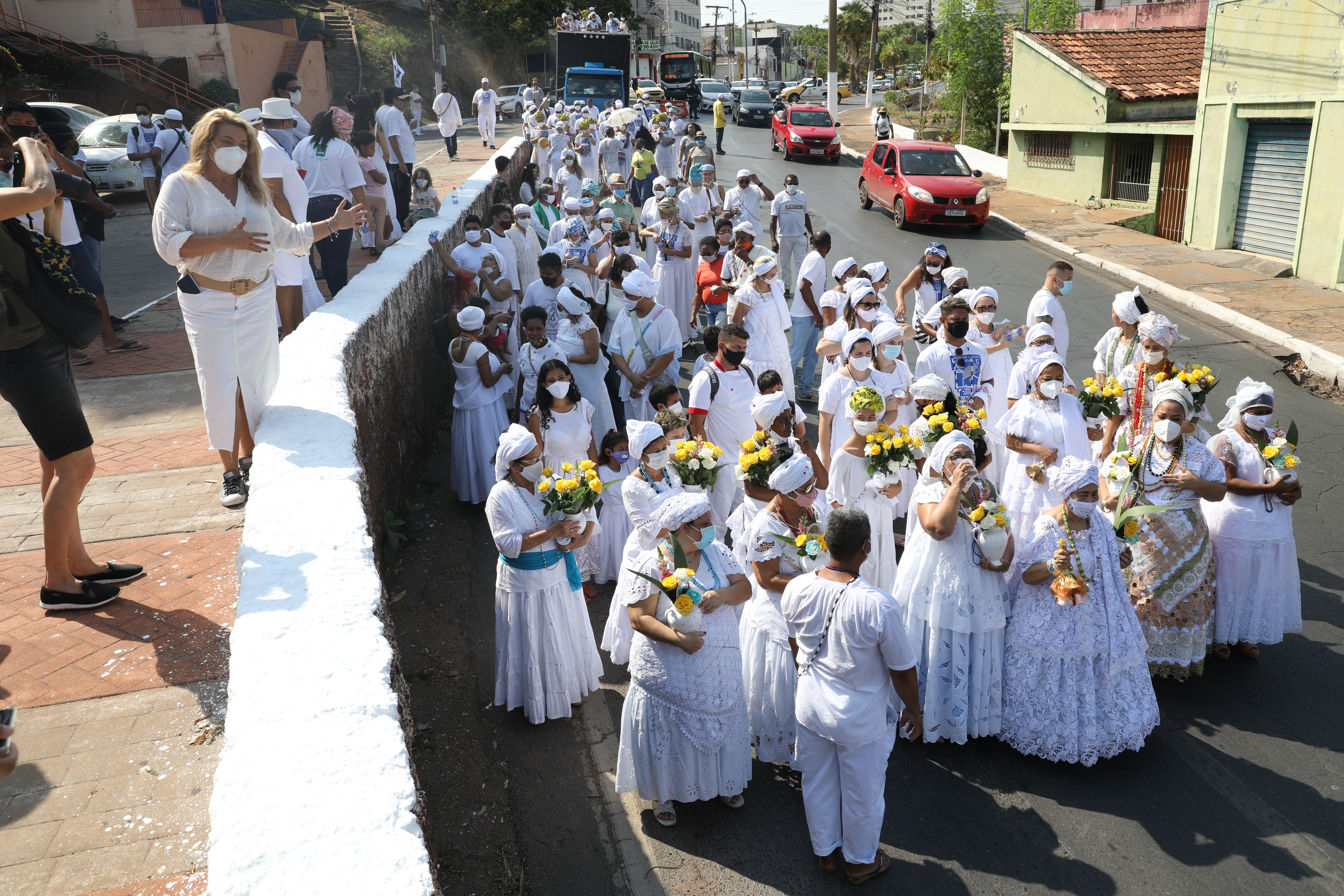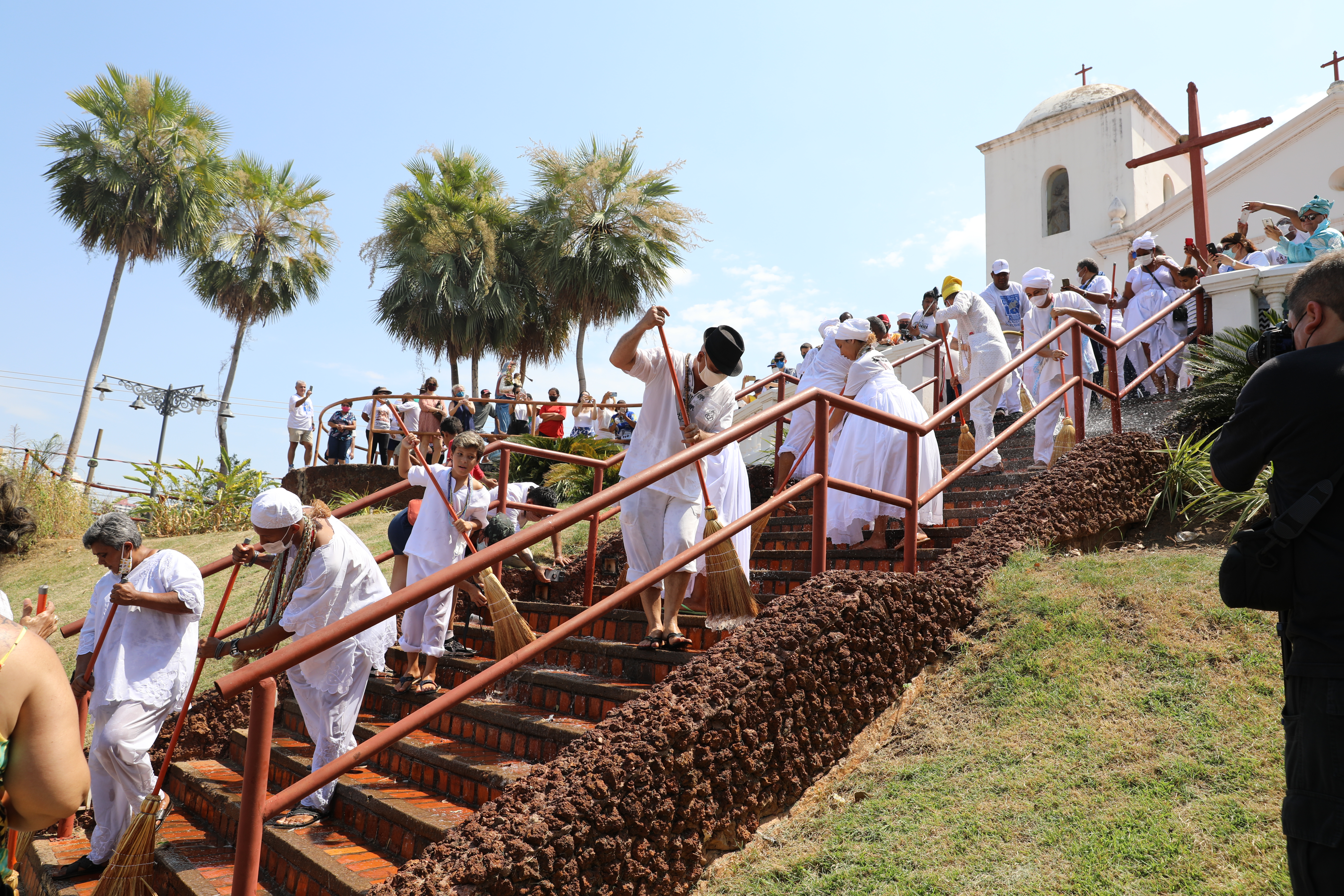 Ao som de tambores, dos Xequerês e entoando cantos africanos, os participantes desceram a avenida Coronel Escolástico em direção a igreja onde foram soltas pombas em referência a paz, antes da lavagem das escadarias.