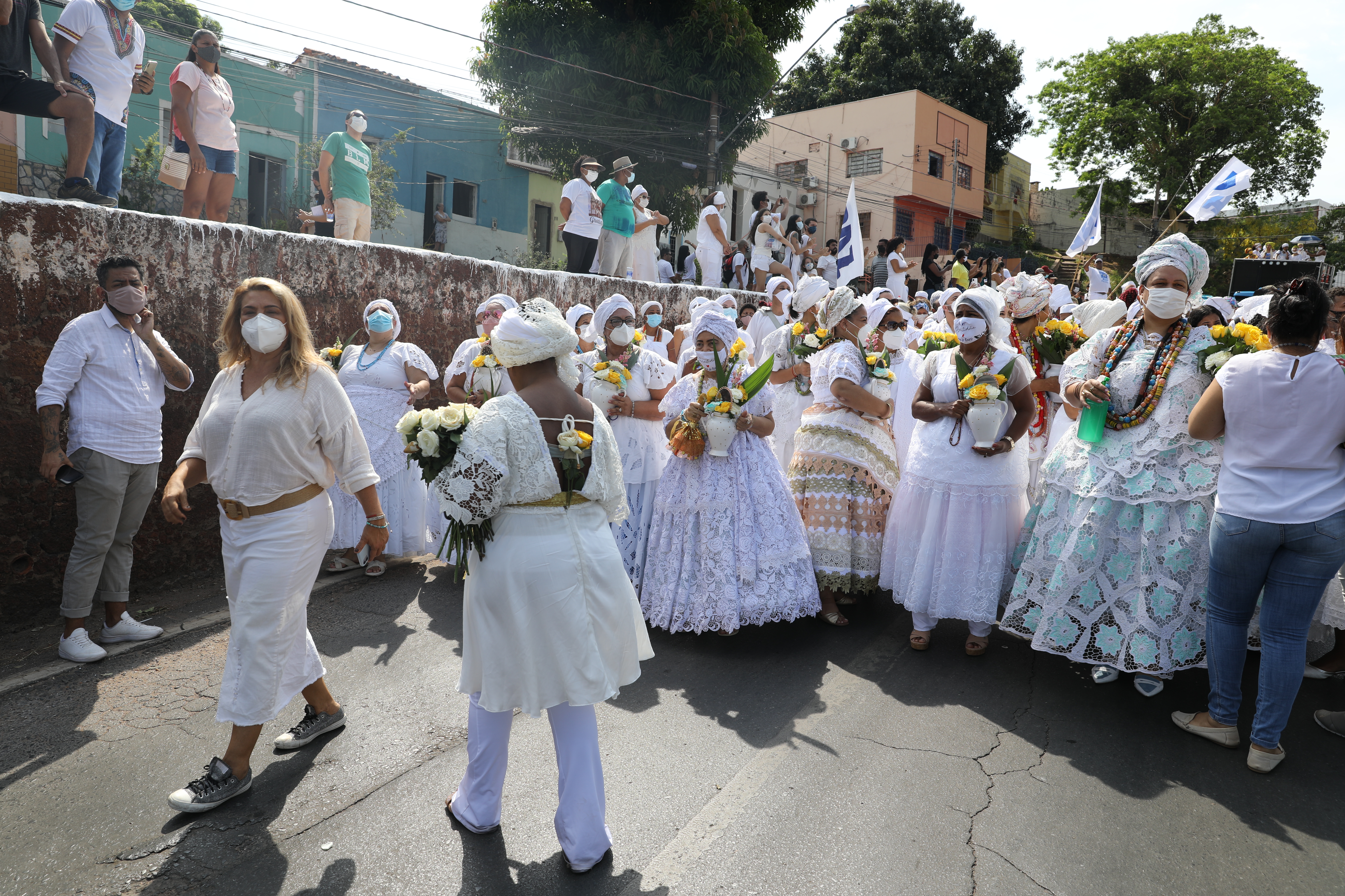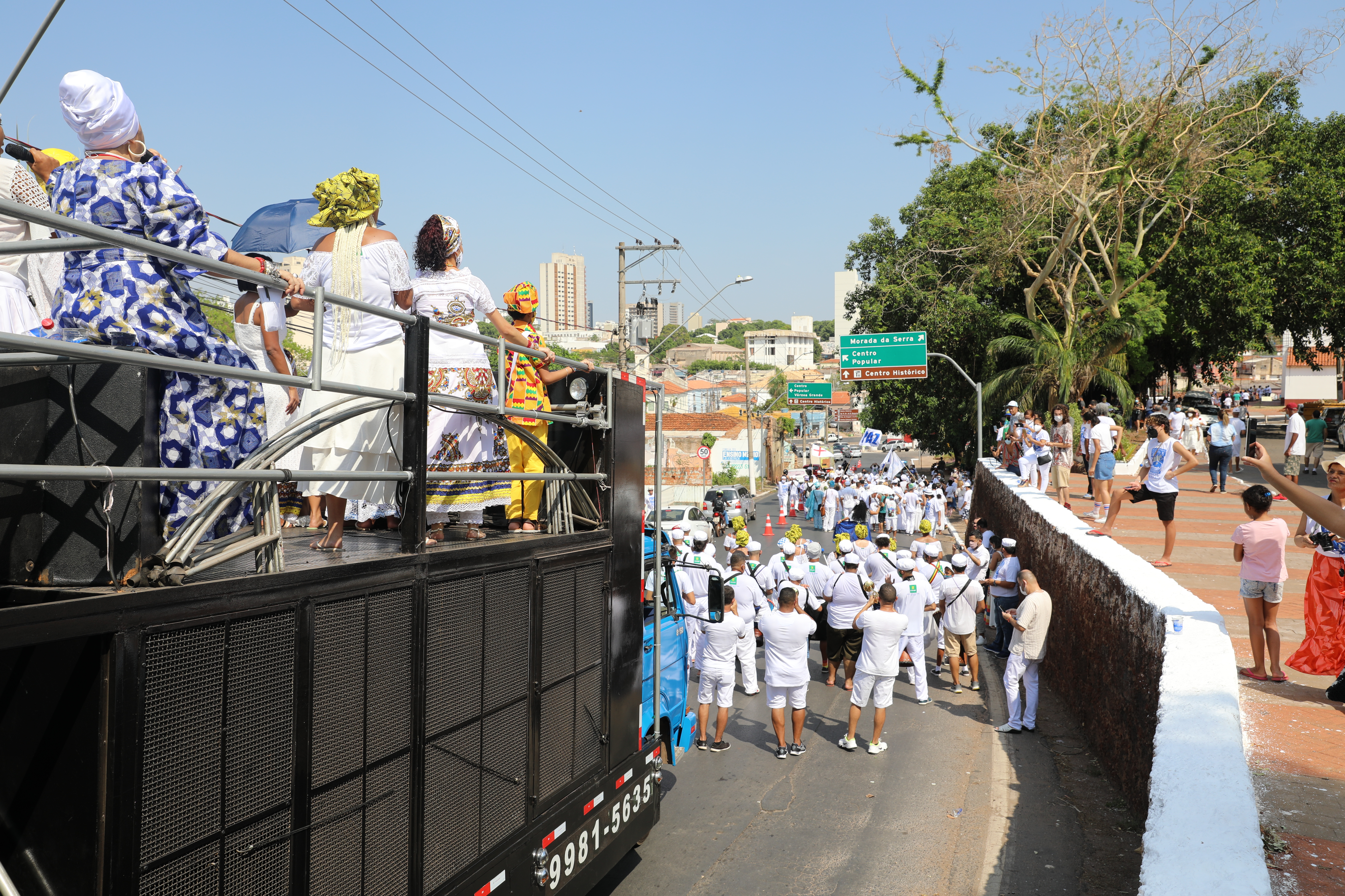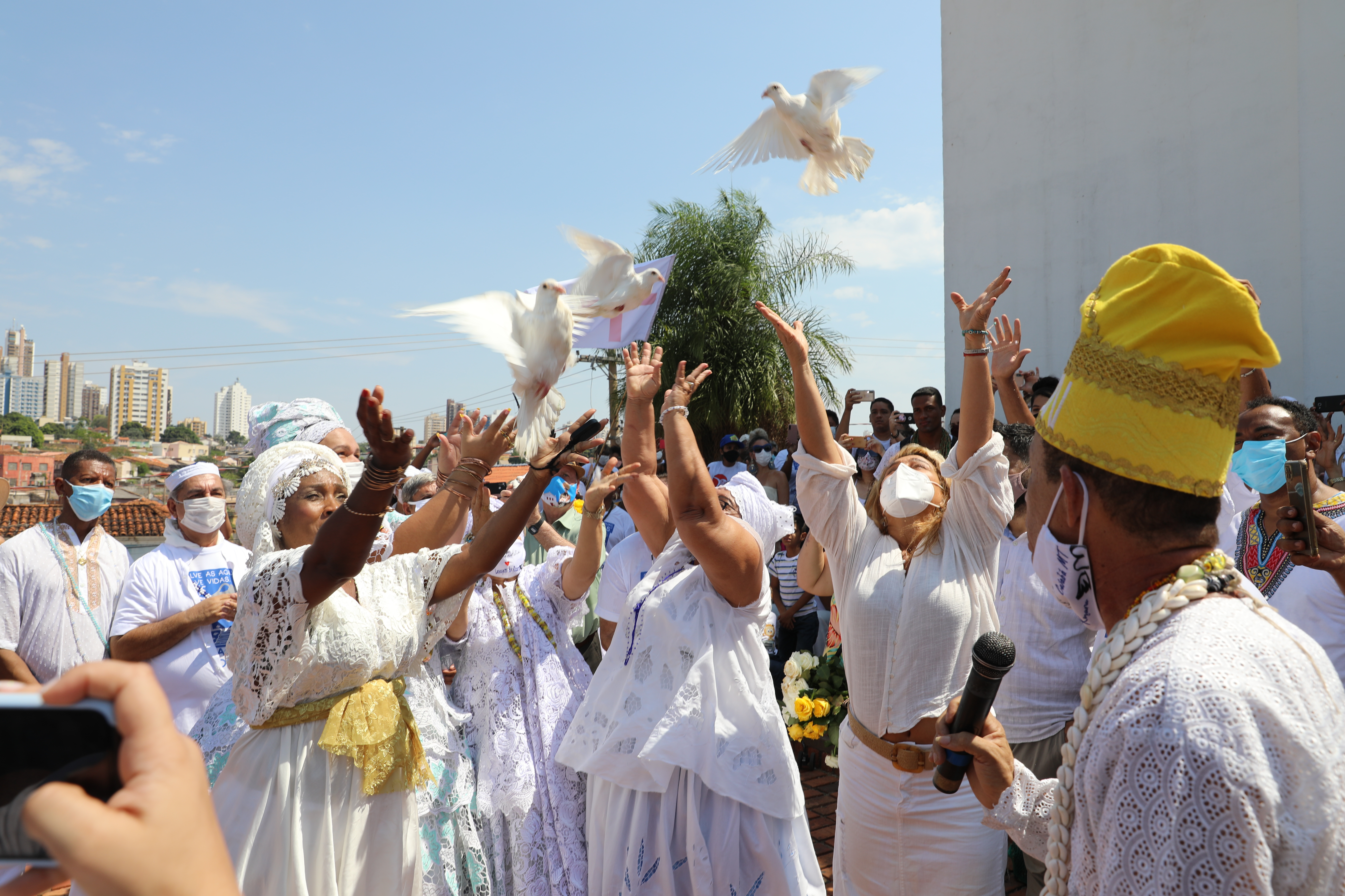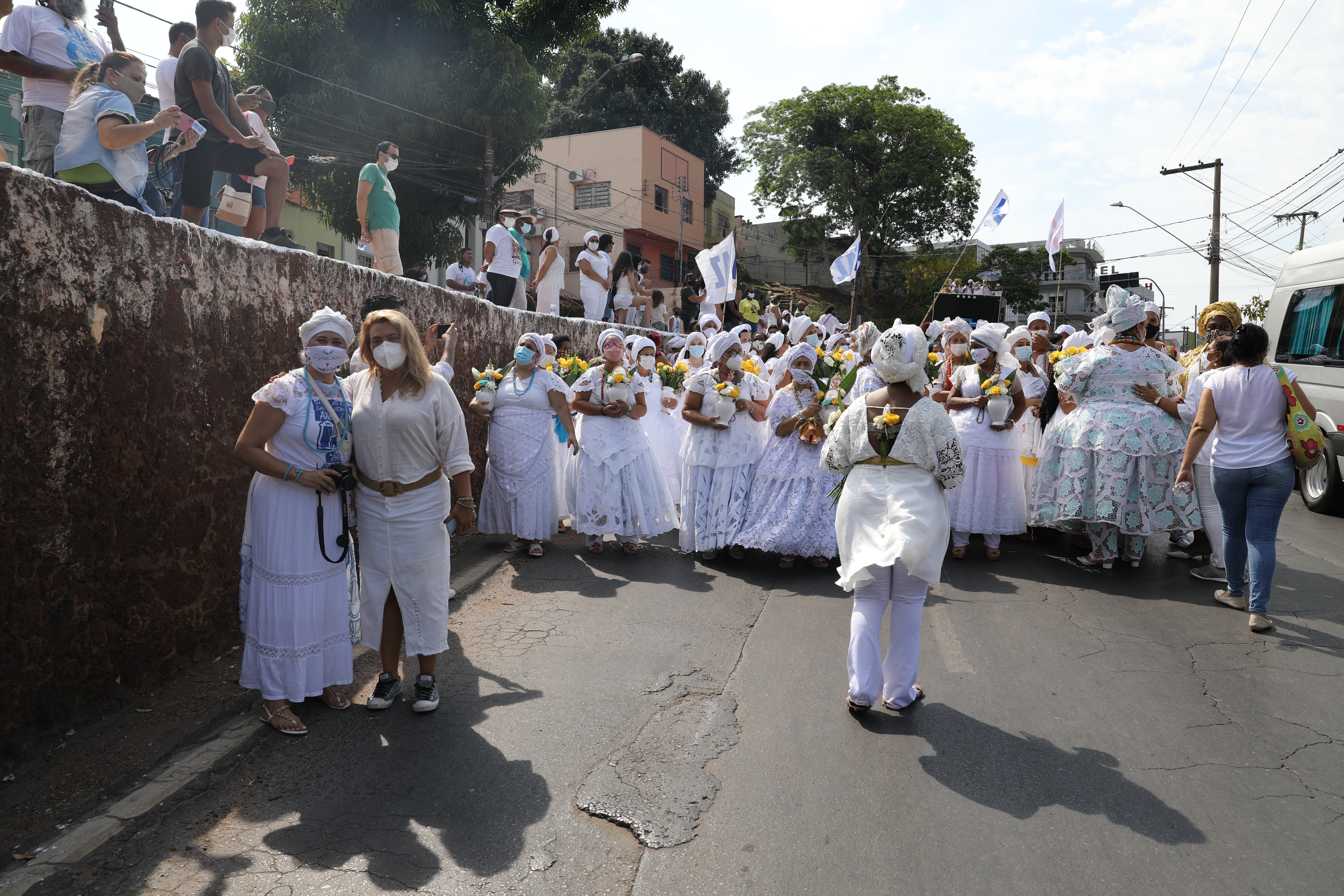 Ao som de tambores, dos Xequerês e entoando cantos africanos, os participantes desceram a avenida Coronel Escolástico em direção a igreja onde foram soltas pombas em referência a paz, antes da lavagem das escadarias.