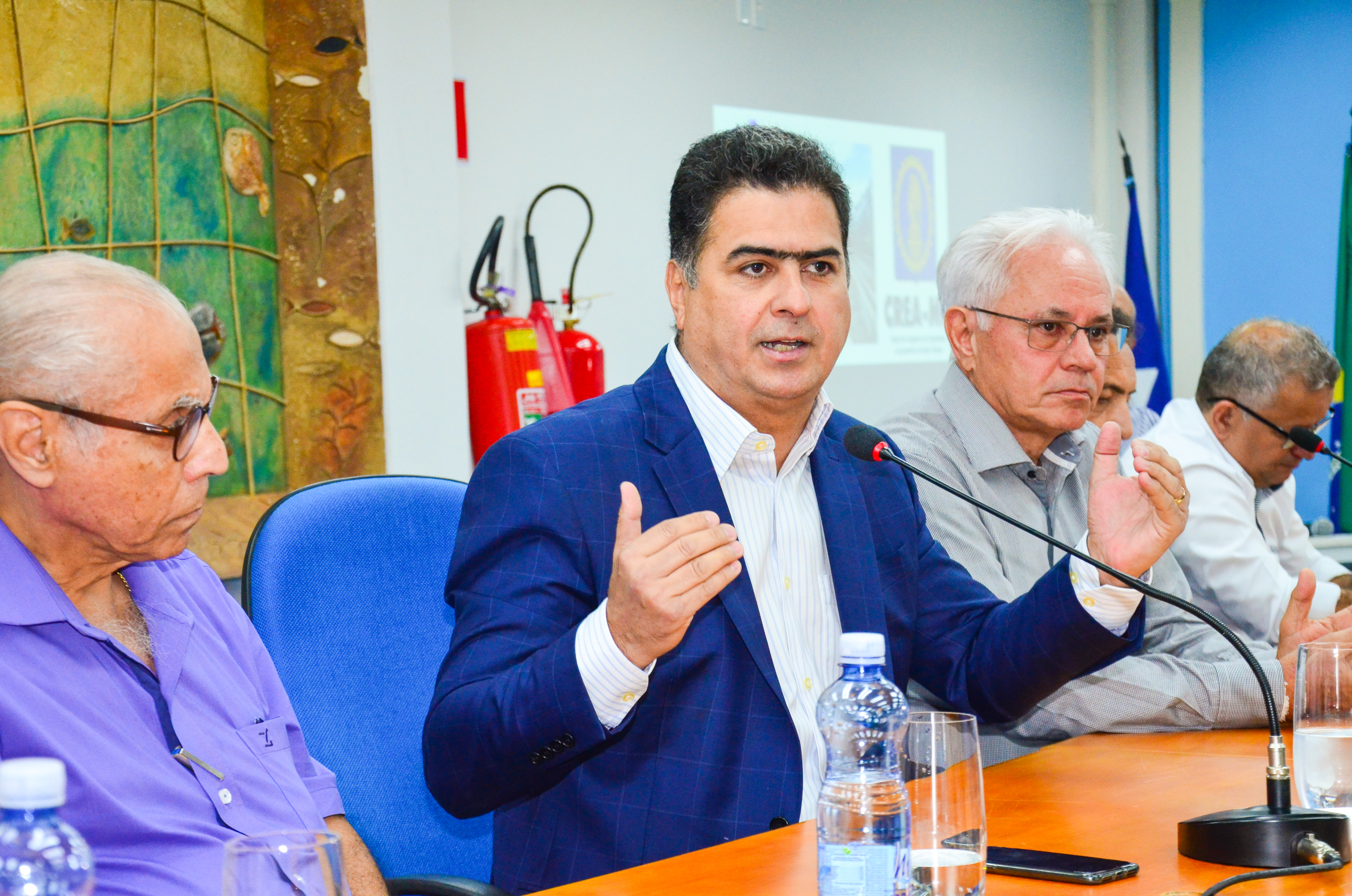O prefeito de Cuiabá, Emanuel Pinheiro, participou nesta segunda-feira (12) da audiência pública promovida pelo Instituto de Engenharia de Mato Grosso em parceria com o Conselho Regional de Engenharia e Agronomia (CREA- MT) para debater a retomada das obras do Veículo Leve sobre Trilhos (VLT).