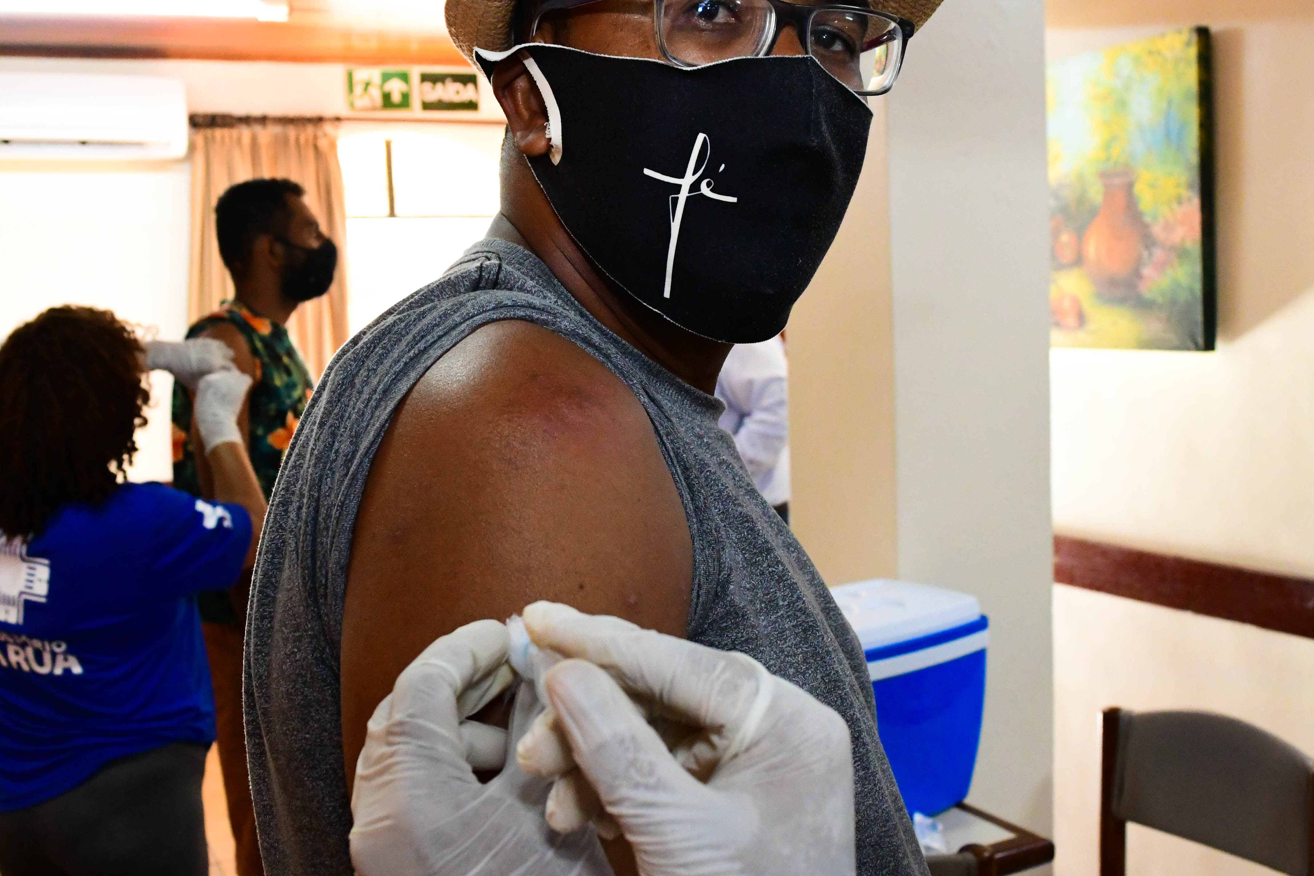 “É uma ação muito importante. Eu fiquei feliz em ser vacinado. Agora sigo buscando uma oportunidade para voltar para minha cidade e para meus três filhos e neto”, resumiu Geel ao receber a dose única da Janssen.