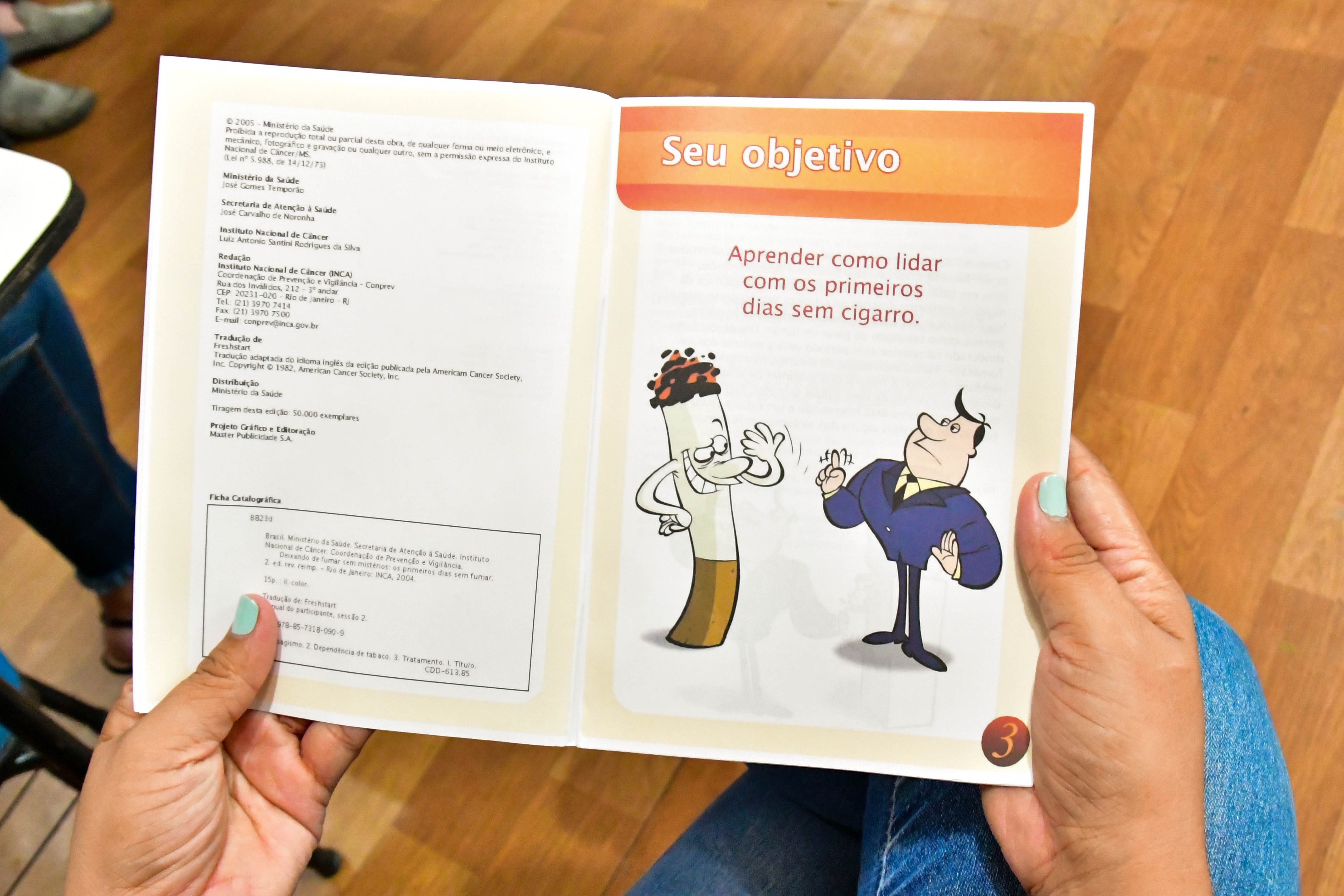 No Programa de Cessação ao Tabagismo, os pacientes participam de quatro encontros em grupo, que são conduzidos pela enfermeira da unidade e por outro profissional da equipe multidisciplinar, composta por dentista, psicólogo, médico. A cada encontro, eles recebem um material educativo, com informações sobre como lidar com a abstinência, o estresse, aprendem a fazer exercícios que podem aliviar a tensão, entre outras orientações.