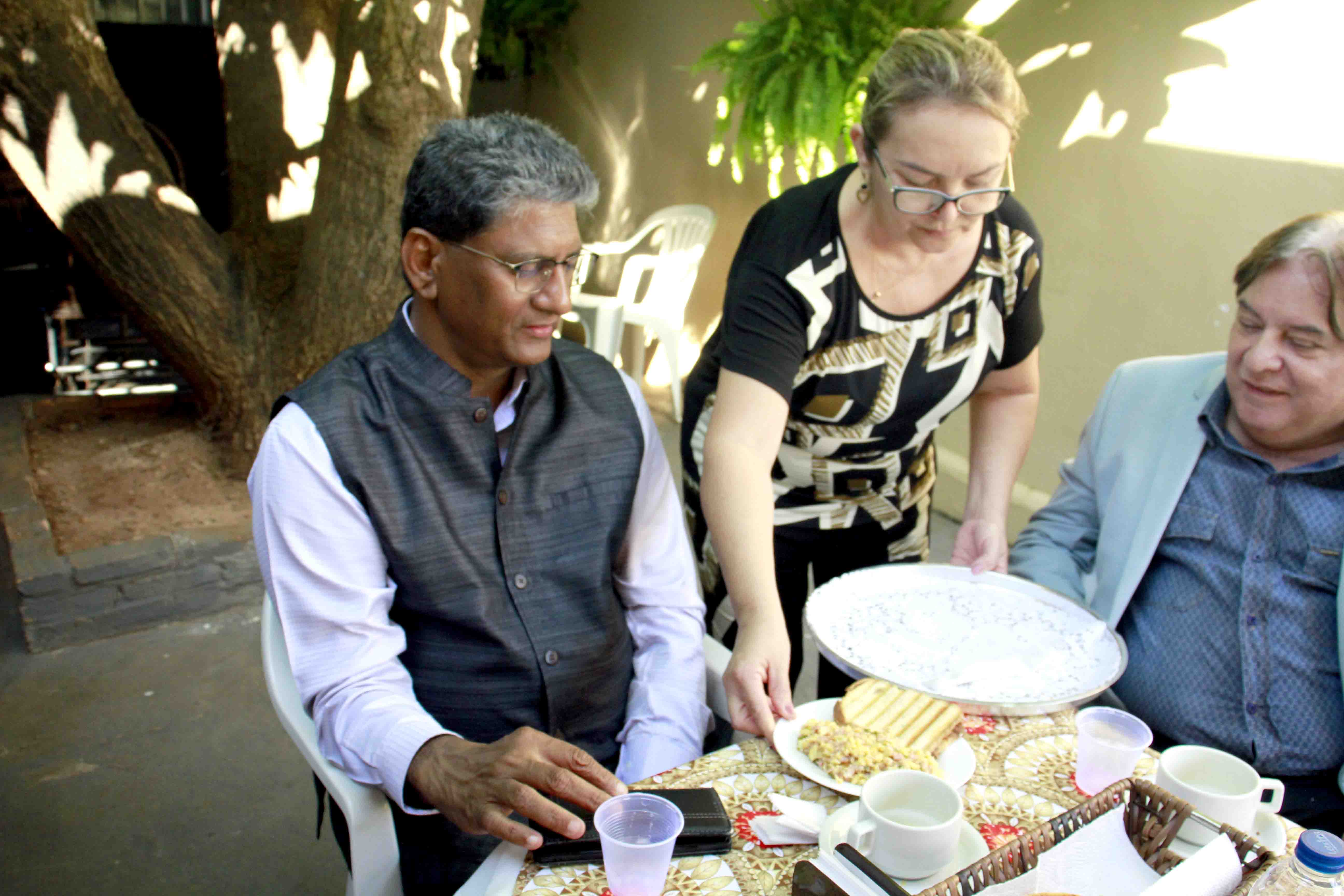 O embaixador da Índia no Brasil, Suresh Reddy, cumpre uma ampla agenda de atividades objetivando o fomento as relações e potencializar parcerias com Cuiabá. Na manhã desta terça-feira (20), o diplomata apreciou um delicioso café da manhã no tradicional ‘Chá com Bolo Cuiabano da Tia Fran’.