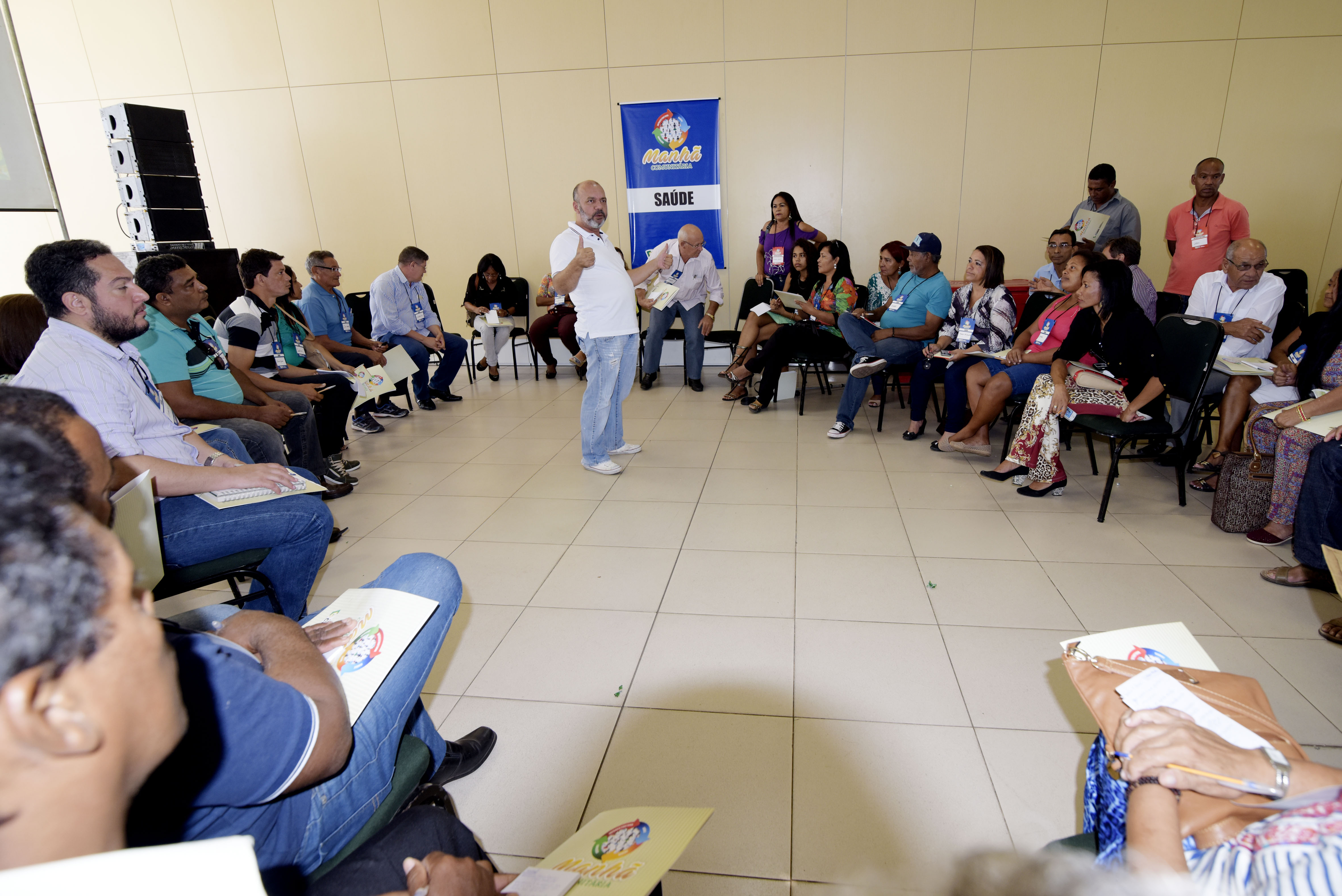 Ao se inscreverem para o encontro, os participantes receberam crachás com cores diferentes e, após a abertura, foram divididos em quatro grupos: o da Infraestrutura, coordenado pelos secretários Marcelo de Oliveira (Obras Públicas) e Thiago França (Mobilidade Urbana); Social, coordenado pelo secretário-adjunto de Assistência Social, César Vidotto; Educação, coordenado pela secretária de Educação, Marioneide Kliemaschewsk; e Saúde, coordenado pelo secretário Ary Soares e o secretário-adjunto de Assistência, Daoud Abdallah.