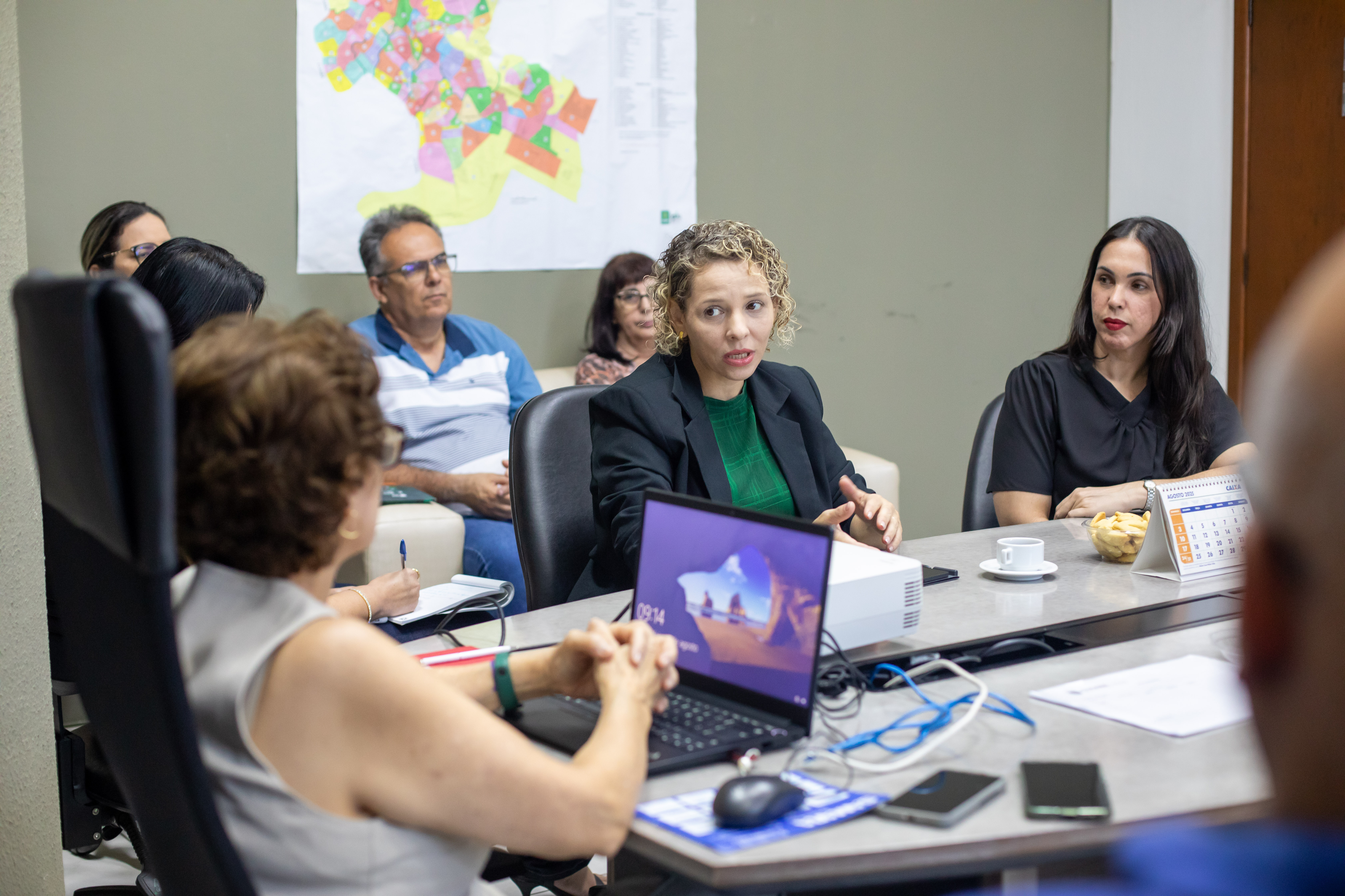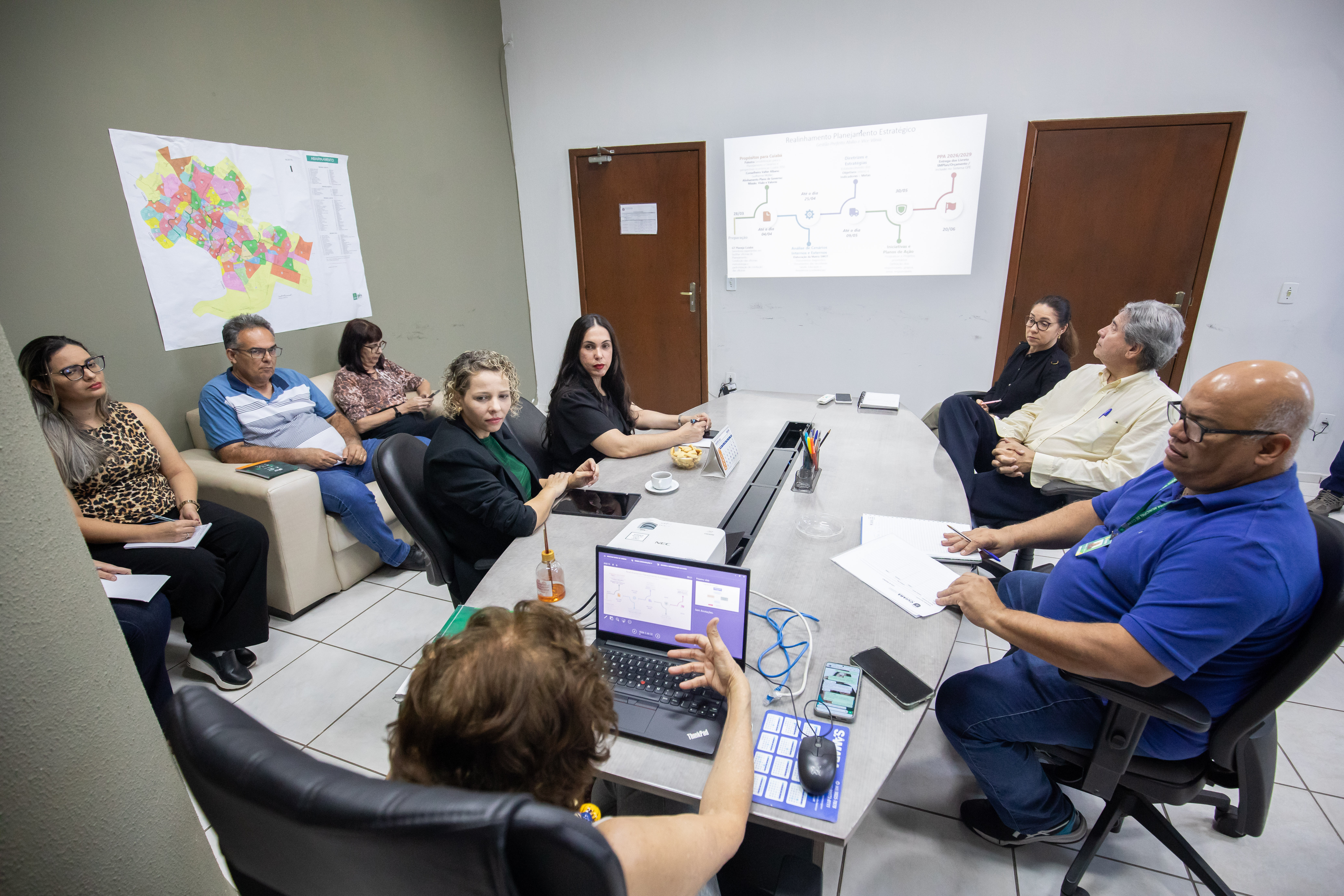 Durante a reunião, a diretora de Planejamento, Silvina Maria dos Anjos, fez uma explanação sobre o mapa estratégico de Cuiabá desenvolvido para o período de 2025 a 2029 e sobre o funcionamento do Programa de Apoio ao Gerenciamento do Planejamento Estratégico dos Municípios (GPE).