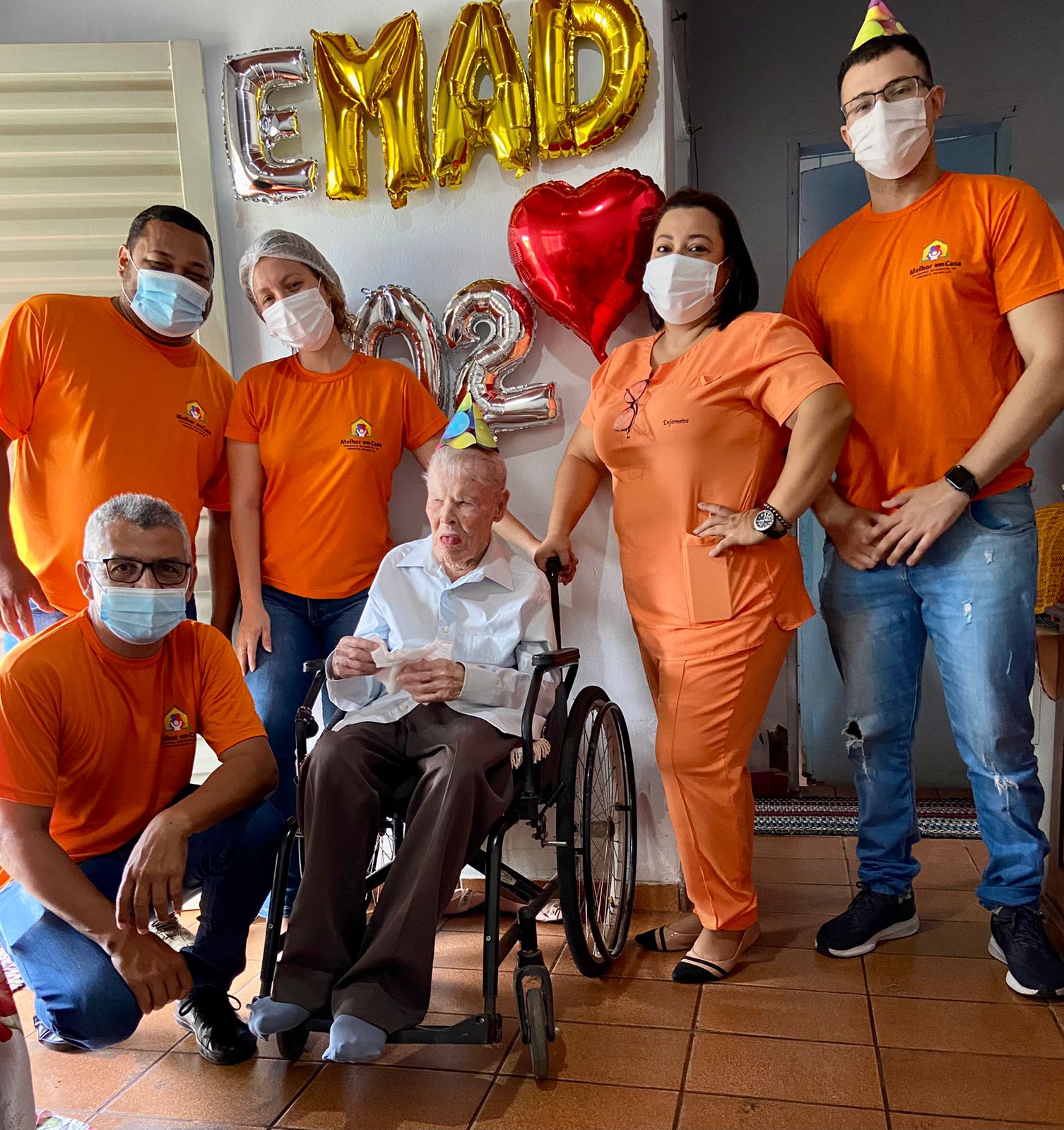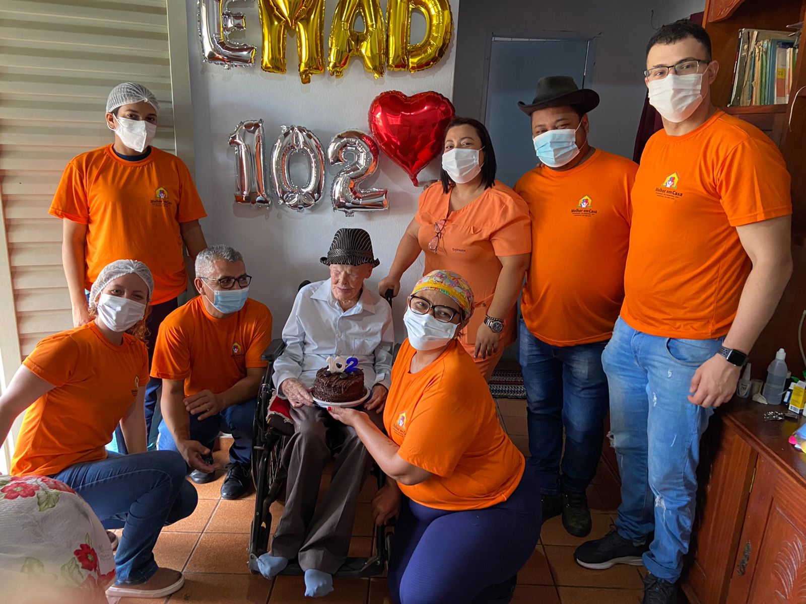 Com direito a decoração de balões, bolo, chapeuzinho, velas, muito amor, carinho e alegria. Assim foi a festa de aniversário do senhor Horelino Alves da Silva, que completou, na quinta-feira (10), 102 anos. A celebração foi organizada pela Equipe Multidisciplinar de Atendimento Domiciliar (Emad), vinculada ao Programa Melhor em Casa, em sua residência, localizada no bairro Parque Atalaia I, na Capital.