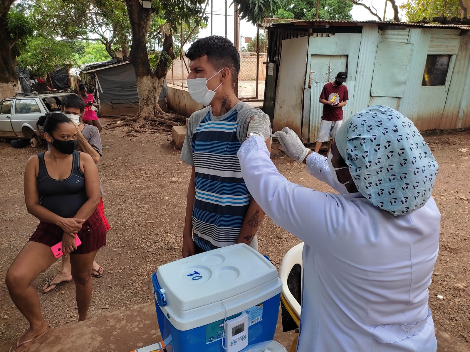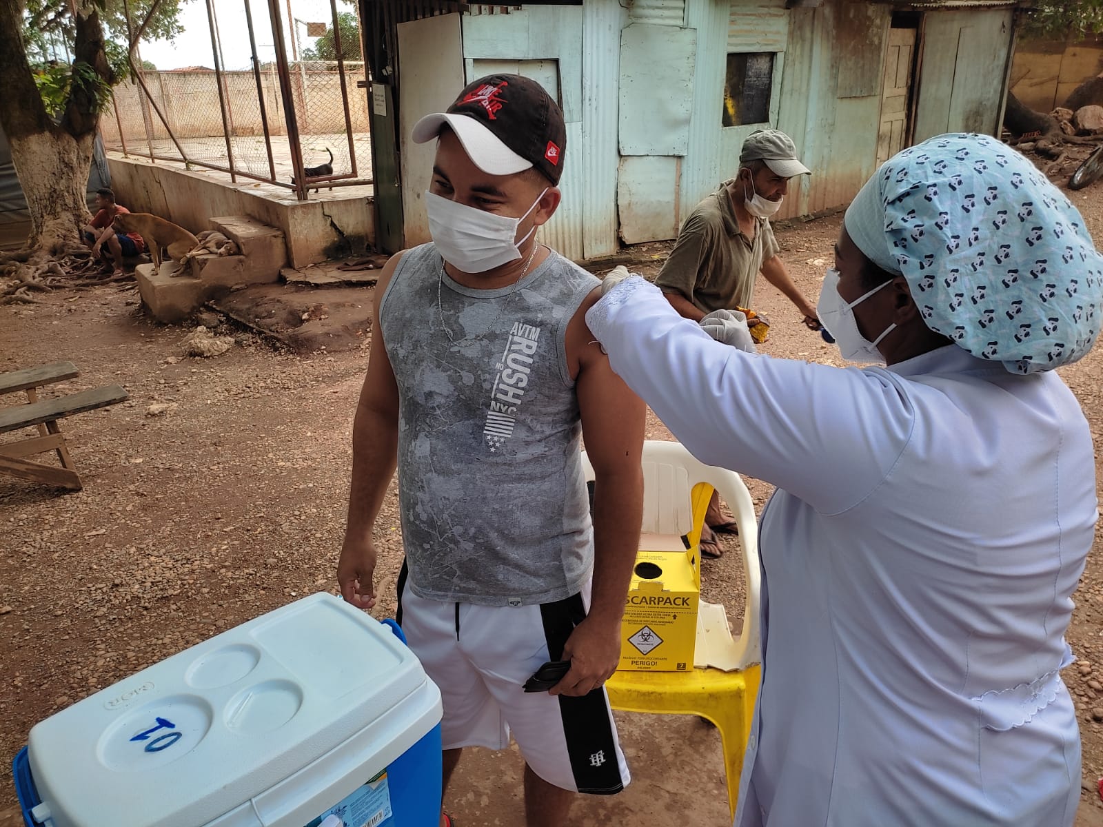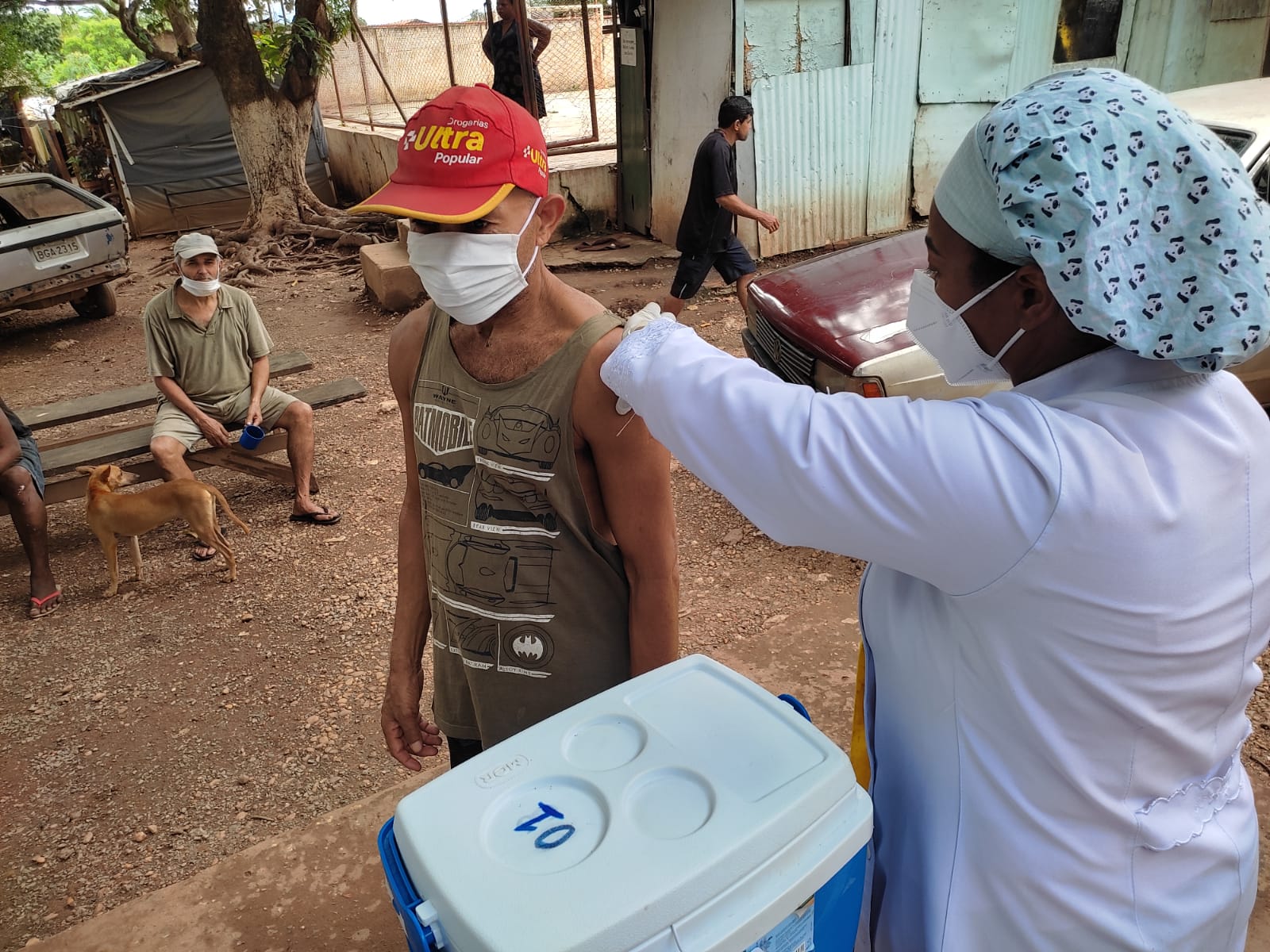 O trabalho começou em 2020, integrando a campanha “Vacina Cuiabá – sua vida em primeiro lugar” e segue, agora com foco na dose de reforço dos públicos já citados. No entanto, as equipes ainda encontram quem ainda está na primeira dose, como é o caso das pessoas que vivem na comunidade Valentes de Davi, onde cerca de 30 adultos receberam a primeira dose na última quarta-feira (26). “A comunidade fica há 5 minutos da unidade básica de saúde do Novo Colorado e, por isso, não faz parte da abrangência do Consultório na Rua, mas atendendo ao pedido da secretária Suelen Alliend, fizemos esse atendimento e vamos dar atenção especial a cinco idosos que identificamos lá e que precisam de alguns cuidados”, explica Dejamir Soares, enfermeiro e coordenador do Consultório na Rua.