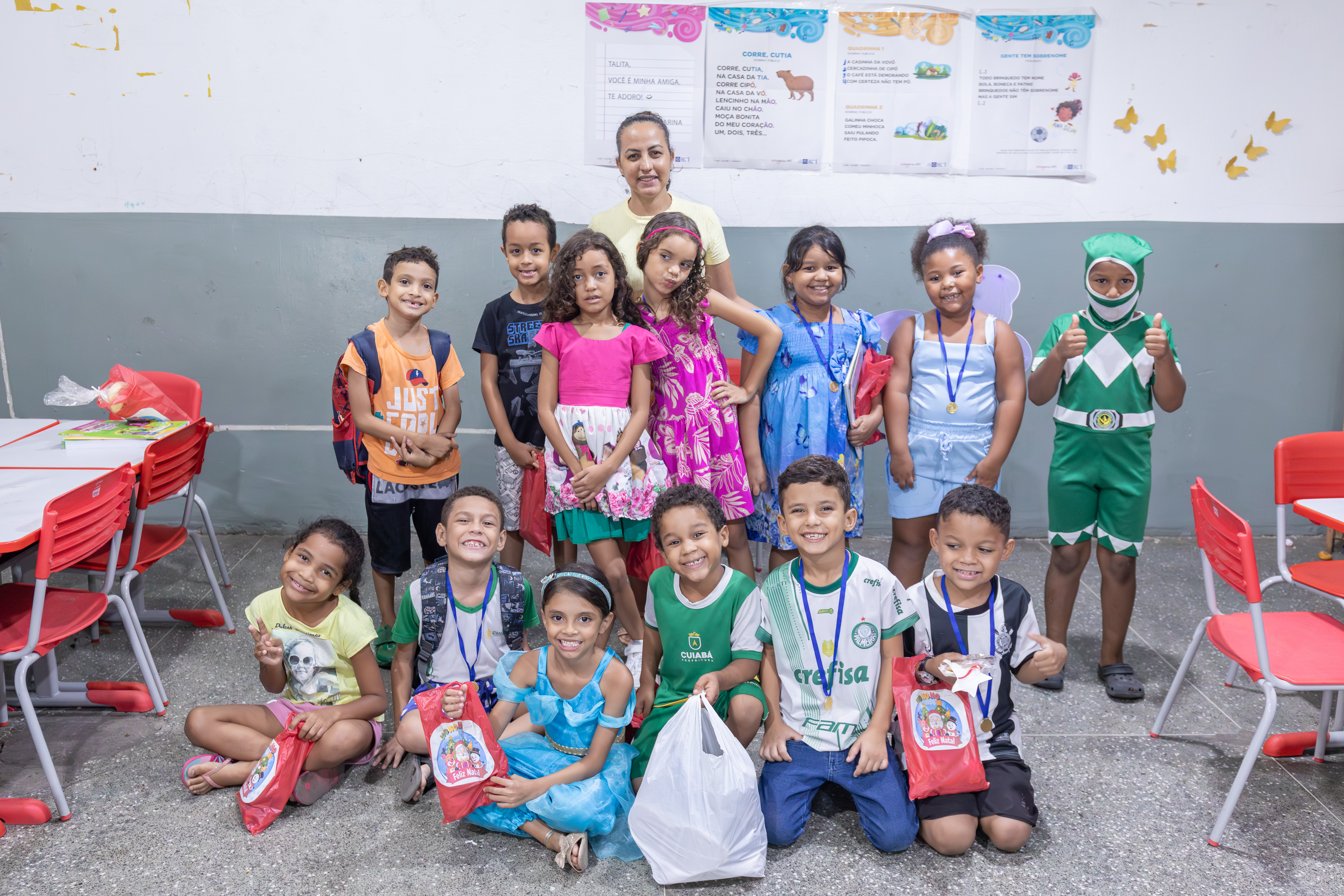 Para atrair alunos a participar do último dia do ano letivo, realizado na sexta-feira (19), a Escola Municipal de Educação Básica Jean Carlos Pinho Santos, localizada no bairro Pedra 90, recorreu a inovação. Nesta data, foi vivido o “Dia da Fantasia”, onde as crianças foram convidadas a explorar a criatividade, imaginação e conviver com os colegas de sala de aula fantasiados de super-herói, conforme a livre escolha de cada um.