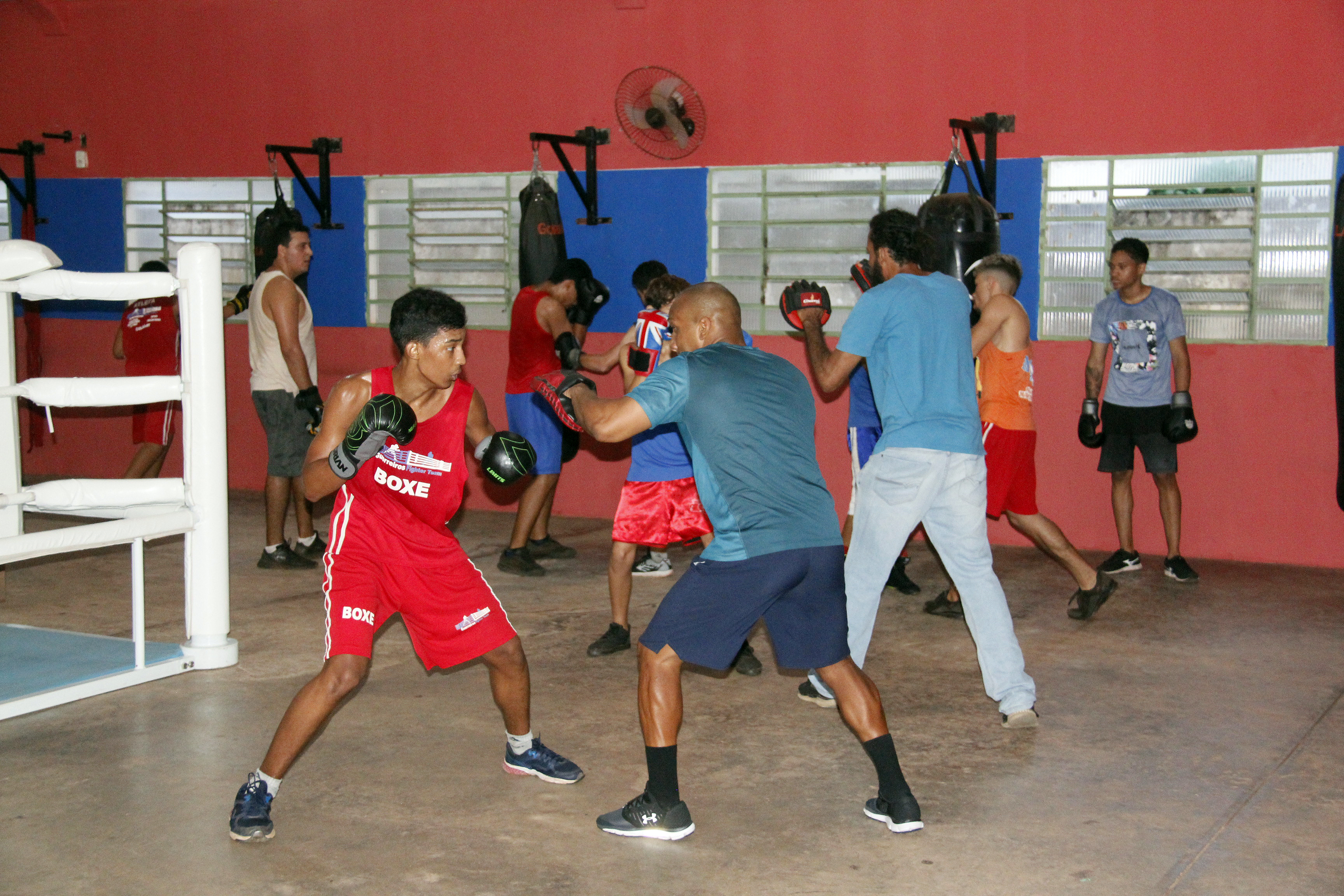 Um salão de paredes vermelhas. Ao centro um ringue. Nas laterais, meninos se revezam ao som dos punhos em choque contra os sacos de areia, que se movimentam. O Centro Cultural do bairro 1º de Março é arena de treinamento de cerca de 25 jovens, que liderados pela professora e ex-pugilista, Maristela Jesus Moraes Souza, aprendem sobre Boxe, mas também sobre disciplina, respeito e doação.
