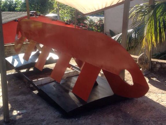 A obra Bicho de Duas cabeças é composta por figuras de peixes, com medidas entre três e 6 metros de chapa. A restauração deve ser concluída nos próximos dias.
