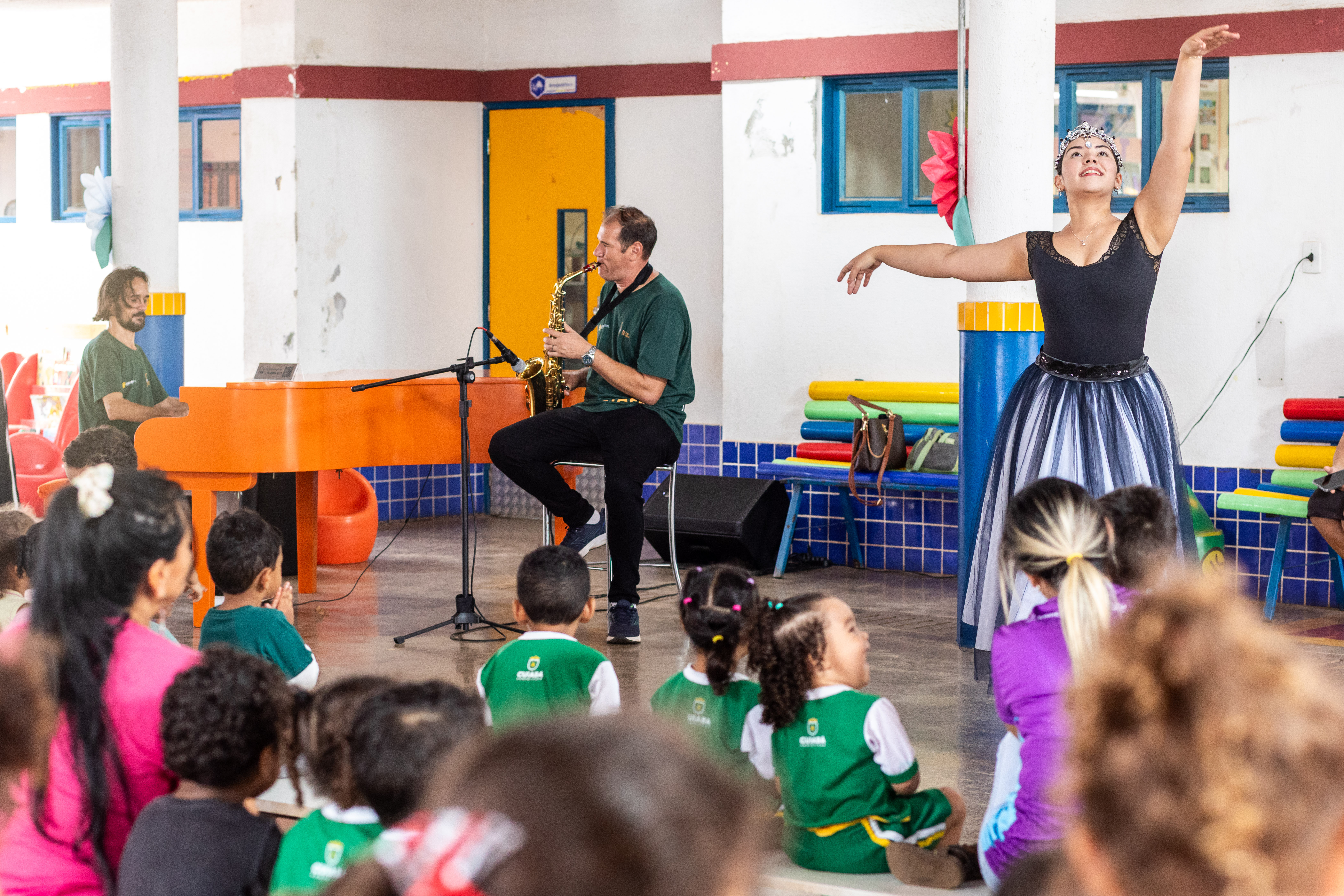 Nesta nova etapa, as apresentações culturais vão contemplar 19 unidades de ensino, divididas em zonas urbana e rural. A apresentação cultural, com duração de uma hora, foi conduzida pelo músico Dário Scherner, idealizador do programa “Piano Gente”, o saxofonista Juscimar Vida, o pianista Arthur Scharneski e a bailarina Julia Fernandes, que acumula experiências em exibições nos grupos “Flor Ribeirinha” e “Flauta Mágica”.