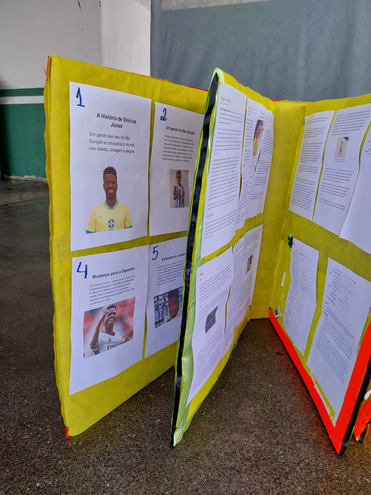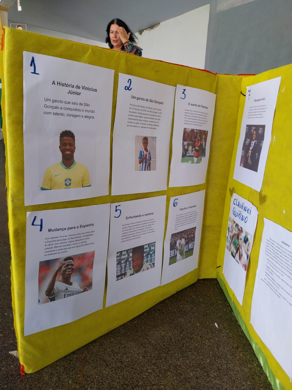 Também foi exibido no pátio um livro contando a história das personalidades negras do esporte. Na relação, estava a história de vida de Edson Arantes do Nascimento, o eterno Pelé (já falecido), do atacante do Real Madrid e da Seleção Brasileira, Vinicius Jr, e o atleta Claudinei Quirino.