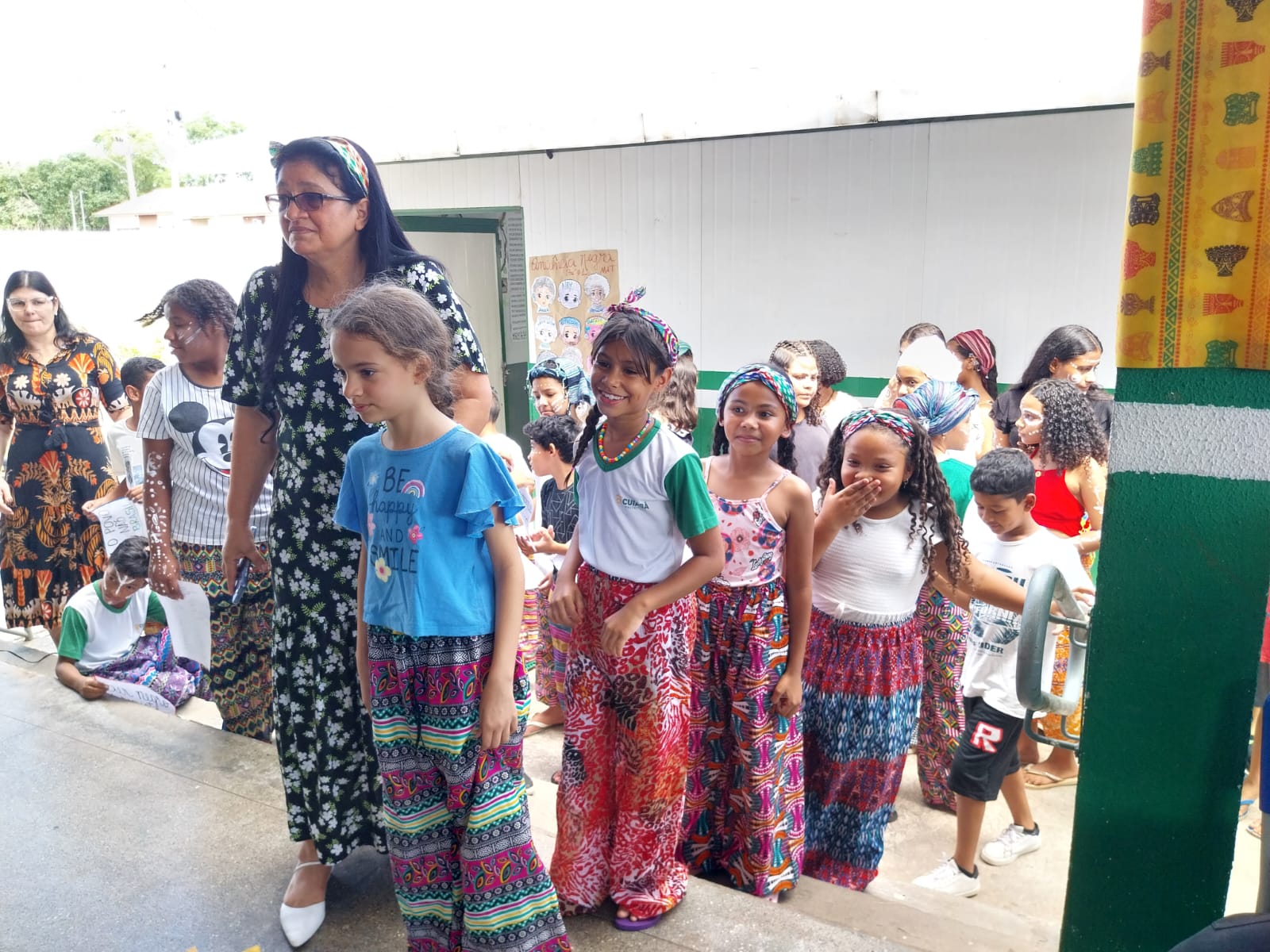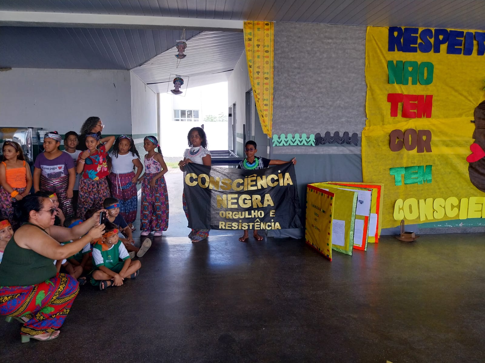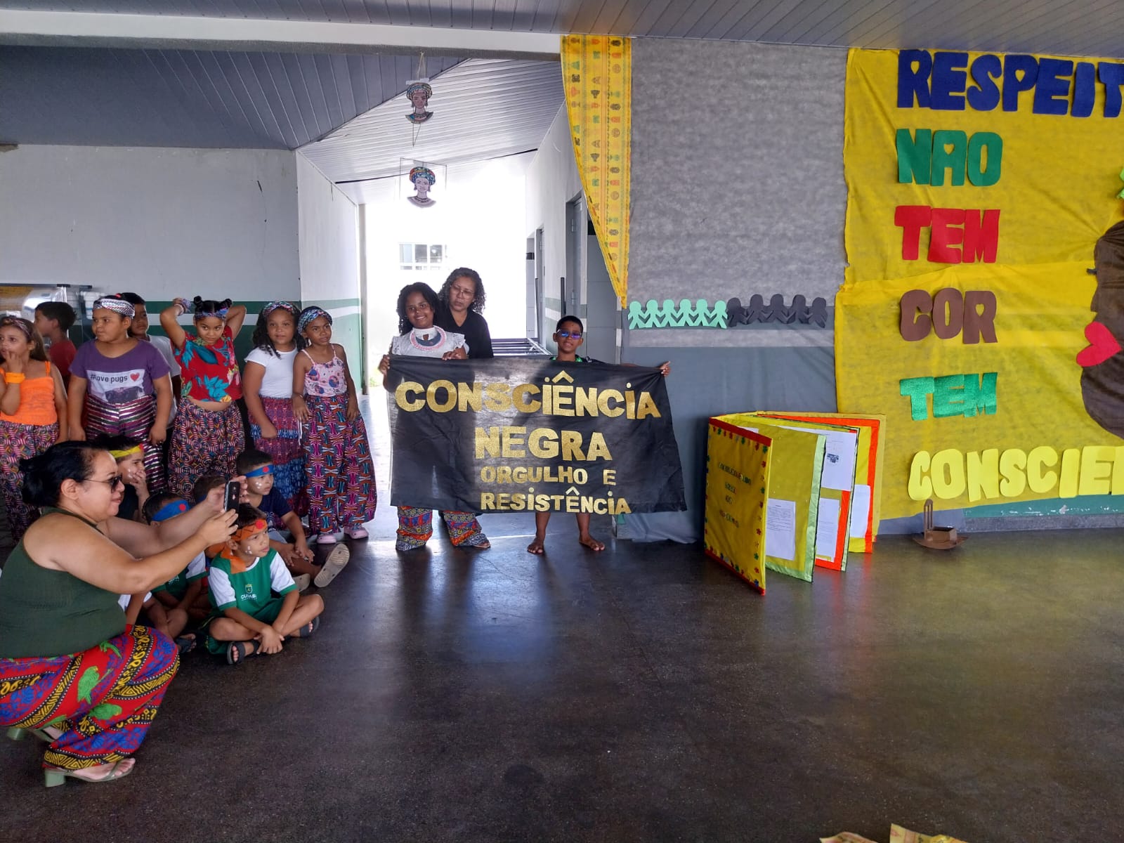 Estudantes matriculados no pré-I ao 5º da Escola Municipal de Educação Básica (EMEB), Profª Lidioliria Santana, localizada nno bairro Residencial Baracat, participaram na sexta-feira (28) de um grande ato de trabalho de conclusão de tarefas escolares destinada a consciência negra e influência da África na cultura brasileira.