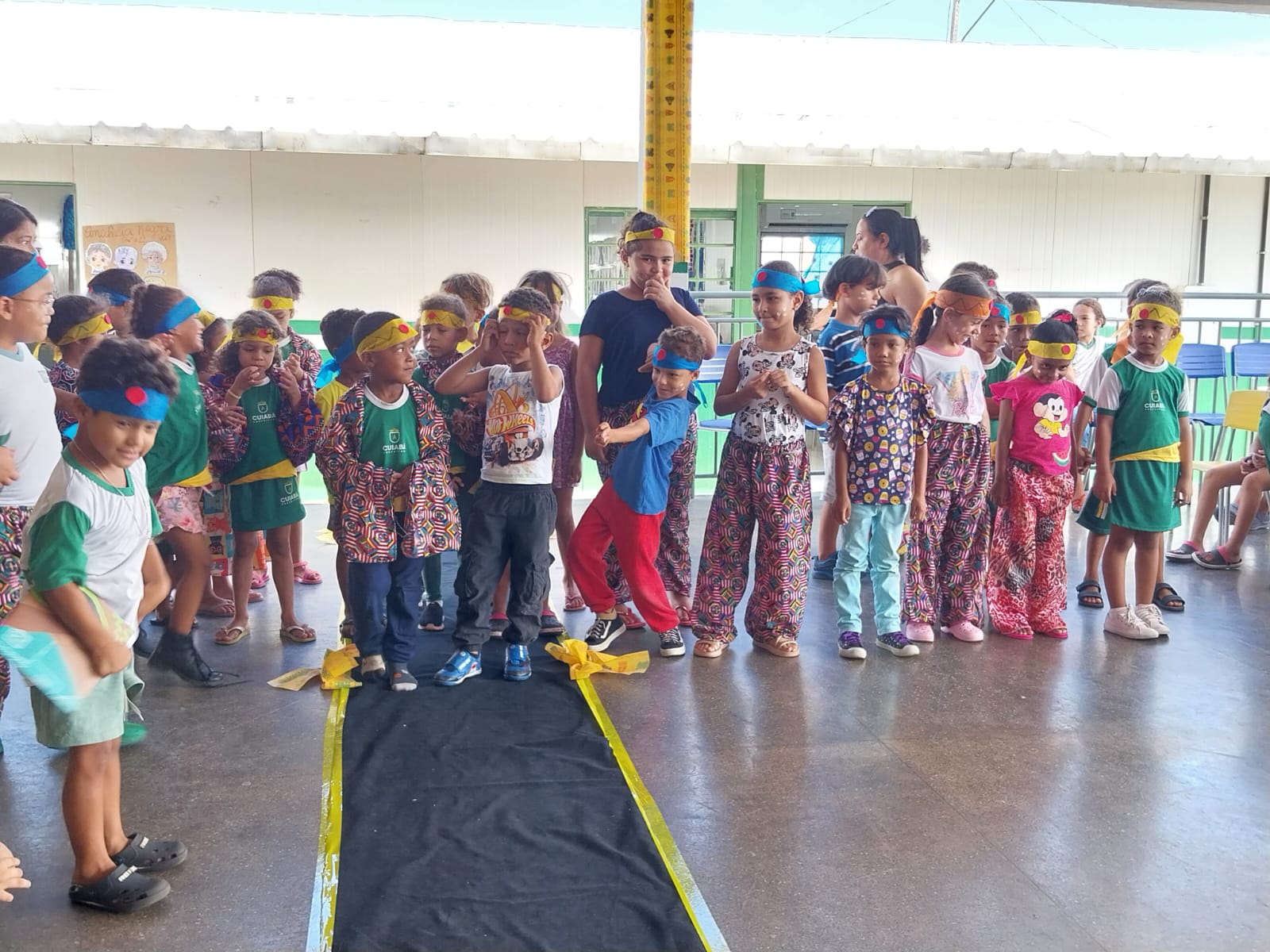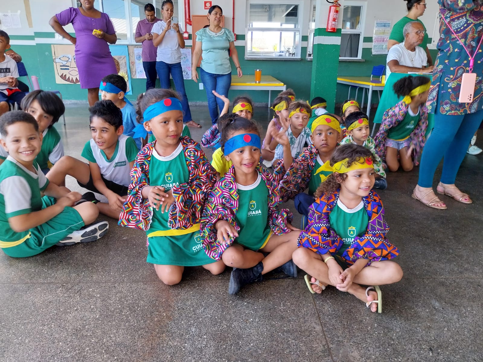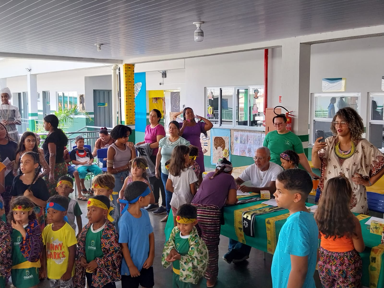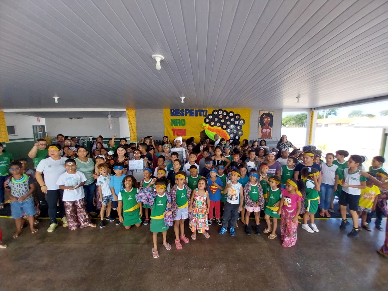 Estudantes matriculados no pré-I ao 5º da Escola Municipal de Educação Básica (EMEB), Profª Lidioliria Santana, localizada nno bairro Residencial Baracat, participaram na sexta-feira (28) de um grande ato de trabalho de conclusão de tarefas escolares destinada a consciência negra e influência da África na cultura brasileira.