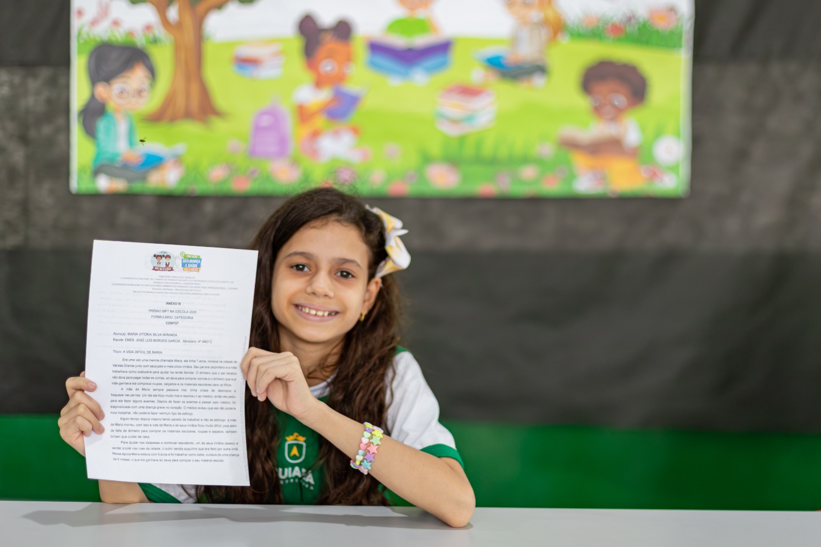 A professora Ângela Pereira Miranda, mãe da aluna Maria Vitória, narra o orgulho de ver a conquista filha. “Sempre incentivei minha pequena a ler histórias infantis e ver essa conquista representa muito”.