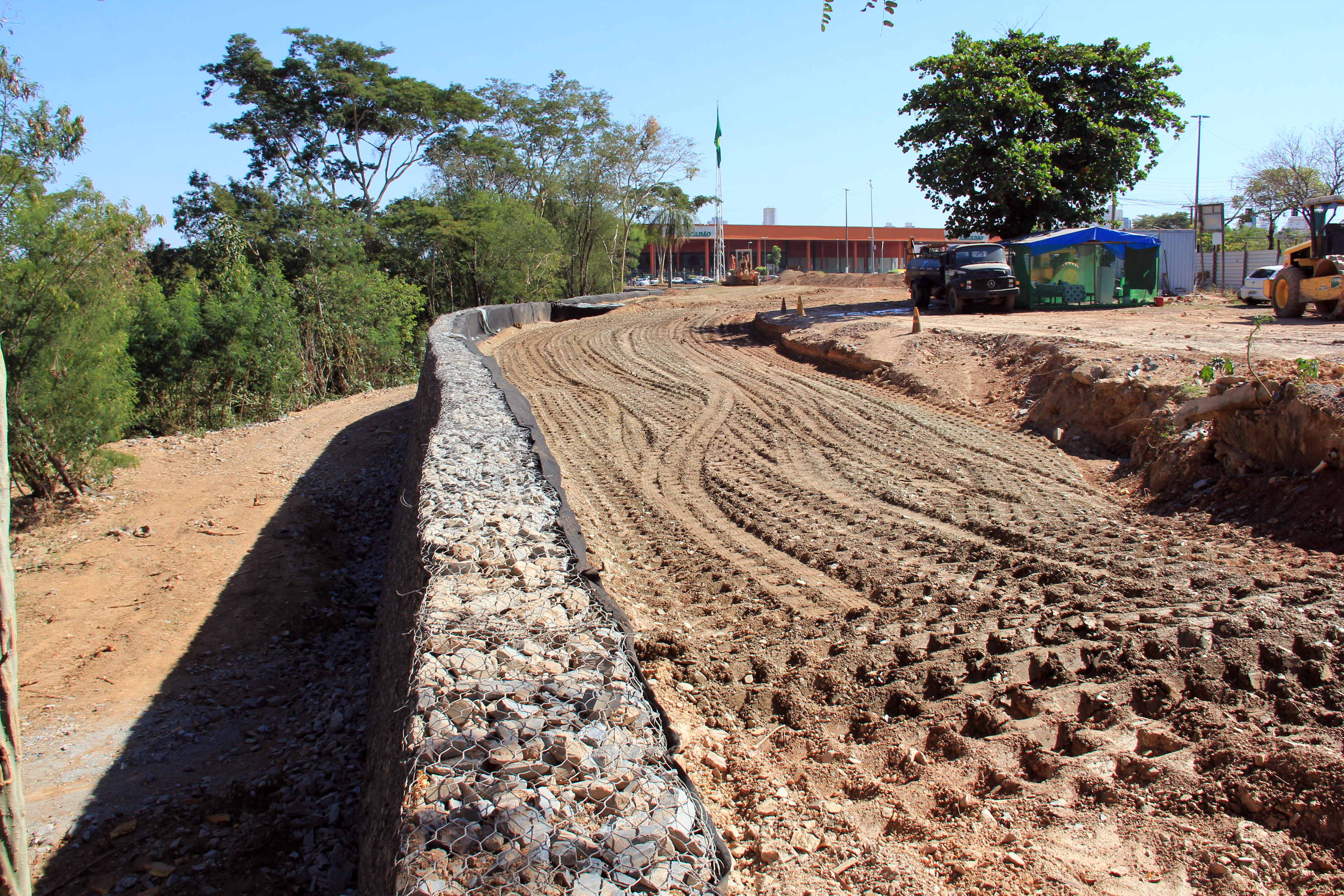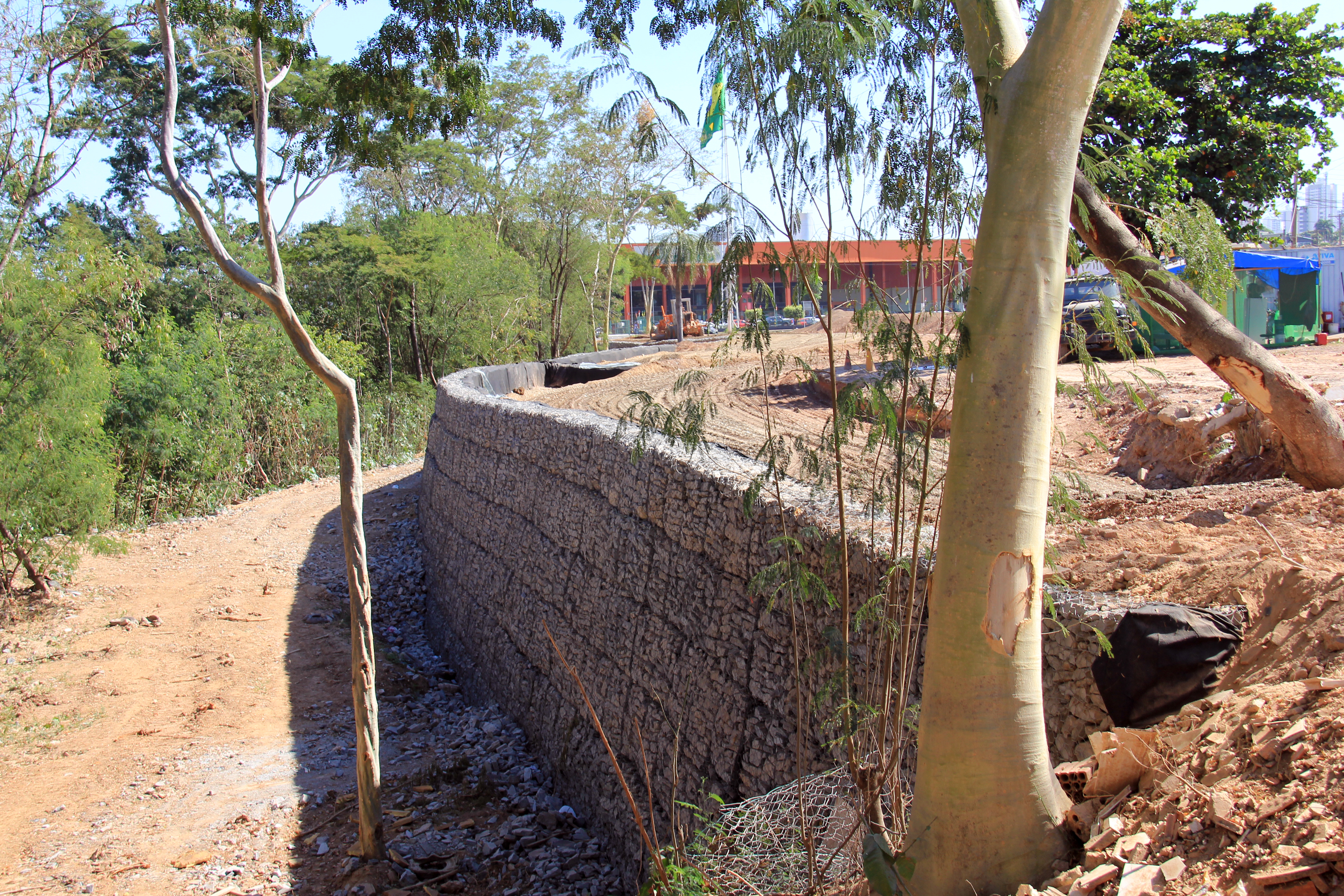 Paralelamente, a obra avança também para a reta final do levantamento do muro de gabião. Segundo o relatório de acompanhamento, a construção da estrutura alcançou 95% de sua execução, restando apenas de cerca de 20 metros para ser concluído. O espaço é edificado às margens do Rio Cuiabá, abrangendo uma extensão entre a Ponte Júlio Muller e o Cais do Porto.