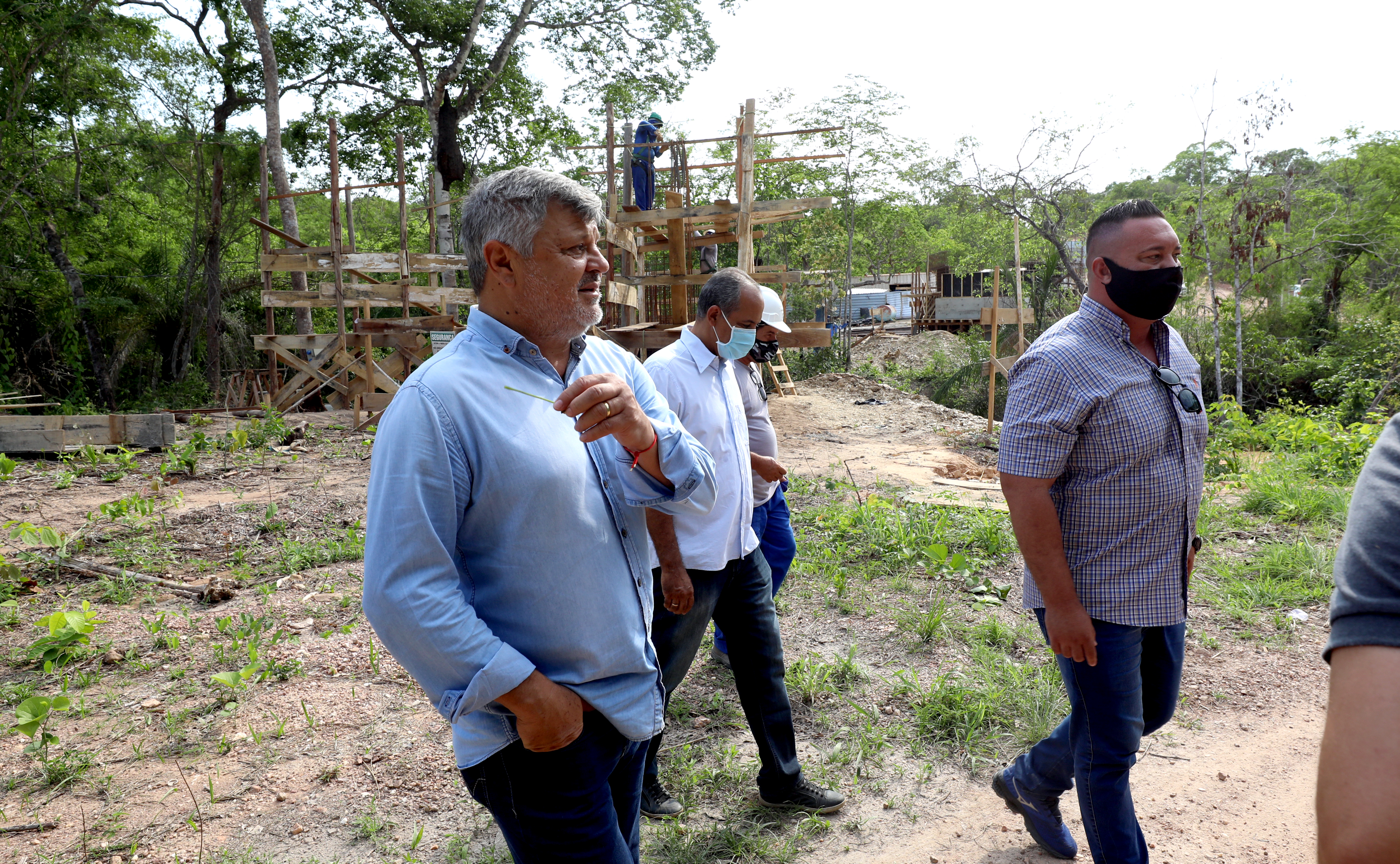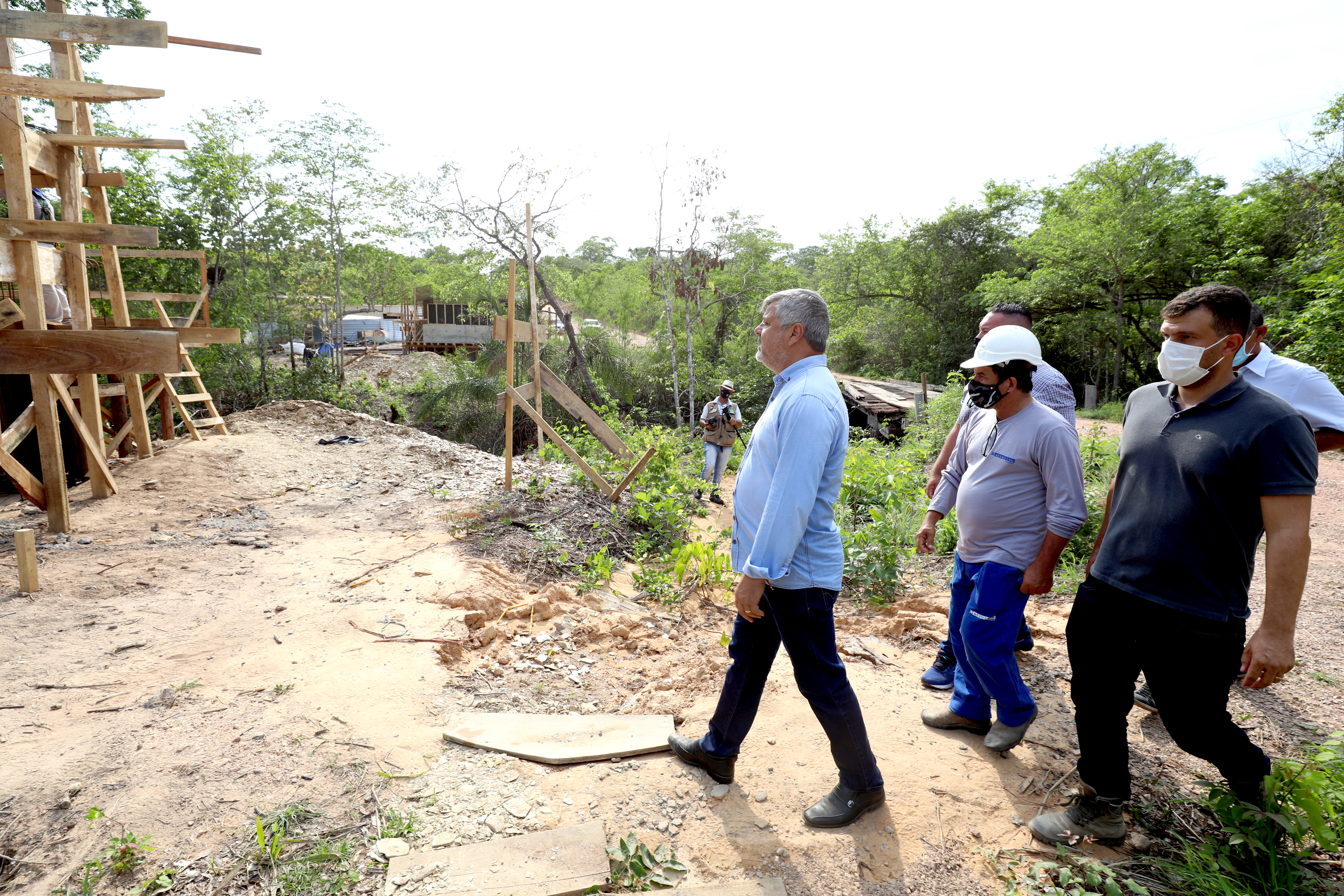 Em andamento na comunidade do Batec, a obra de construção de uma ponte de concreto sobre o Rio Preto foi vistoriada nesta sexta-feira (22) pelo prefeito em exercício José Roberto Stopa. Acompanhado do secretário interino de Obras Públicas, Raufrides Macedo, e do subprefeito do Distrito do Coxipó do Ouro, Juliano Coutinho, Stopa enfatizou que a estrutura deve ser entregue até o fim deste ano.
