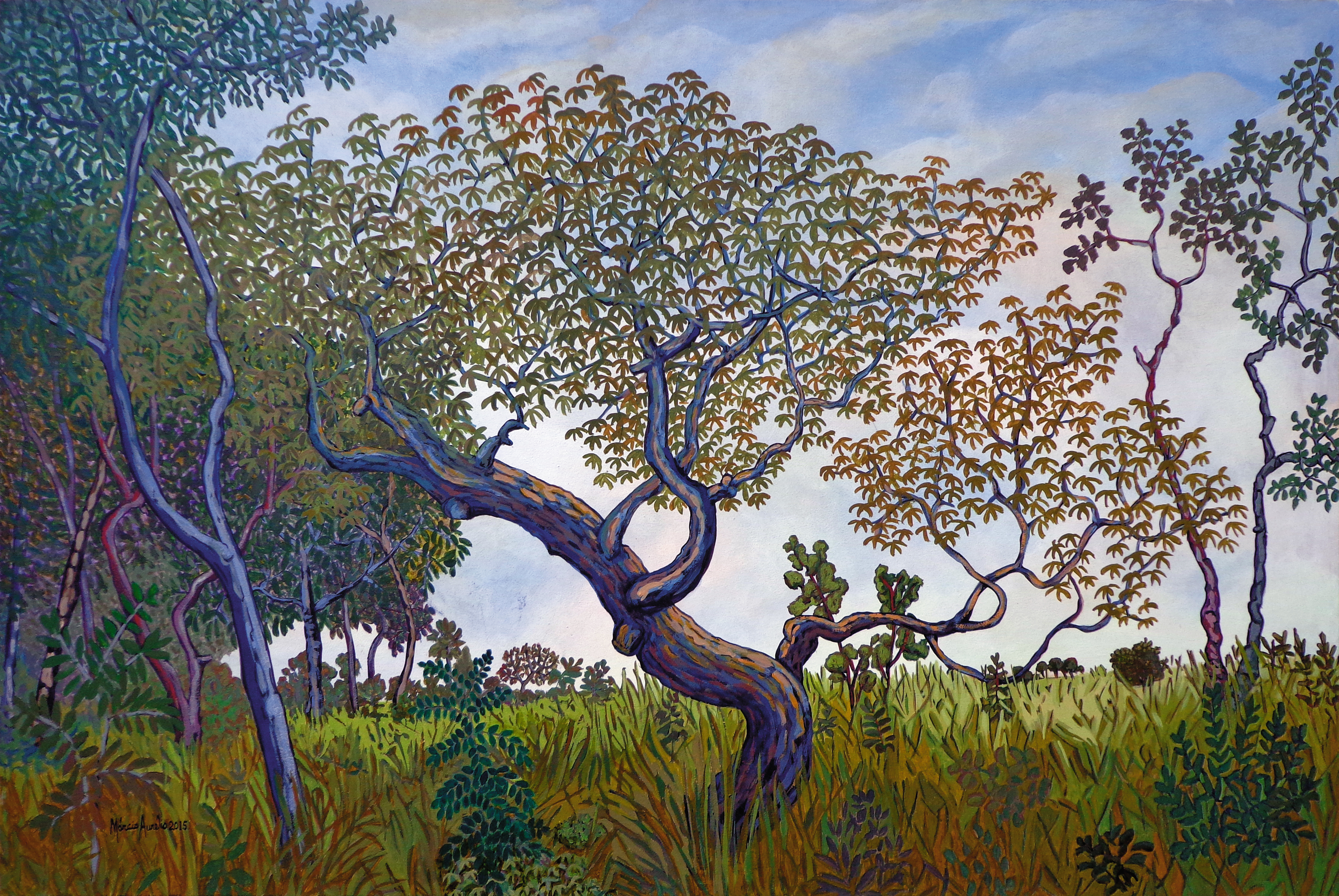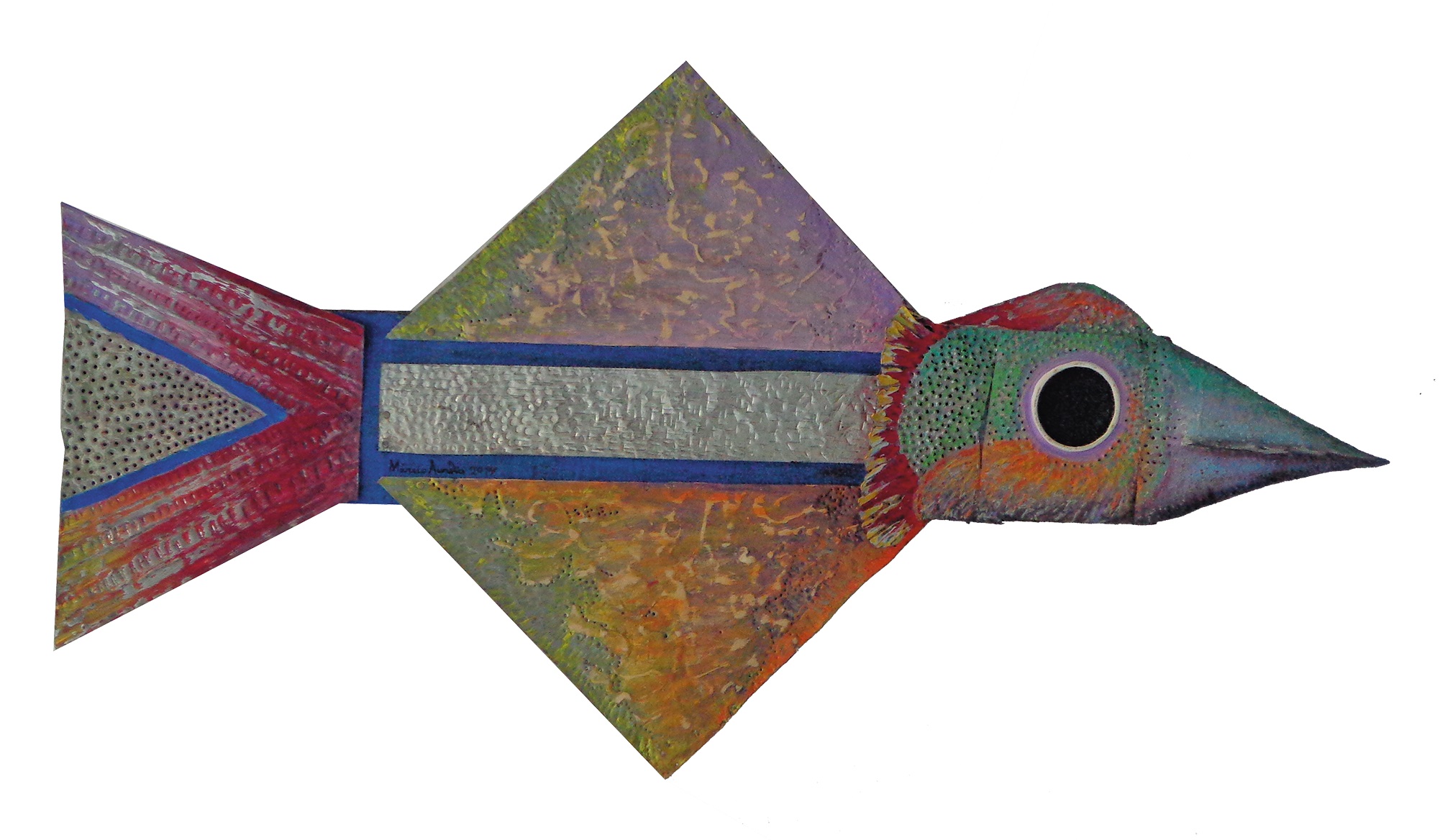 A obra de Márcio Aurélio tem a essência do cerrado e se inscreve absorta como a vegetação contorcida do ecossistema. Em suas peças o artista utiliza tinta acrílica, colagem, materiais recicláveis, madeira, ferro e pedra.