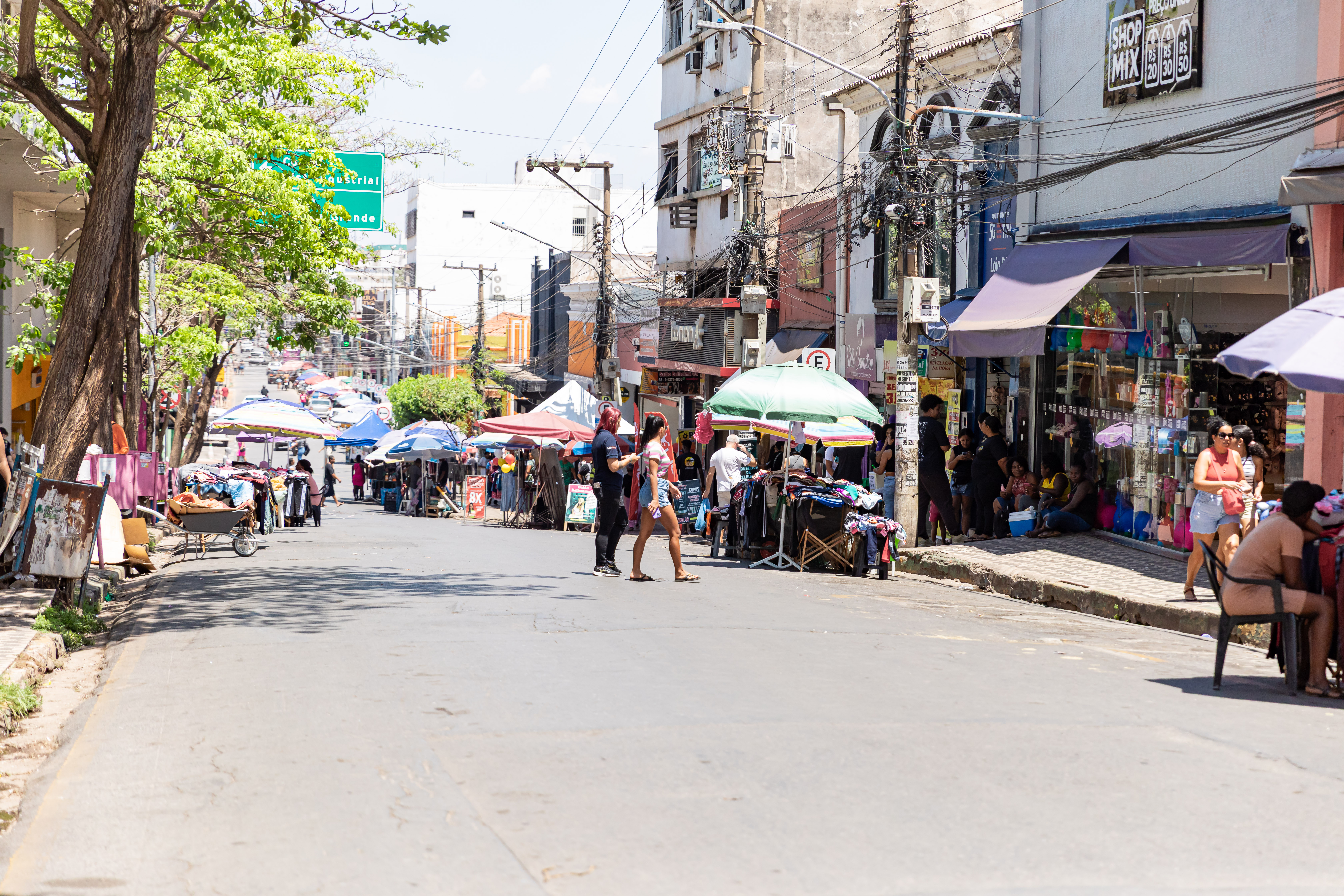 A Feira do Centro, na Rua 13 de Junho, está fortalecendo o comércio na região central de Cuiabá. Ainda em fase de teste, o projeto-piloto aconteceu pelo segundo sábado seguido, neste dia 27, dentro da proposta idealizada pela Prefeitura de Cuiabá, em parceria com a Câmara de Dirigentes Lojistas (CDL), para transformar a via em um grande espaço exclusivo de lazer e comércio popular, com as pessoas circulando livremente pela rua. Para isso, a 13 de Junho fica fechada para o tráfego de veículos entre 7h e 16h, no trecho compreendido entre as avenidas Getúlio Vargas e Isaac Póvoas. Além de moradores de Várzea Grande, visitantes do interior também aproveitaram a oportunidade.