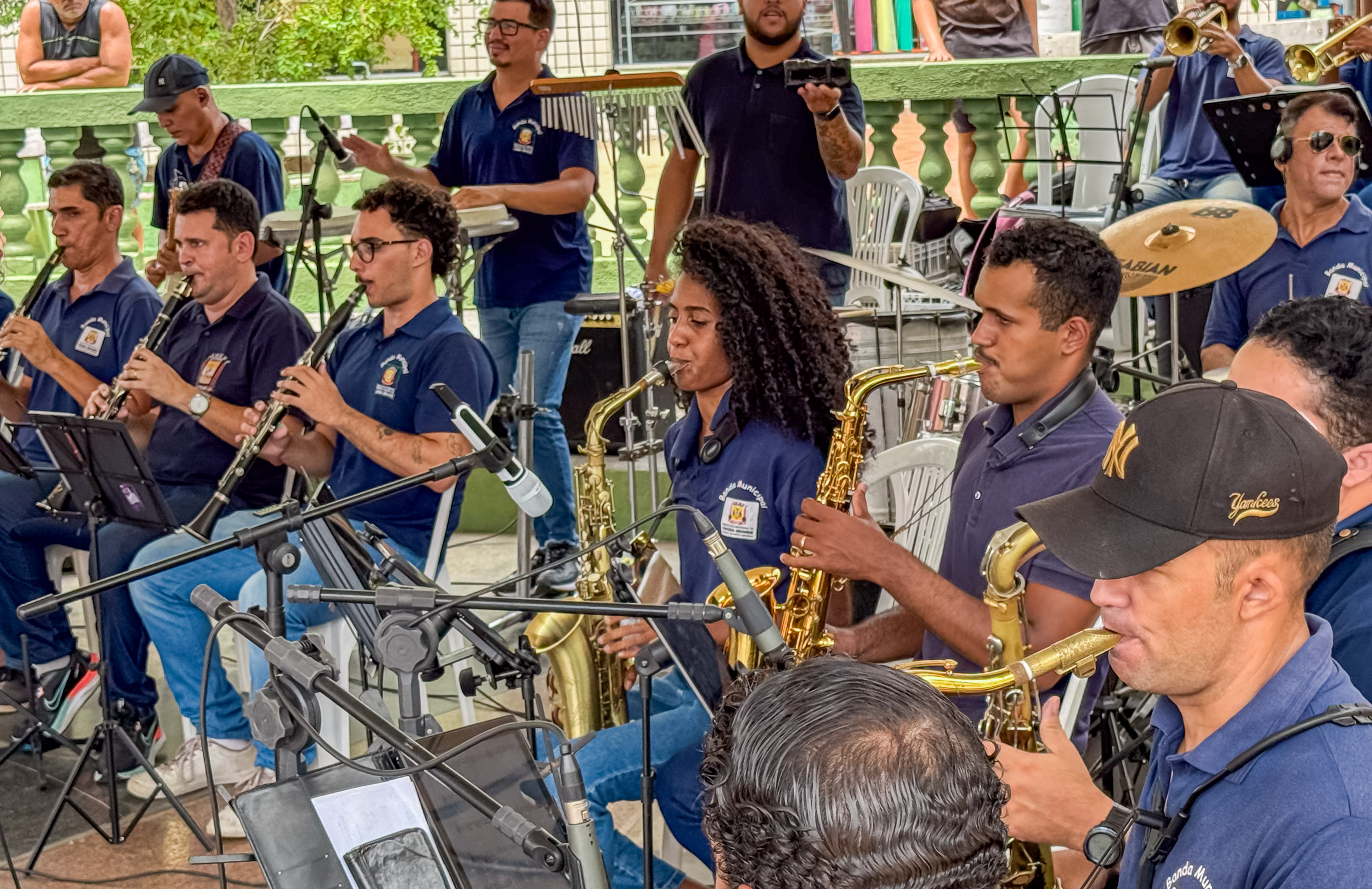 Logo nas primeiras horas da manhã, o público foi recebido com um espetáculo inesquecível: a Banda da Prefeitura Municipal de Várzea Grande deu um verdadeiro show que parou o centro da cidade. Com um repertório eclético e contagiante, que foi do lambadão cuiabano ao clássico Sweet Child O’ Mine, do Guns N’ Roses, os músicos encantaram o público e fizeram o Calçadão se transformar em um grande palco a céu aberto.