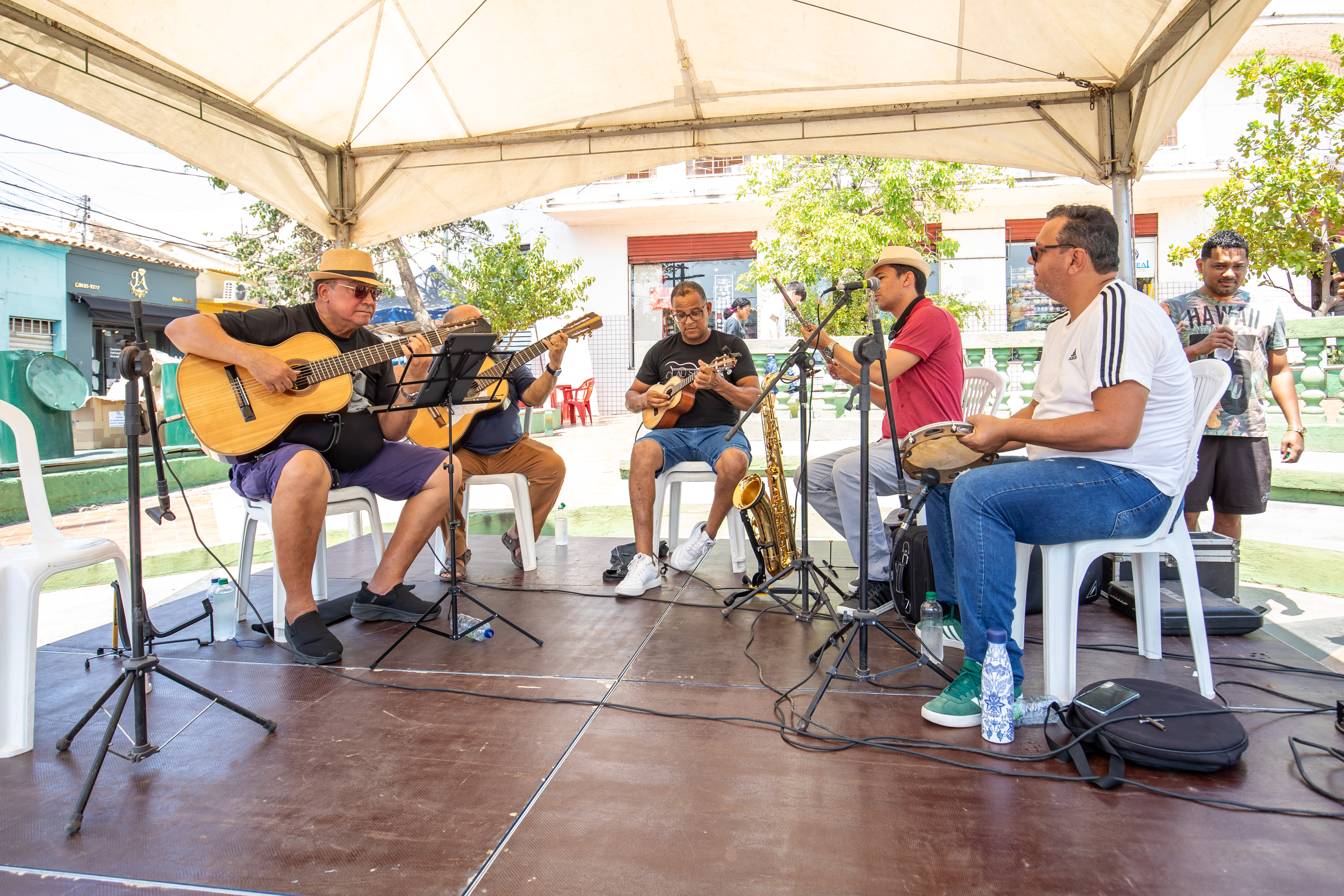 A Prefeitura de Cuiabá, por meio da Secretaria de Cultura e da de Turismo, vem insistindo em devolver às ruas históricas o brilho de outros tempos. A iniciativa da Feira no Centro, agora realizada no Calçadão da Galdino Pimentel, transformou o sábado em um encontro de música, gastronomia, livros, artesanato e boas conversas. “O Choro de Rua é um movimento voluntário de músicos profissionais e amadores que amam o choro brasileiro e acreditam que ele deve estar nas praças, nas ruas, no coração das cidades”, contou Andréu Moraes, representante do grupo, entre acordes de flauta e aplausos animados.