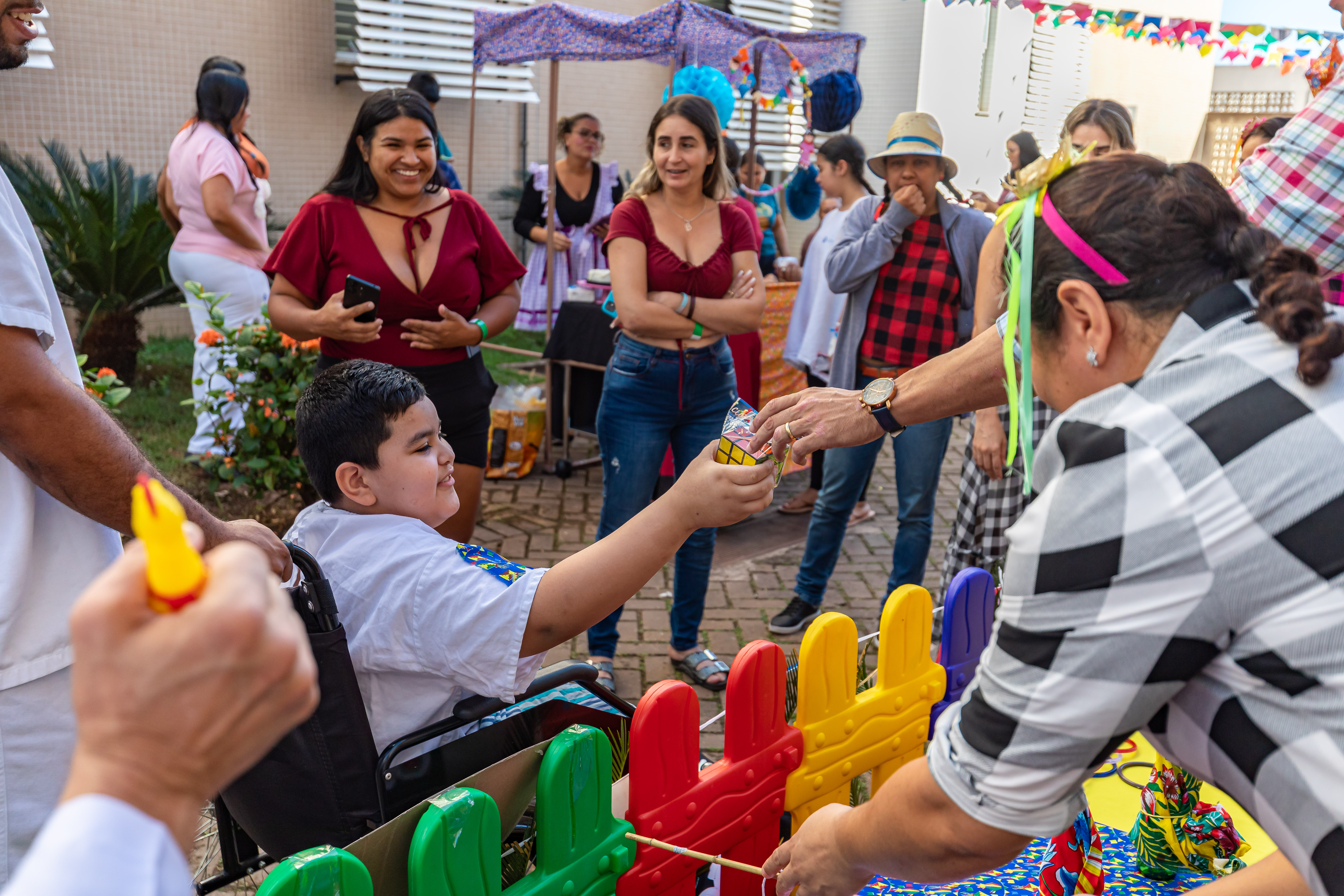 O Hospital Municipal de Cuiabá (HMC) se encheu de cores, música e alegria para a tradicional festa junina da pediatria, na manhã desta quinta-feira (26). O evento, organizado pelos próprios funcionários da unidade, transformou o clima hospitalar e trouxe diversão e leveza para as 30 crianças internadas na pediatria e para os 10 pacientes da UTI pediátrica.