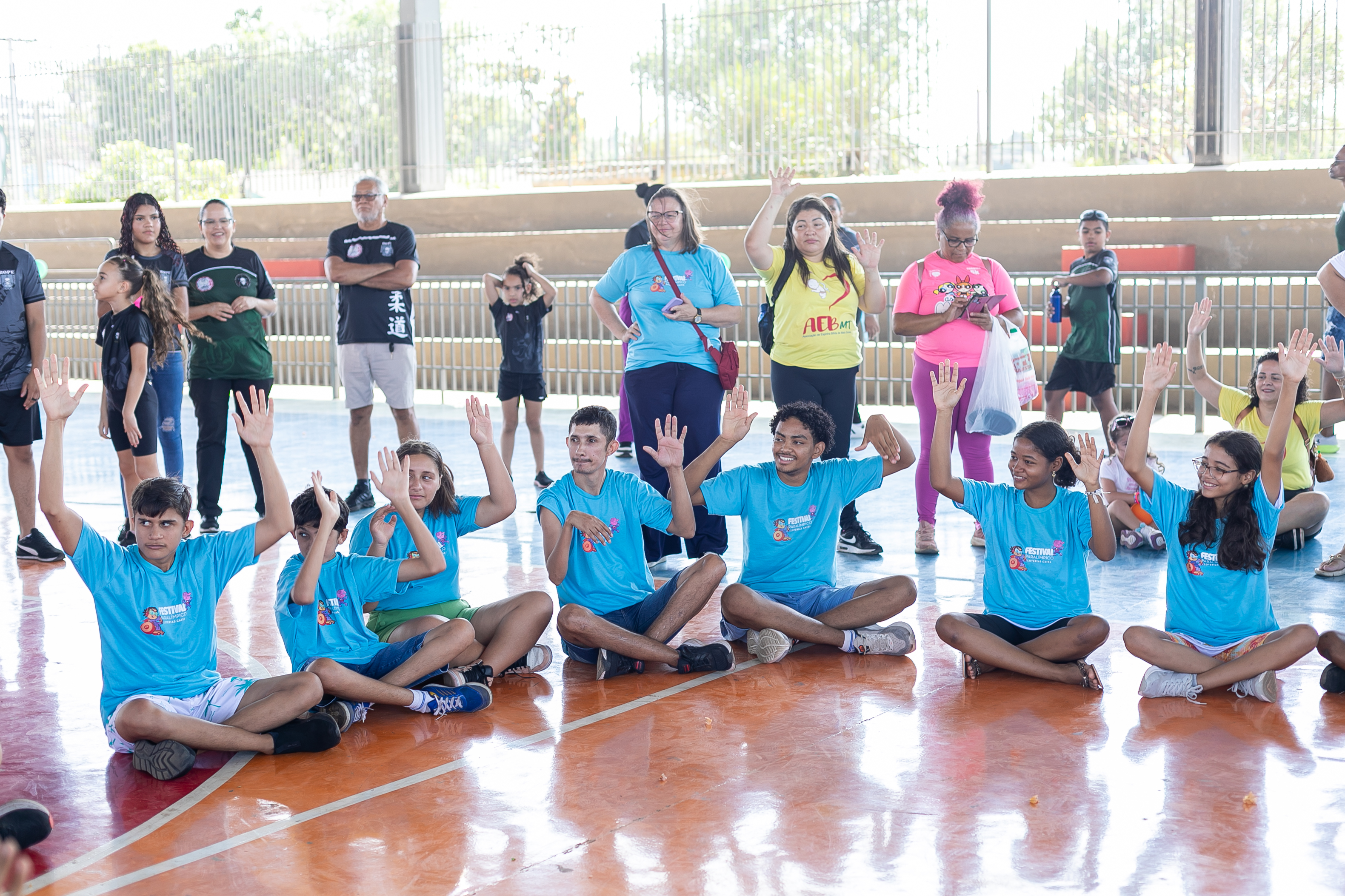 A manhã deste sábado (20) foi marcada por inclusão, esporte e emoção durante a realização da 2ª edição do Festival Paralímpico Brasileiro Loterias Caixa, promovido pela Prefeitura de Cuiabá, por meio da Secretaria Municipal de Esporte e Lazer (SMEsp), em parceria com o Comitê Paralímpico Brasileiro (CPB). O evento foi realizado no Ginásio Poliesportivo Municipal Dom Aquino, das 8h às 12h, e reuniu aproximadamente 350 participantes, entre eles, mais de 190 crianças e jovens, com e sem deficiência, em uma programação diversificada, com atividades esportivas e recreativas.