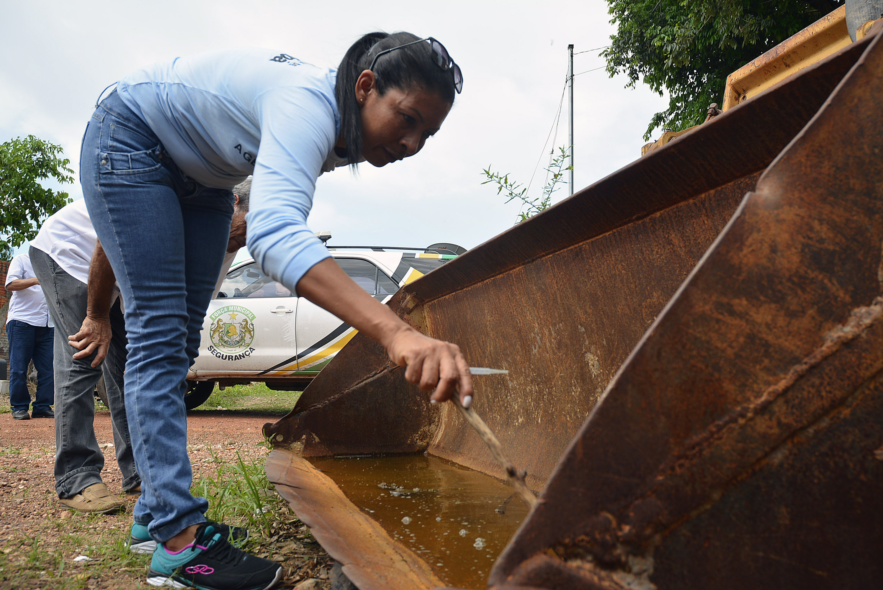 Já na etapa 3, na Rua O, os fiscais encontraram uma retroescavadeira que, segundo o morador Geraldo Alves da Silva, está abandonada há vários anos. A pá, na parte dianteira, e a concha, que fica na traseira, estão cheias de água e servem de criadouro do mosquito. “Já reclamei com o proprietário, mas nenhuma providência foi tomada. Aqui na minha casa não deixo acumular água, limpo direto a caixa d´água”, disse Geraldo, que mora em frente onde está a máquina parada.