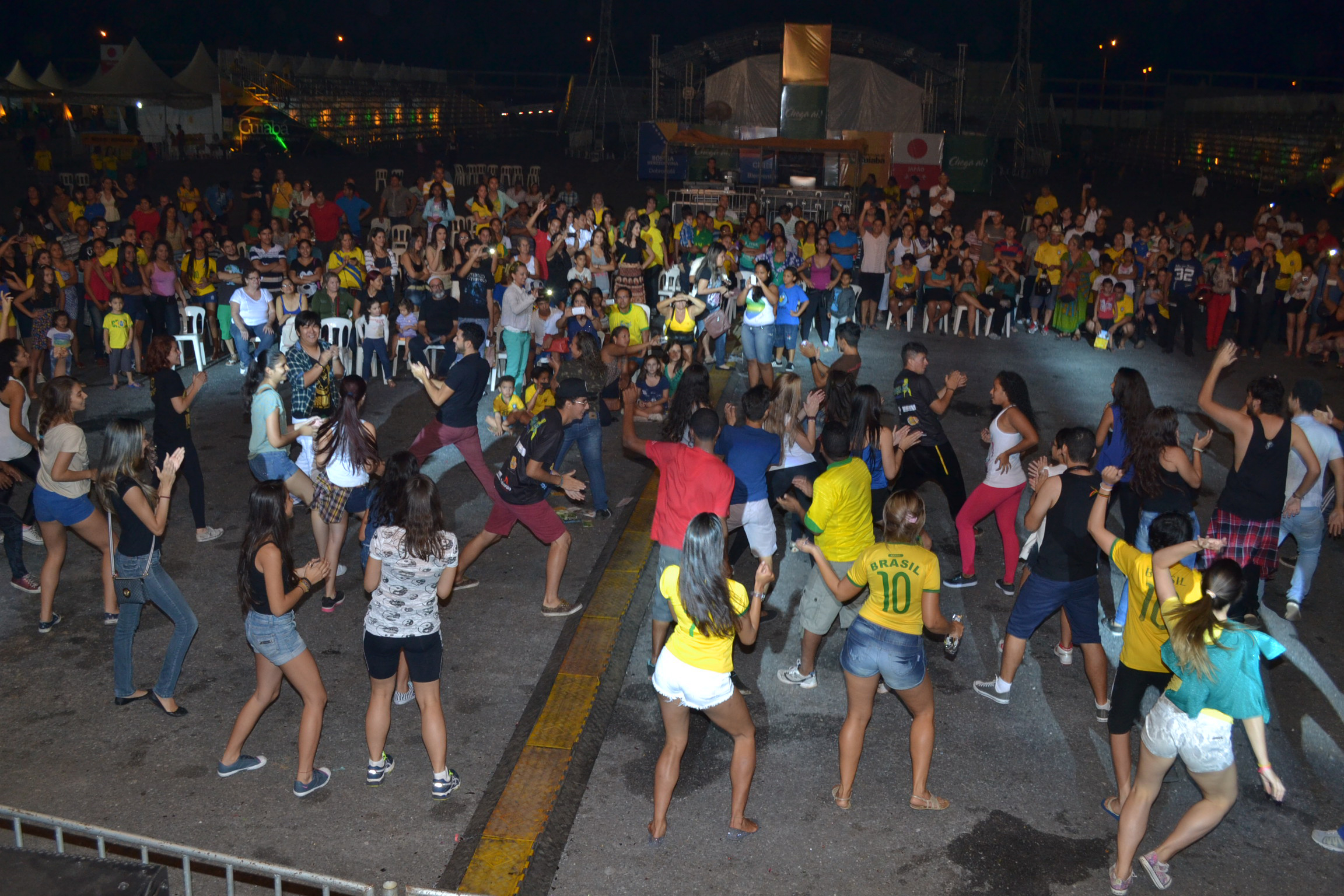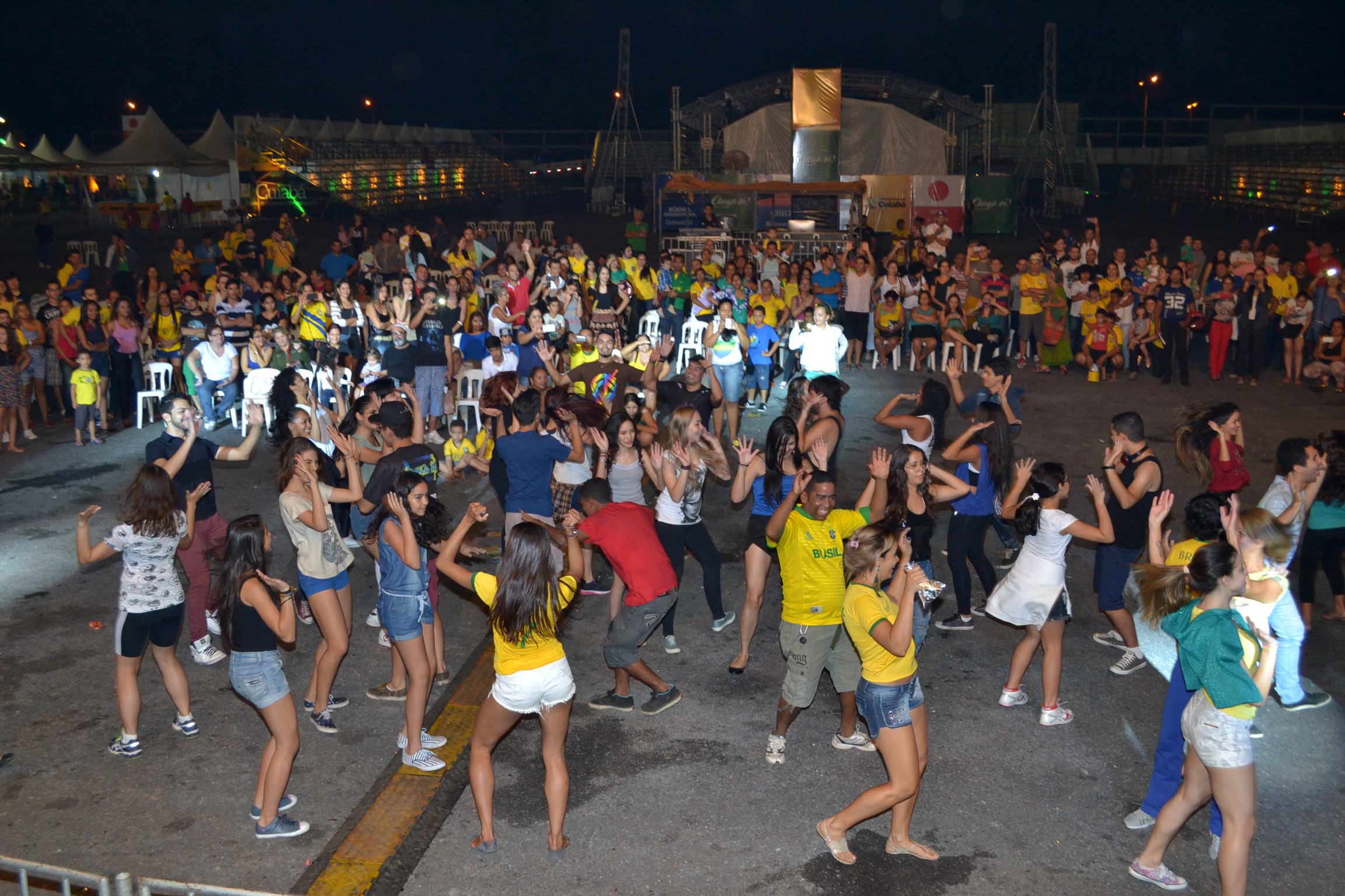 Realizado pela primeira vez em Cuiabá, o Flash Mob “Grande Dança Brasil 2014”, prendeu a atenção e surpreendeu o público da Arena Cultural Cuiabá na noite desta terça-feira (17). O projeto está sendo realizado em espaços públicos de todas as cidades-sede da Copa do Mundo FIFA 2014.