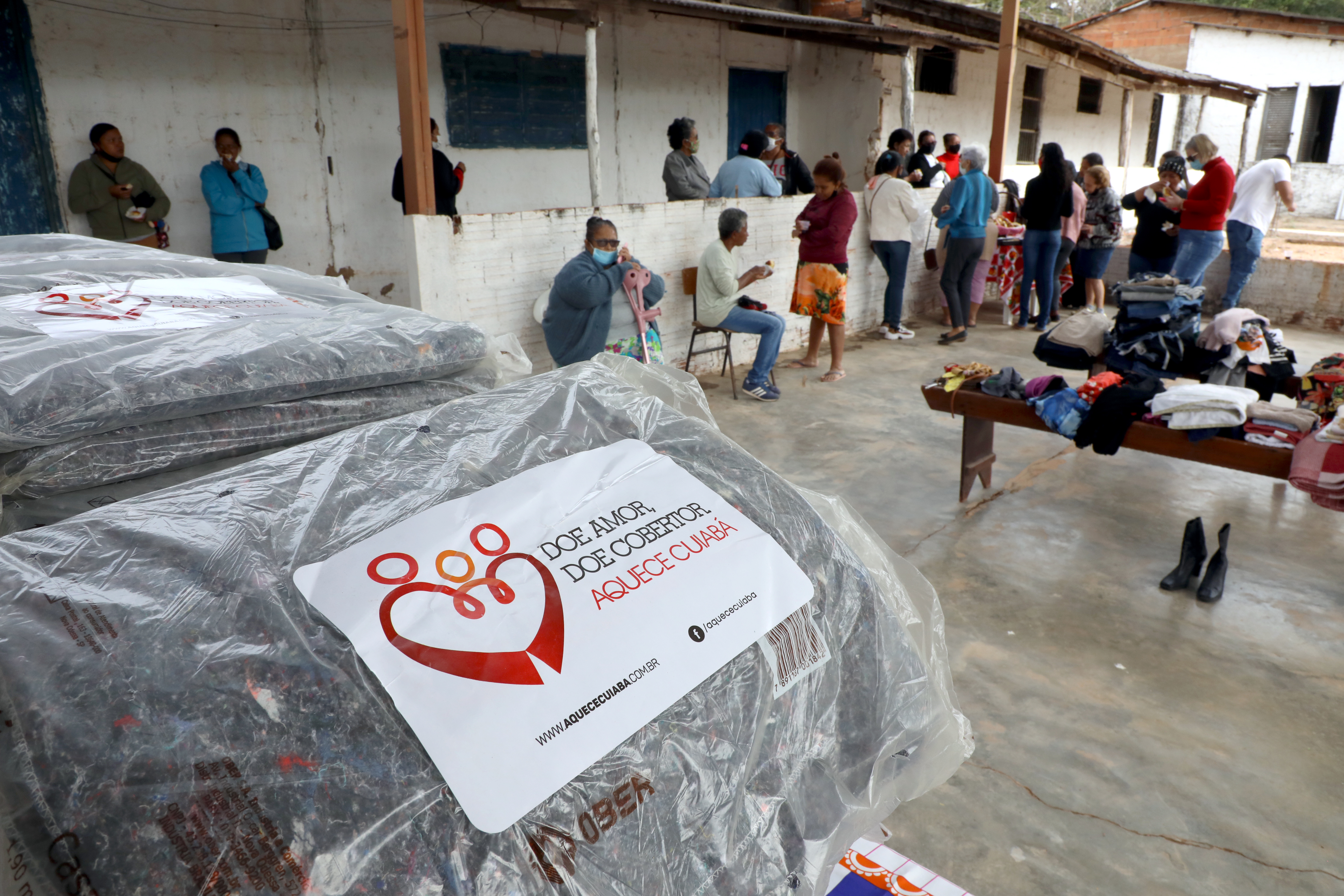 Força-tarefa de enfrentamento ao frio atende a 70 mulheres no Coxipó do Ouro; Campanha Aquece Cuiabá distribuiu cobertores