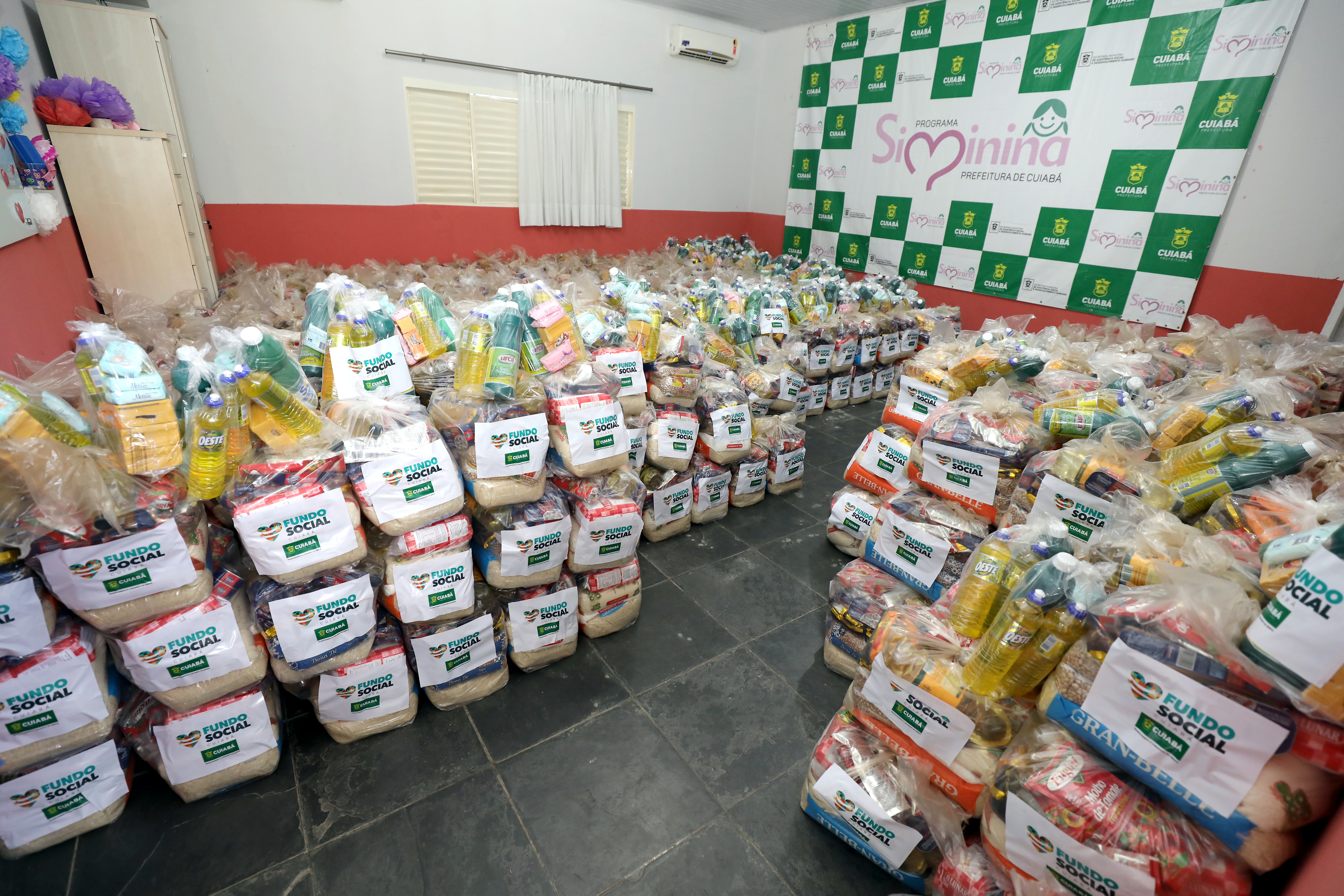 A coordenação do Programa Siminina, recebeu na tarde de segunda-feira (15), das mãos da primeira-dama de Cuiabá, Márcia Pinheiro, um total de 1.4 mil cestas básicas que serão encaminhadas às famílias das mais de mil meninas atendidas pelo programa desenvolvido pela Prefeitura Municipal de Cuiabá.