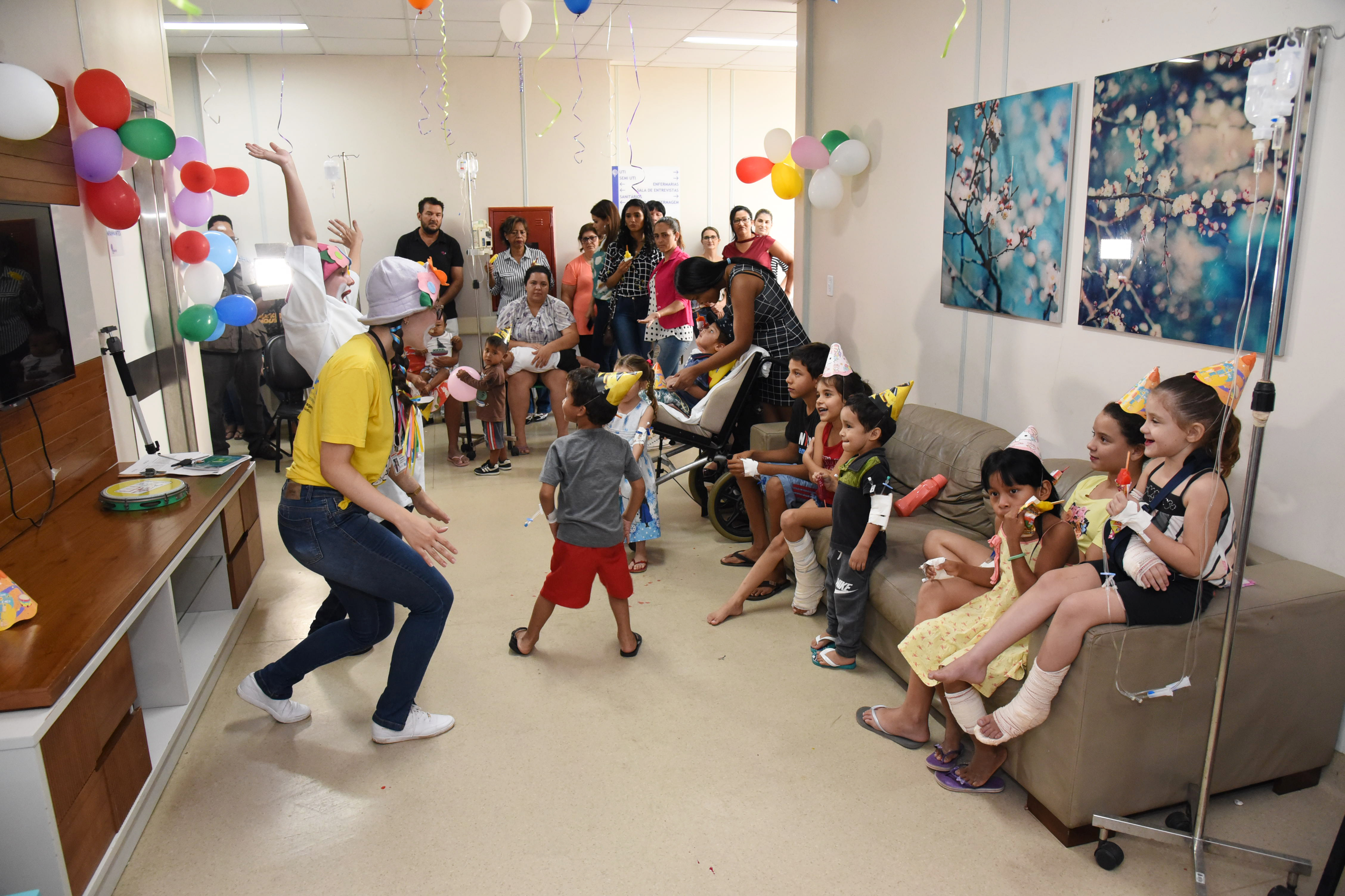 Crianças internadas na Ala Pediátrica do Hospital e Pronto Socorro Municipal de Cuiabá (HPSMC) tiveram, semana passada, um dia mágico de confraternização, presentes e muitas guloseimas. Com muito amor e criatividade, esses gestos tão simples que todas as crianças esperam receber neste mês em que se celebra o ‘Dia das Crianças’ em todo o Brasil, a equipe do PS reforçou a política de humanização, que vem sendo implantada em todas as áreas da administração do prefeito Emanuel Pinheiro.