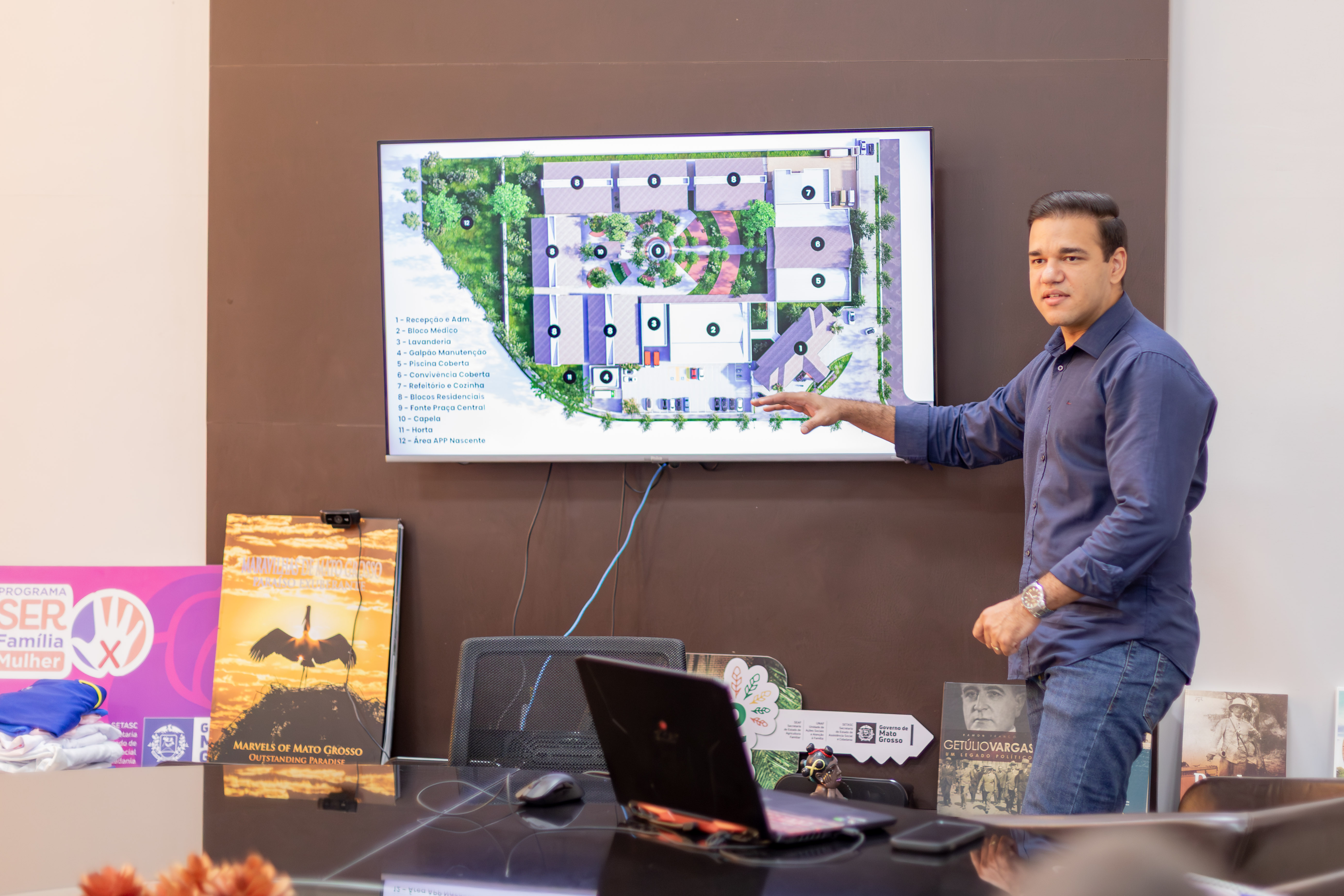 O projeto foi apresentado na reunião pelo arquiteto da Secretaria Municipal de Planejamento, Juander de Oliveira. Também participaram do encontro a secretária-adjunta de Assistência Social de Cuiabá, Paolla Reis; o diretor técnico de Convênios, Leandro Antonio Alves da Silva; a secretária-adjunta de Planejamento e Projetos da Secretaria de Obras, Geralda Pessoa; e a adjunta de Administração Sistemática da Setasc, Arielle Heredia Dorileo.