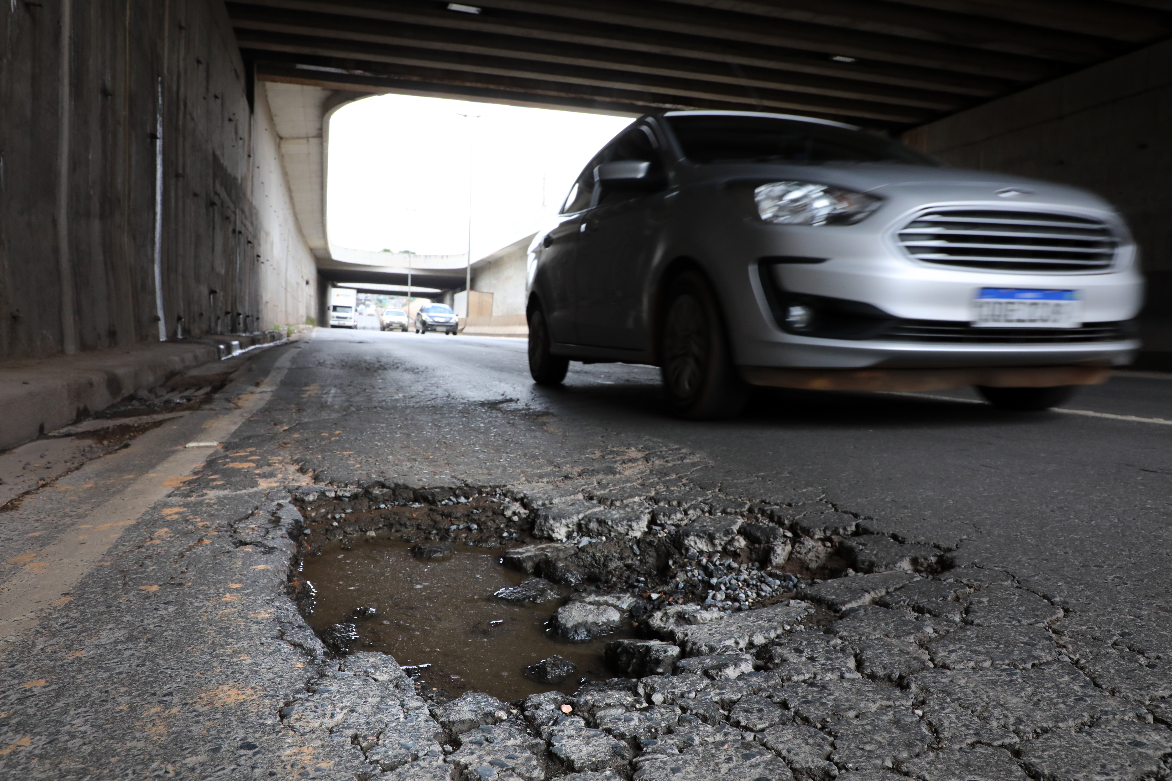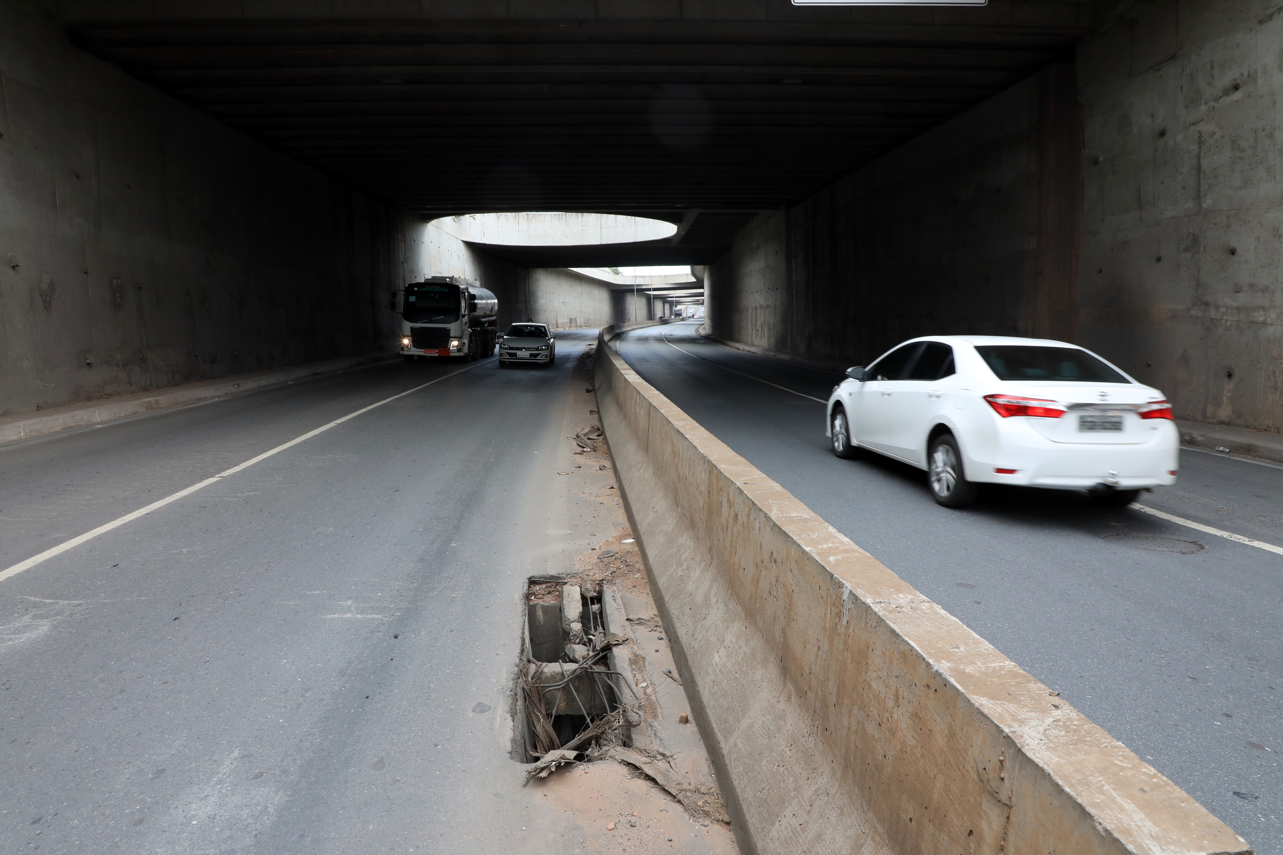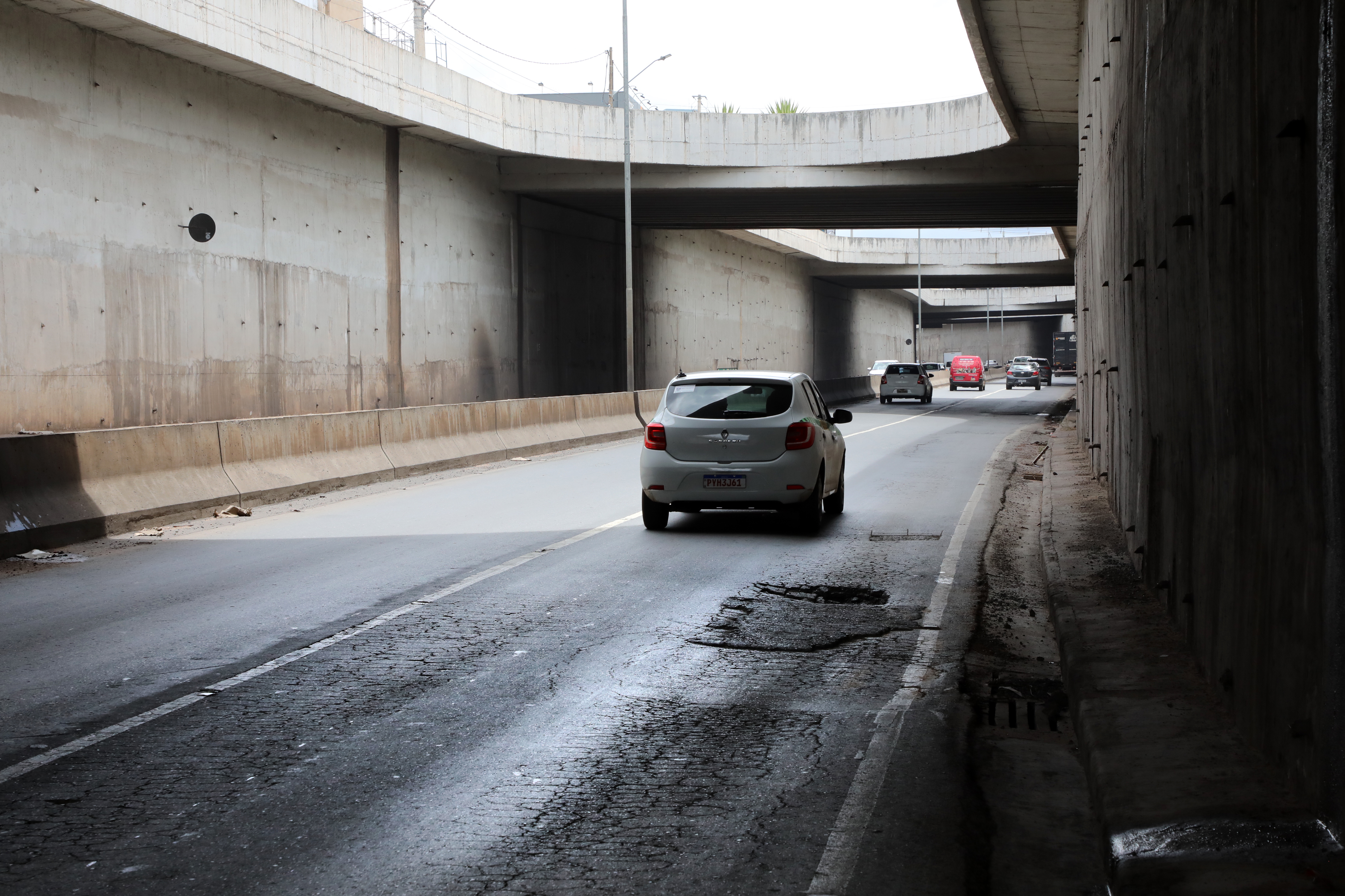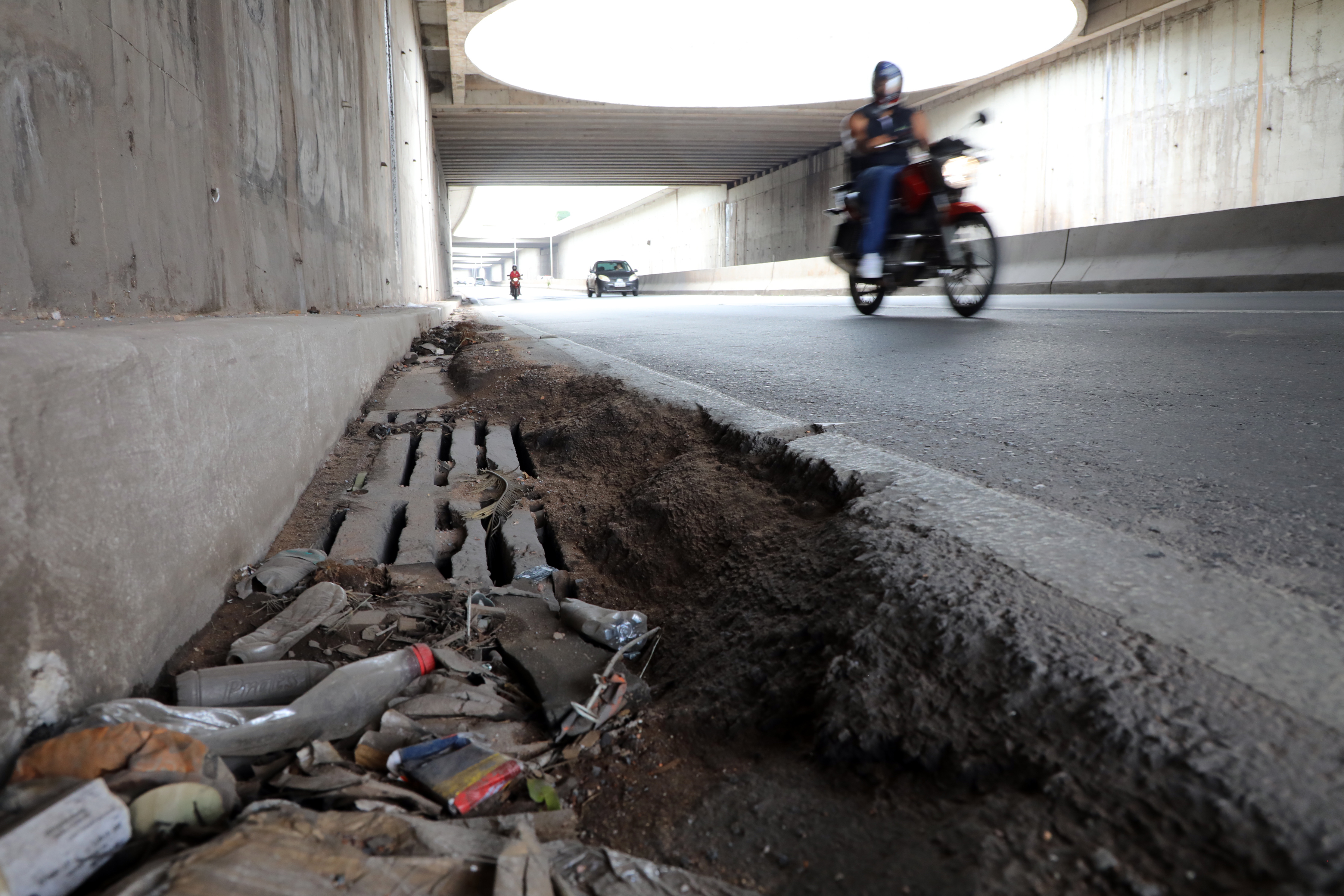 “A estrutura sofre desde sua construção com esse problema. O dreno foi extremamente mal feito ou inexistiu. Nas paredes, também não foi bem feito. Temos um impacto muito grande. Vocês percebem que o asfalto ficou esborrachado, e isto é problema de drenagem”, relata José Roberto Stopa.