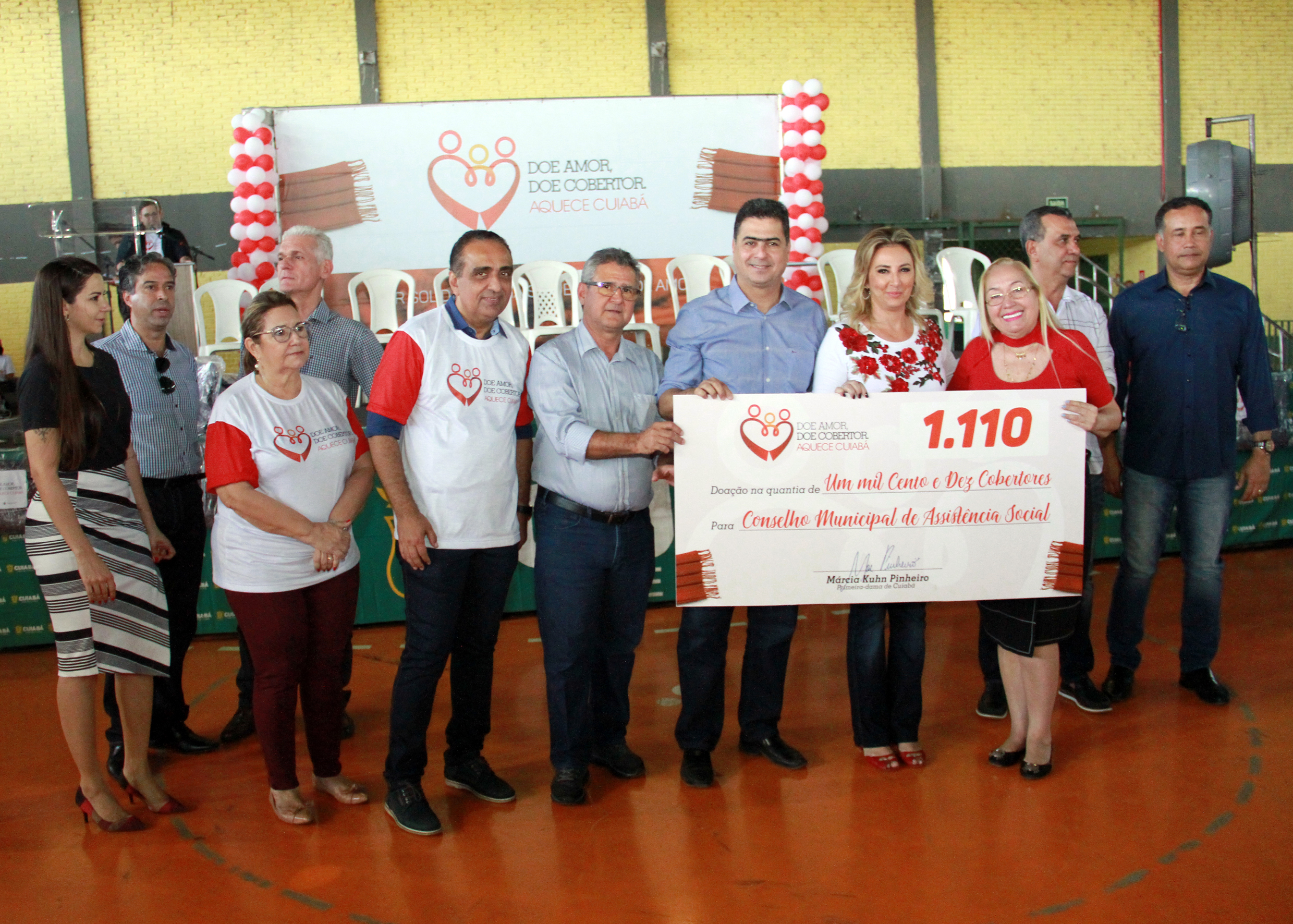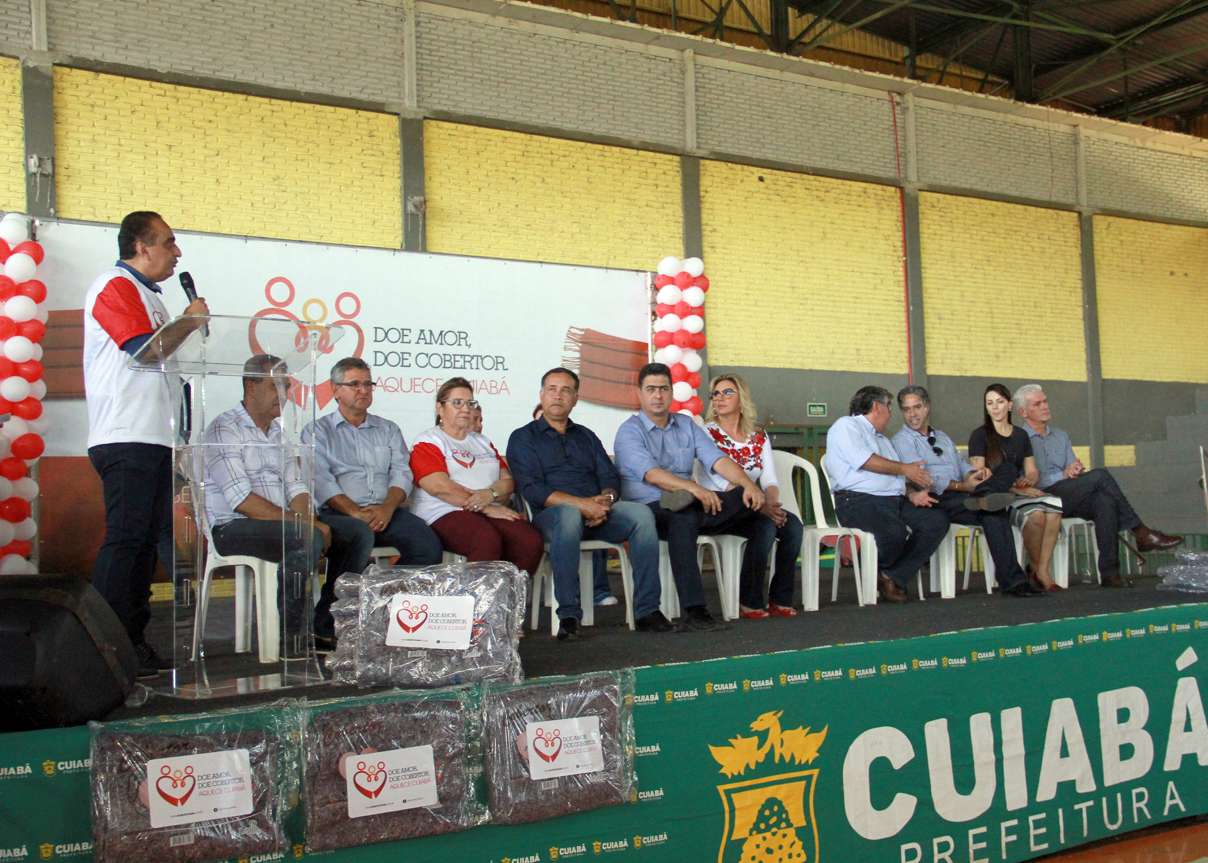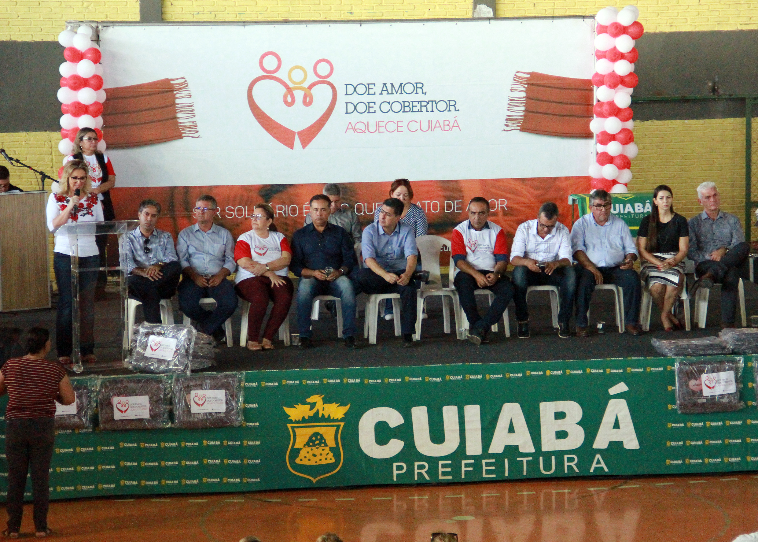A primeira-dama Márcia Pinheiro repassou à Prefeitura de Cuiabá, por meio da Secretaria Municipal de Assistência Social e Desenvolvimento Humano, os 21.600 cobertores arrecadados pela campanha Aquece Cuiabá, em cerimônia realizada nesta quarta-feira (03), no Ginásio Dom Aquino. A terceira edição consolida a ação como a maior campanha de Inverno do Centro-Oeste.