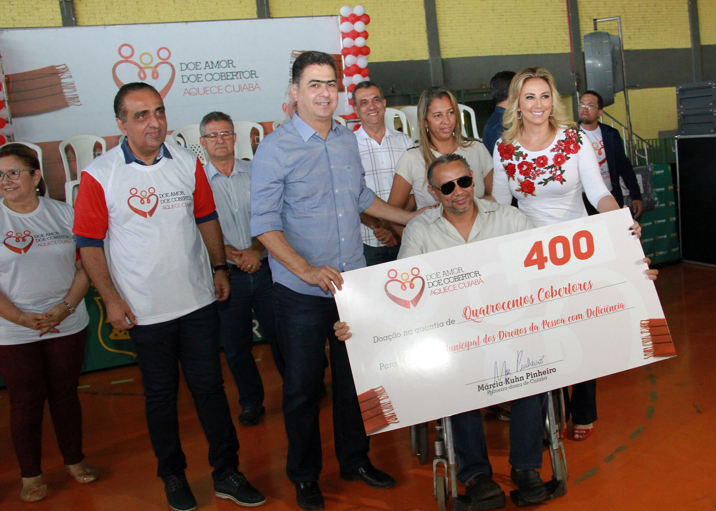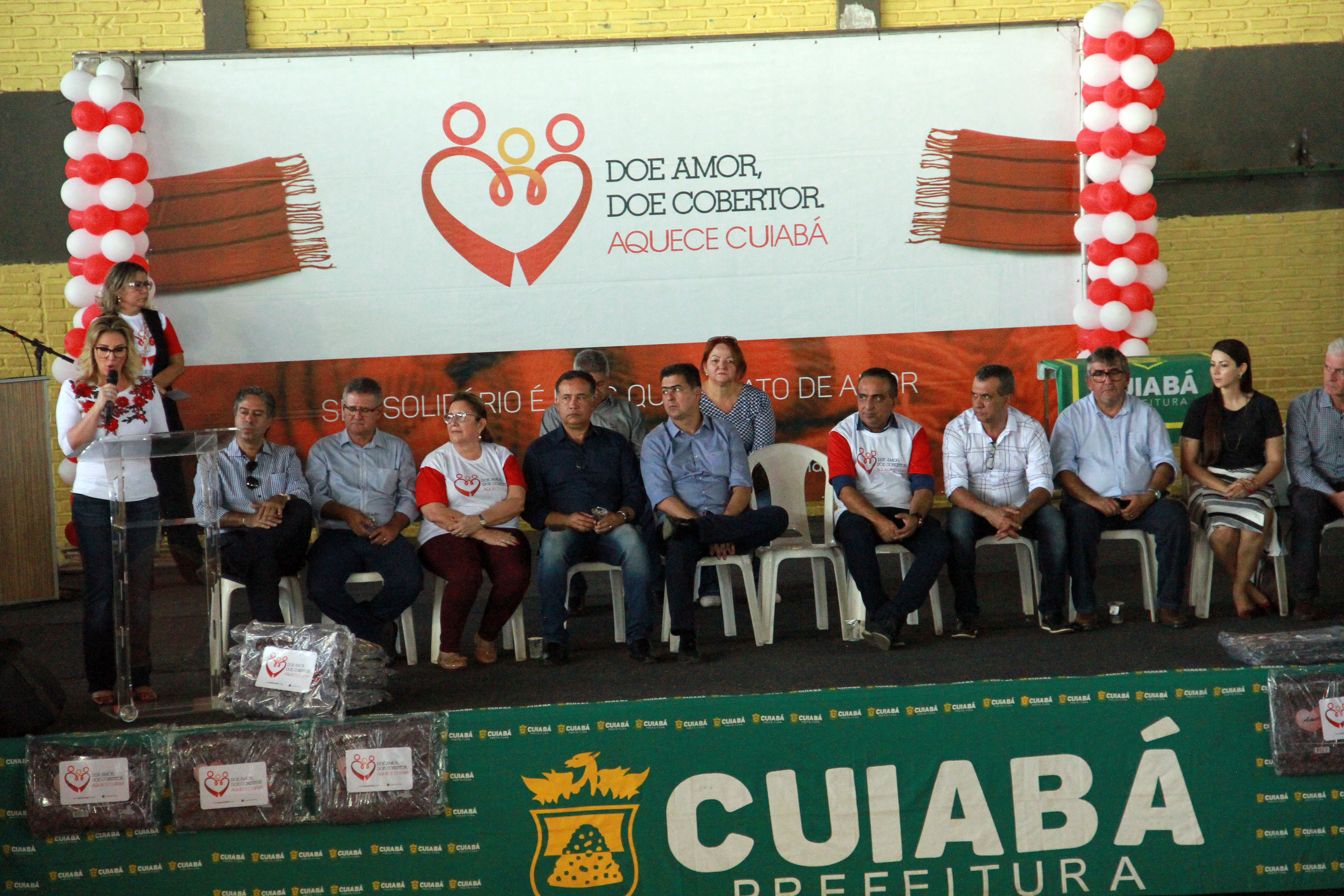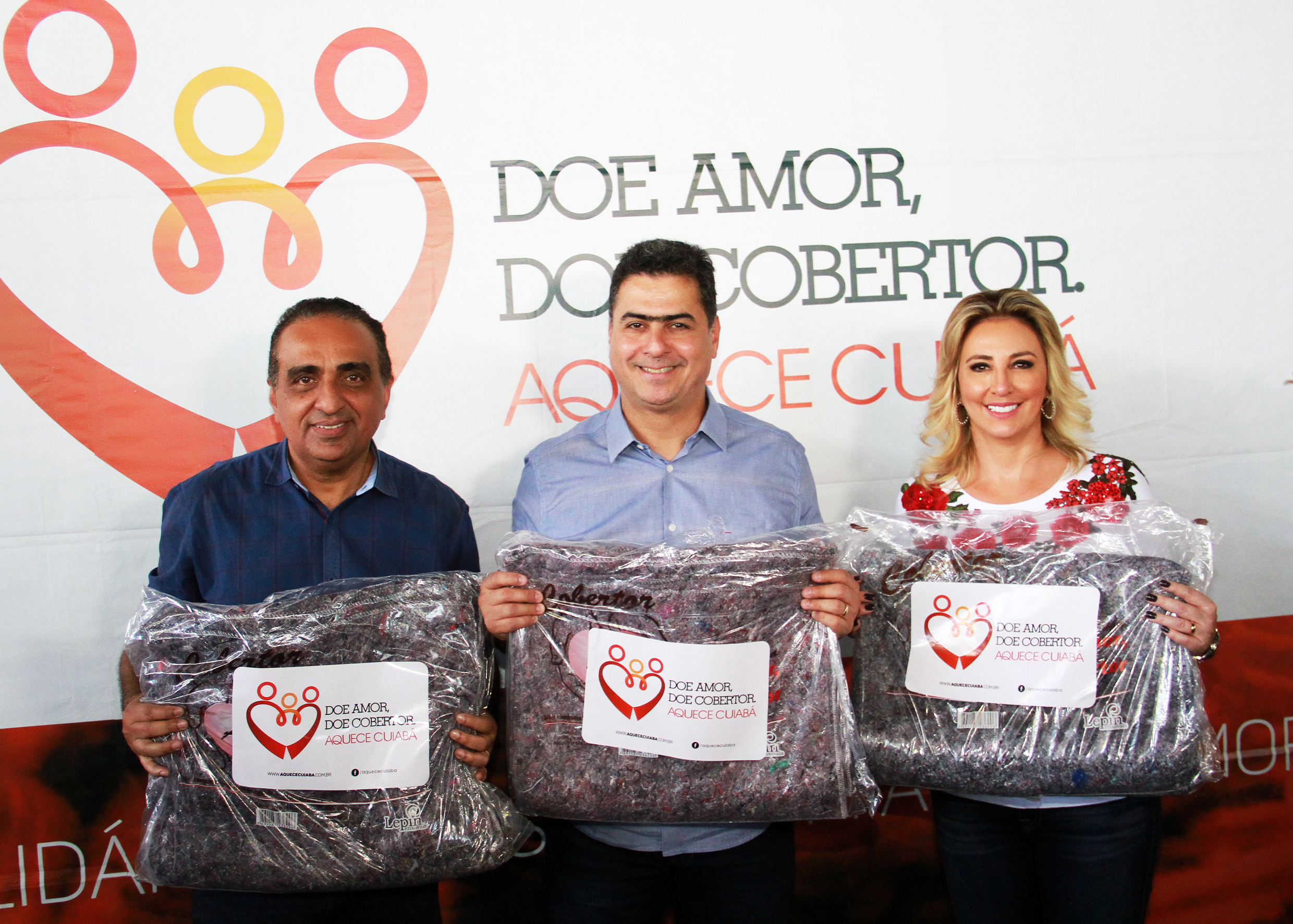 A primeira-dama Márcia Pinheiro repassou à Prefeitura de Cuiabá, por meio da Secretaria Municipal de Assistência Social e Desenvolvimento Humano, os 21.600 cobertores arrecadados pela campanha Aquece Cuiabá, em cerimônia realizada nesta quarta-feira (03), no Ginásio Dom Aquino. A terceira edição consolida a ação como a maior campanha de Inverno do Centro-Oeste.
