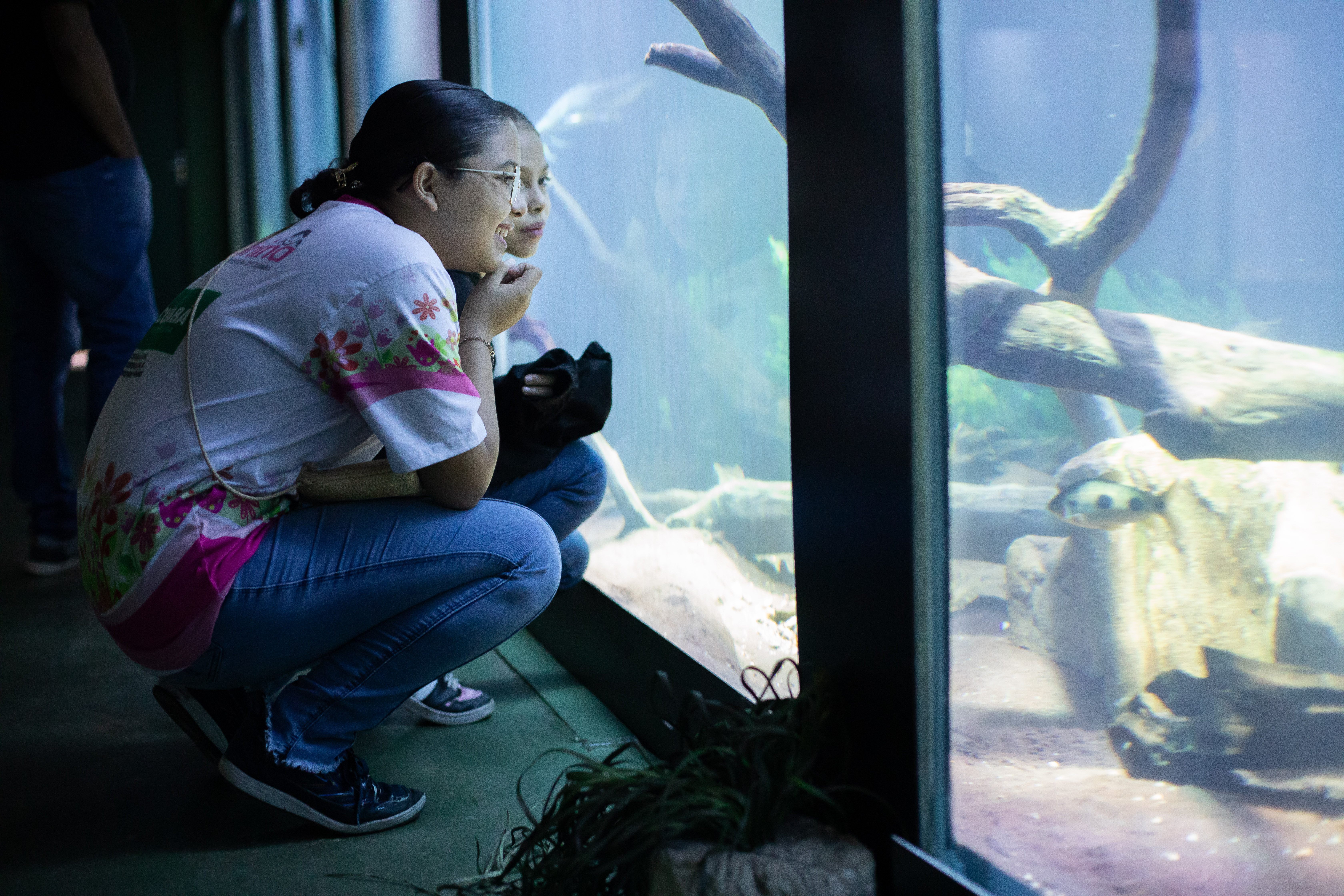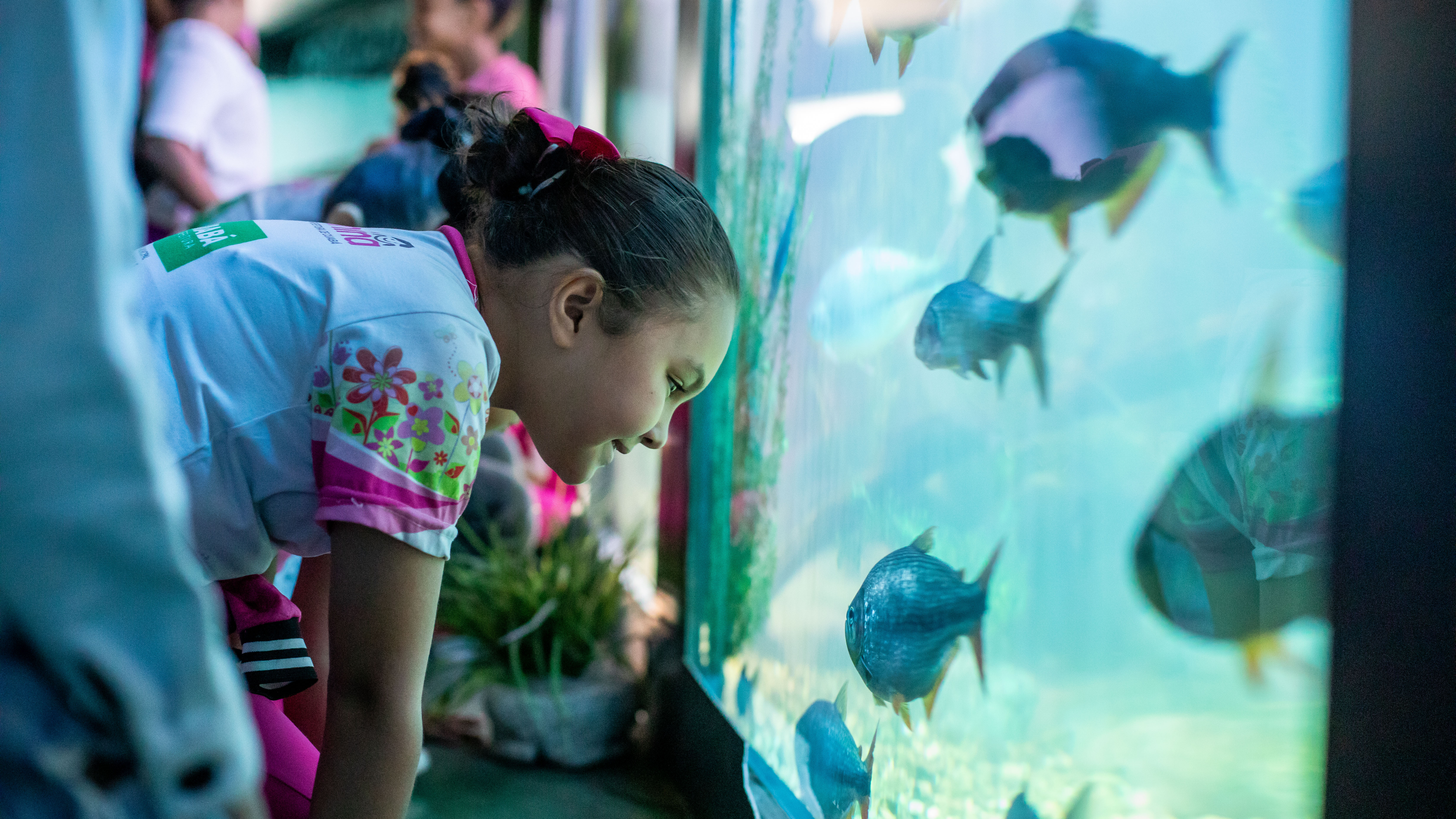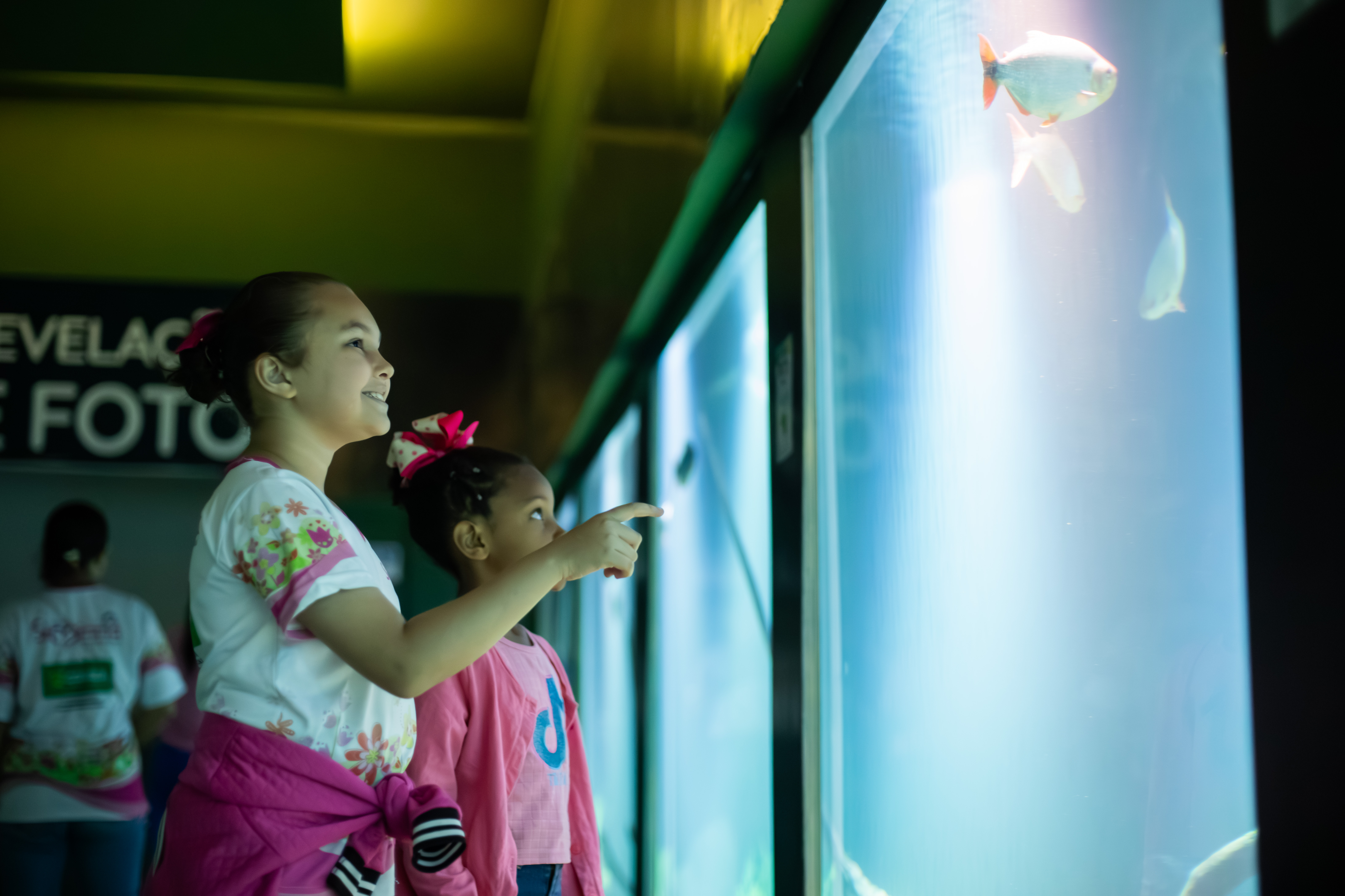 As crianças puderam conhecer de perto espécies como pirarucu, tambaqui, pirarara, dourado, cachara, jaú, jundiá, entre outras. Para muitas delas, foi a primeira vez visitando o local.