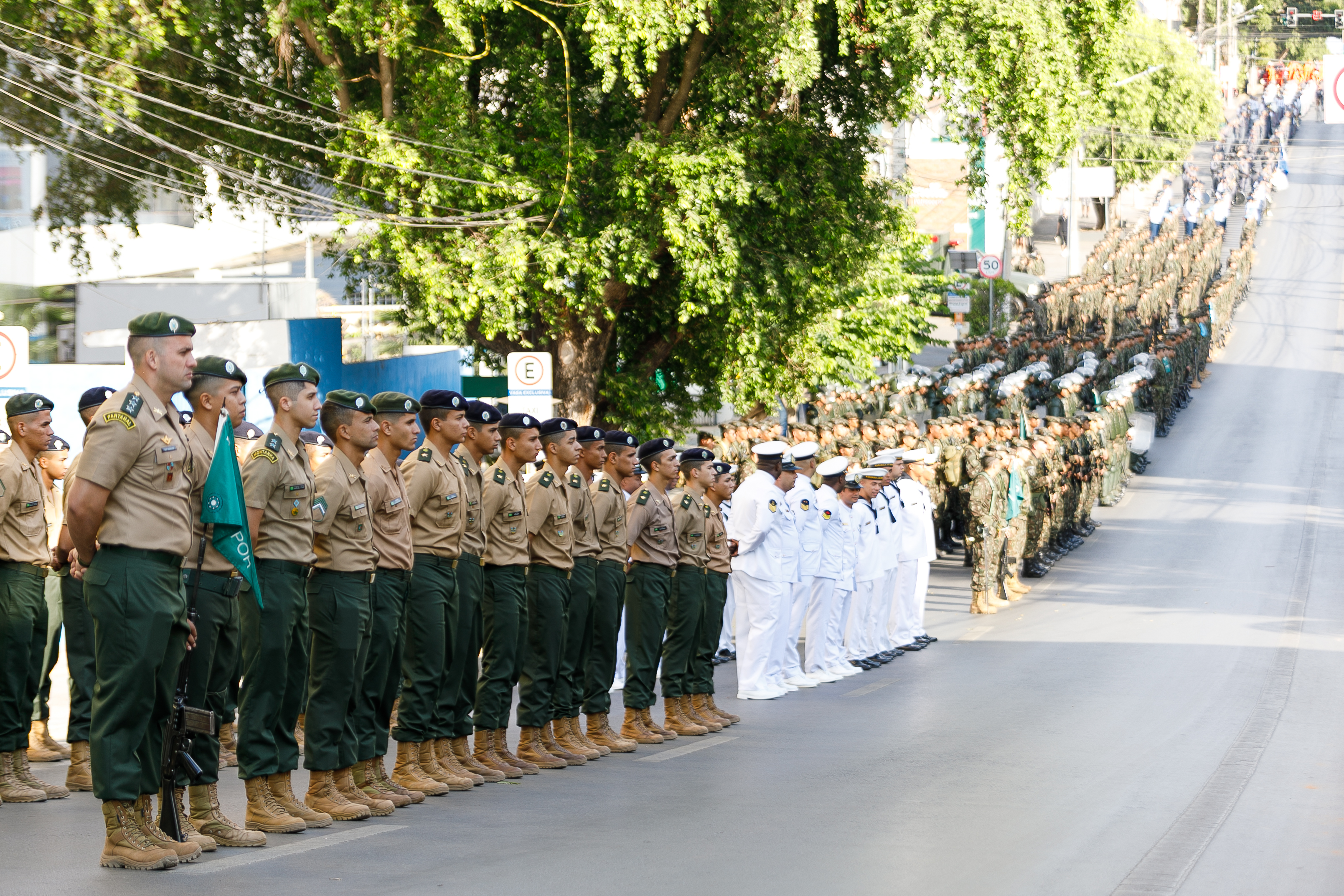 O desfile militar contou com a presença da Marinha do Brasil, Exército, Aeronáutica, Polícia Rodoviária Federal (PRF), Polícia Militar, Corpo de Bombeiros Militar, Polícia Judiciária Civil, a Secretaria de Estado de Justiça (SEJUS) e Cavalaria da PM. Também participaram a Umadecre e o Grupo Pereira, que completa 63 anos de história.