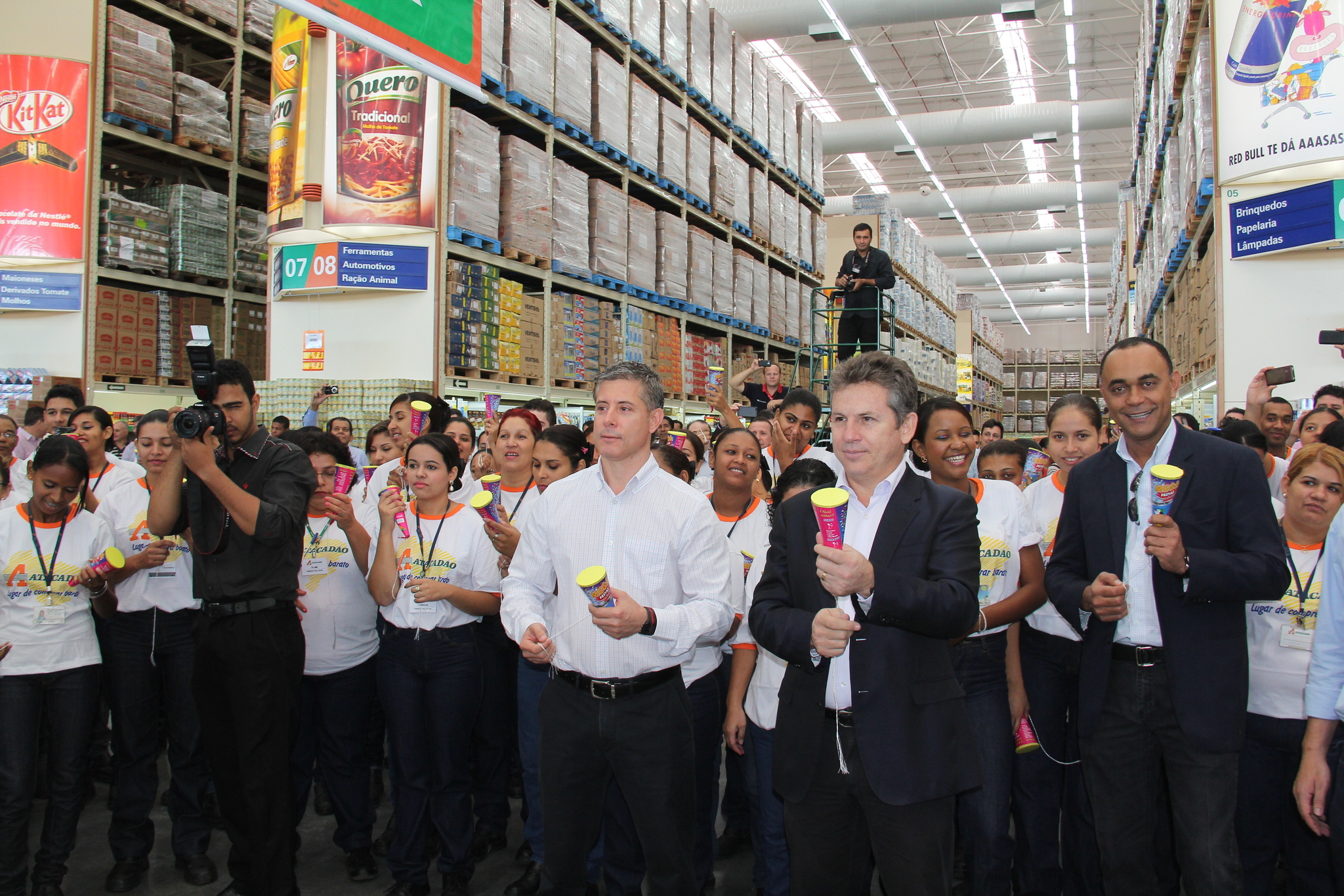 O prefeito Mauro Mendes participou hoje (17) da reinauguração do supermercado Atacadão, parceiro da Prefeitura de Cuiabá na obra Porto Cuiabá. A loja foi reconstruída para dar lugar a uma estação do Veículo Leve sobre Trilhos (VLT), na Avenida XV de Novembro.