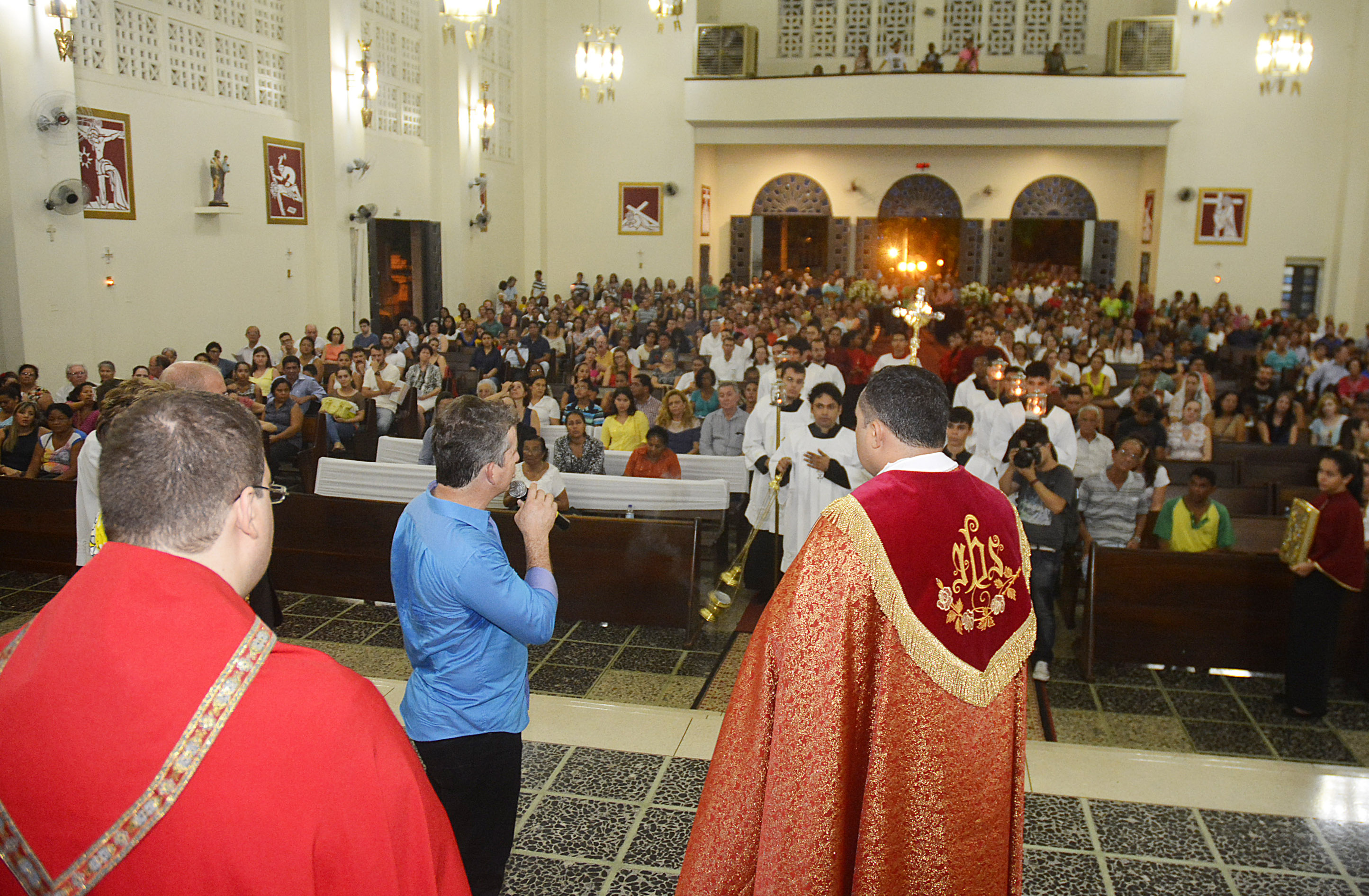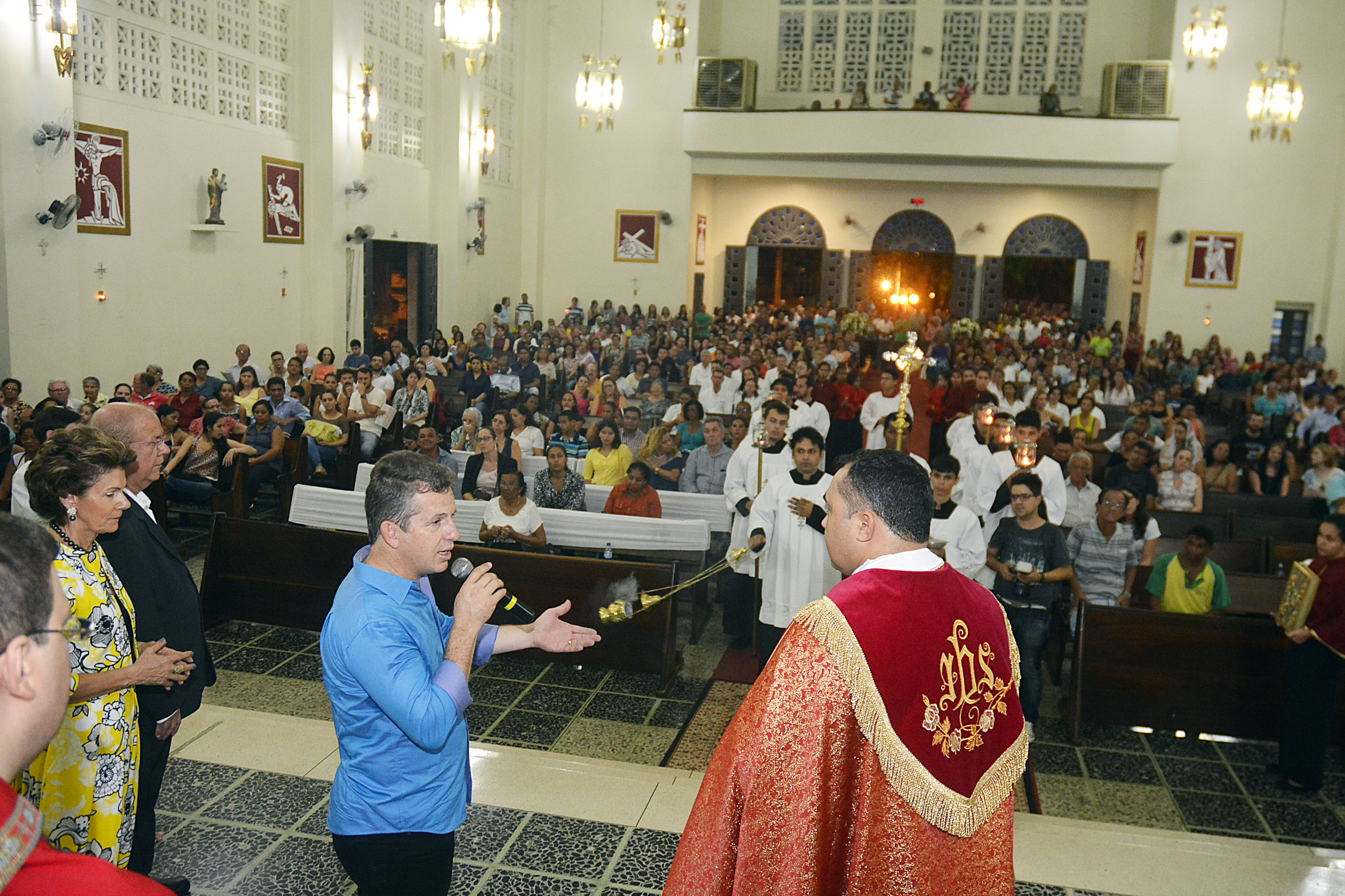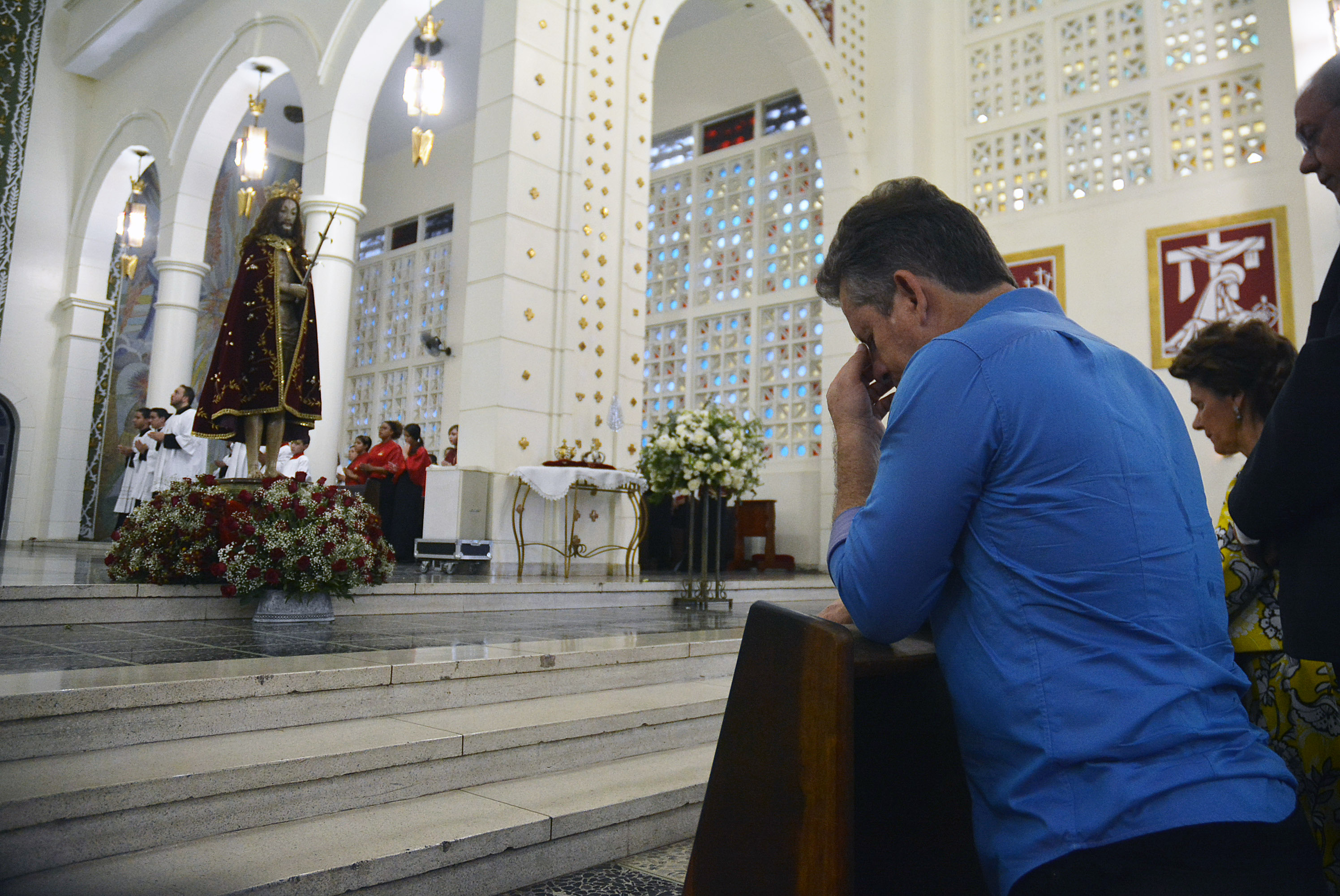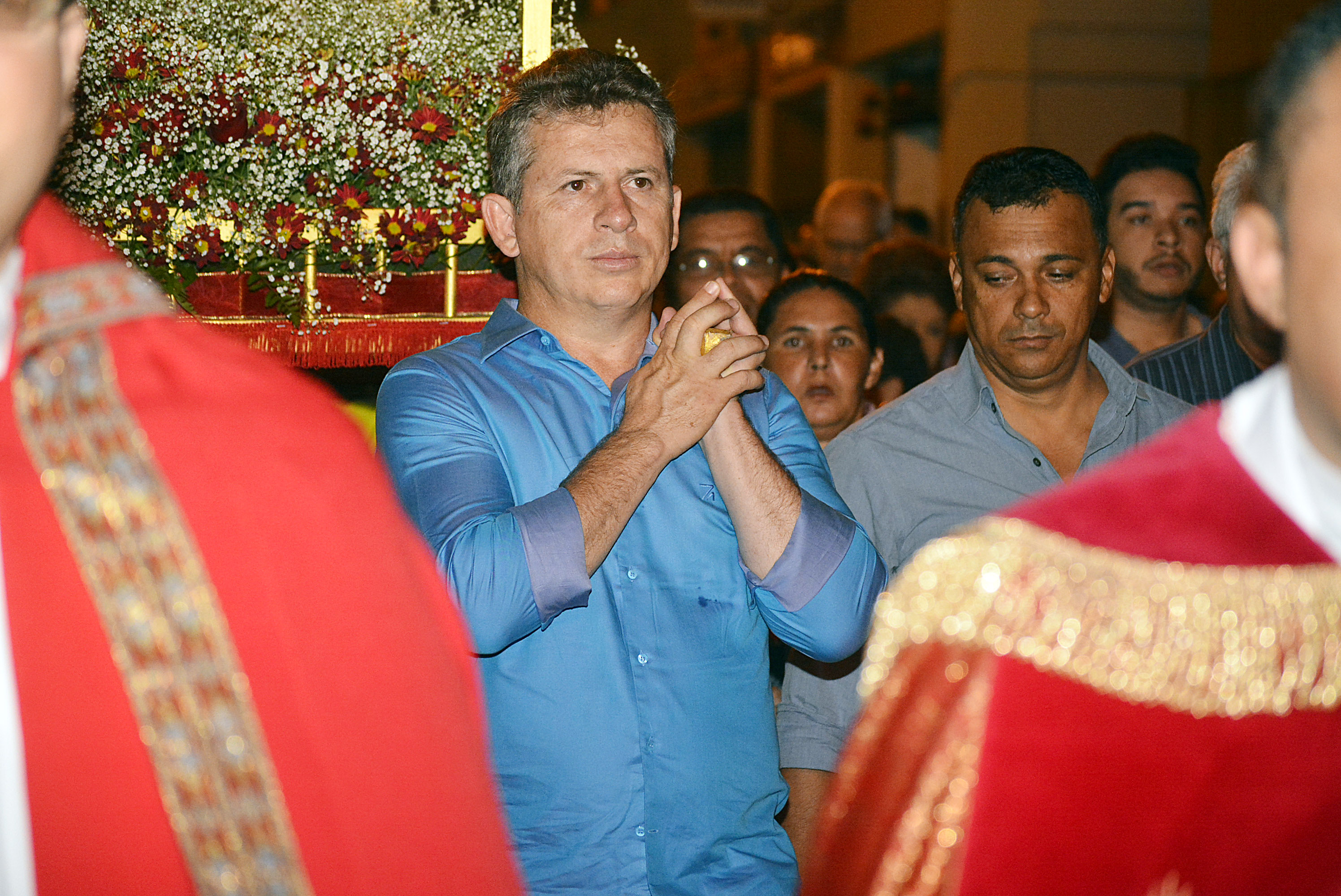 O prefeito Mauro Mendes participou na tarde de domingo (27) da santa missa e da procissão que marca o encerramento dos festejos do Senhor Bom Jesus de Cuiabá. As festividades aconteceram na Catedral Metropolitana Basílica do Senhor Bom Jesus.