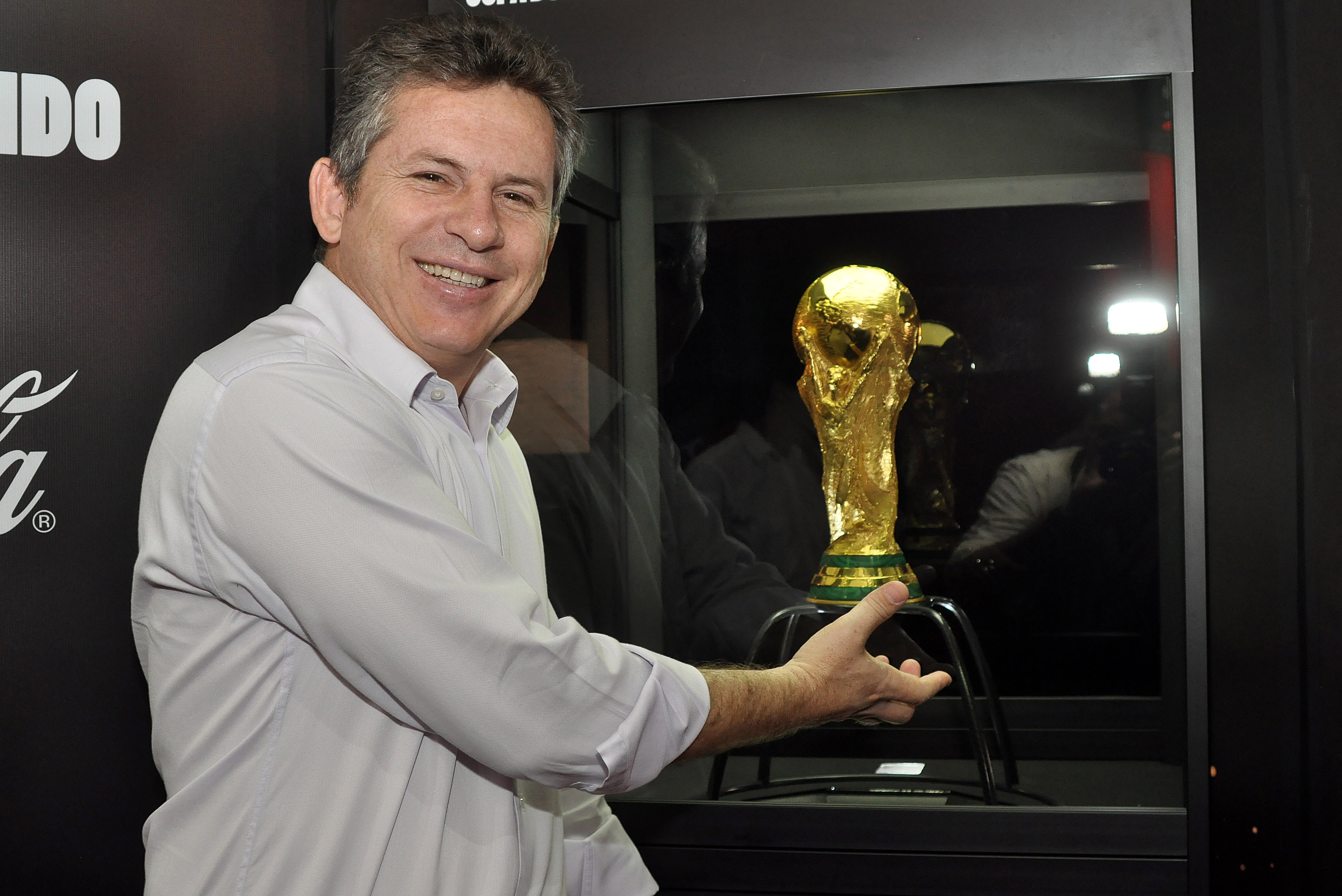 Mauro Mendes prestigia exposição da taça da Copa do Mundo