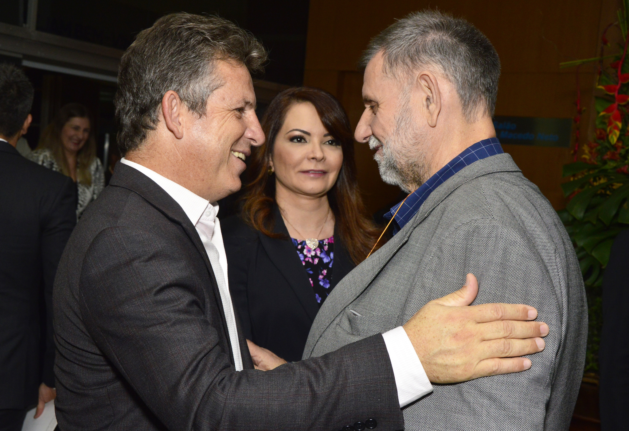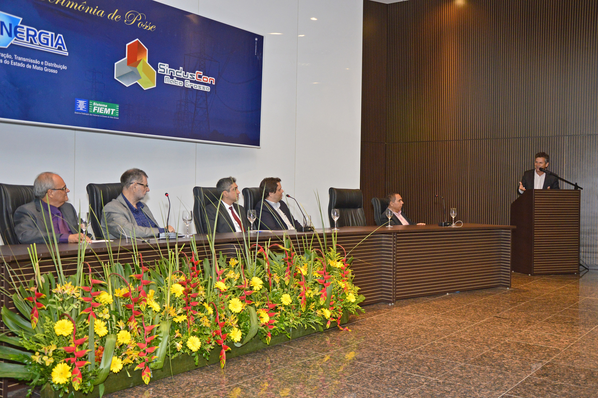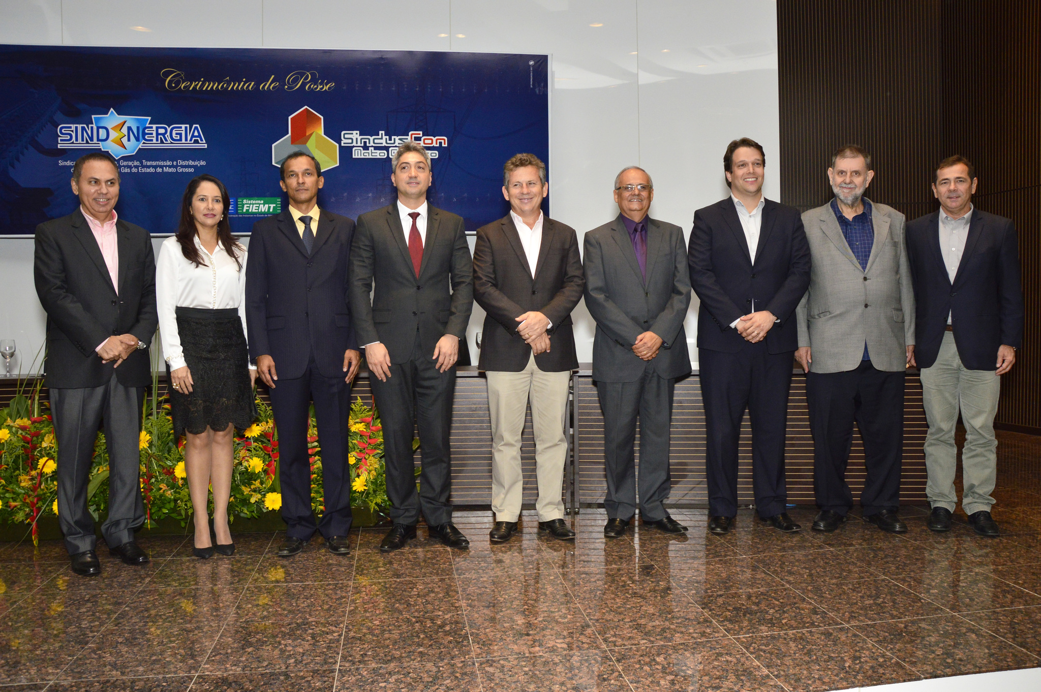 O prefeito Mauro Mendes e a primeira-dama Virginia Mendes prestigiaram na noite de quinta-feira (26) a posse das novas diretorias dos Sindicatos das Indústrias da Construção de Mato Grosso (Sinduscon) e da Construção, Geração, Transmissão e Distribuição de Energia Elétrica e Gás no Estado (Sindenergia), na Fiemt.