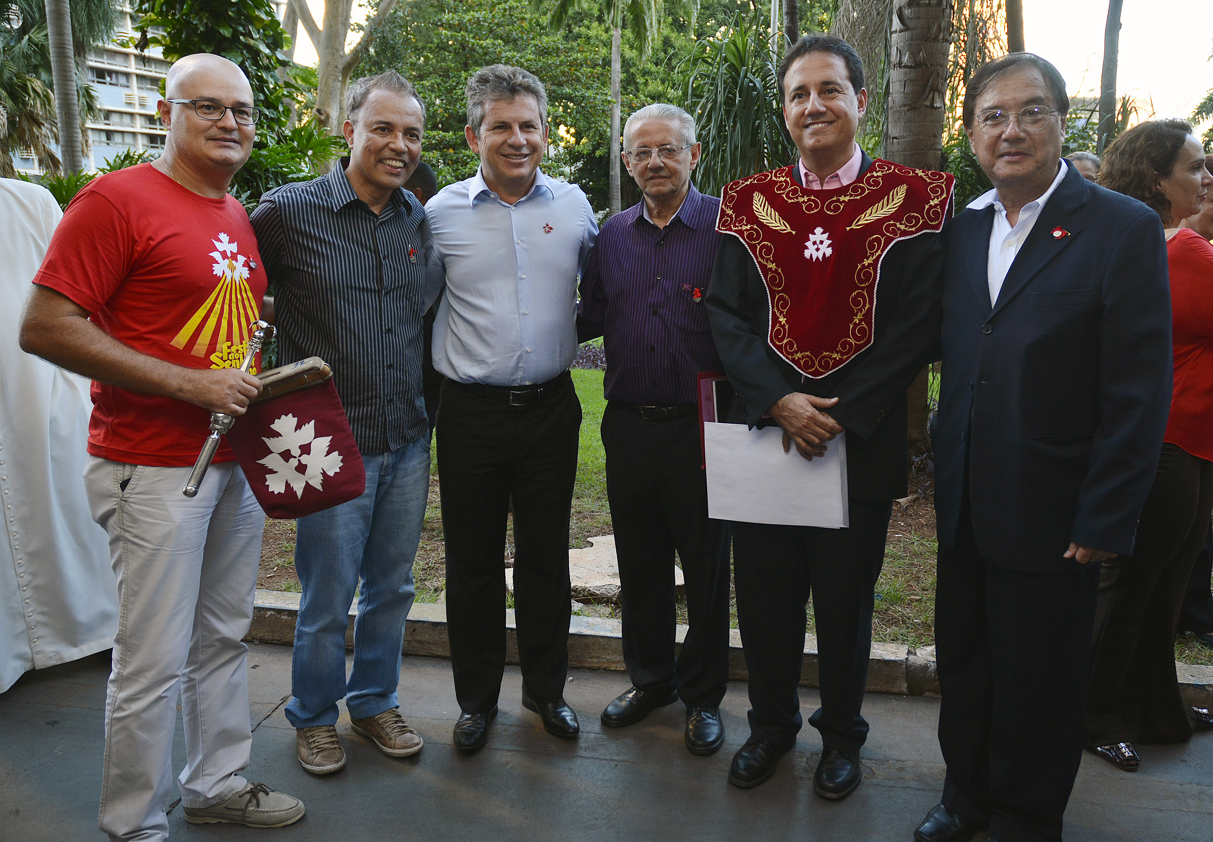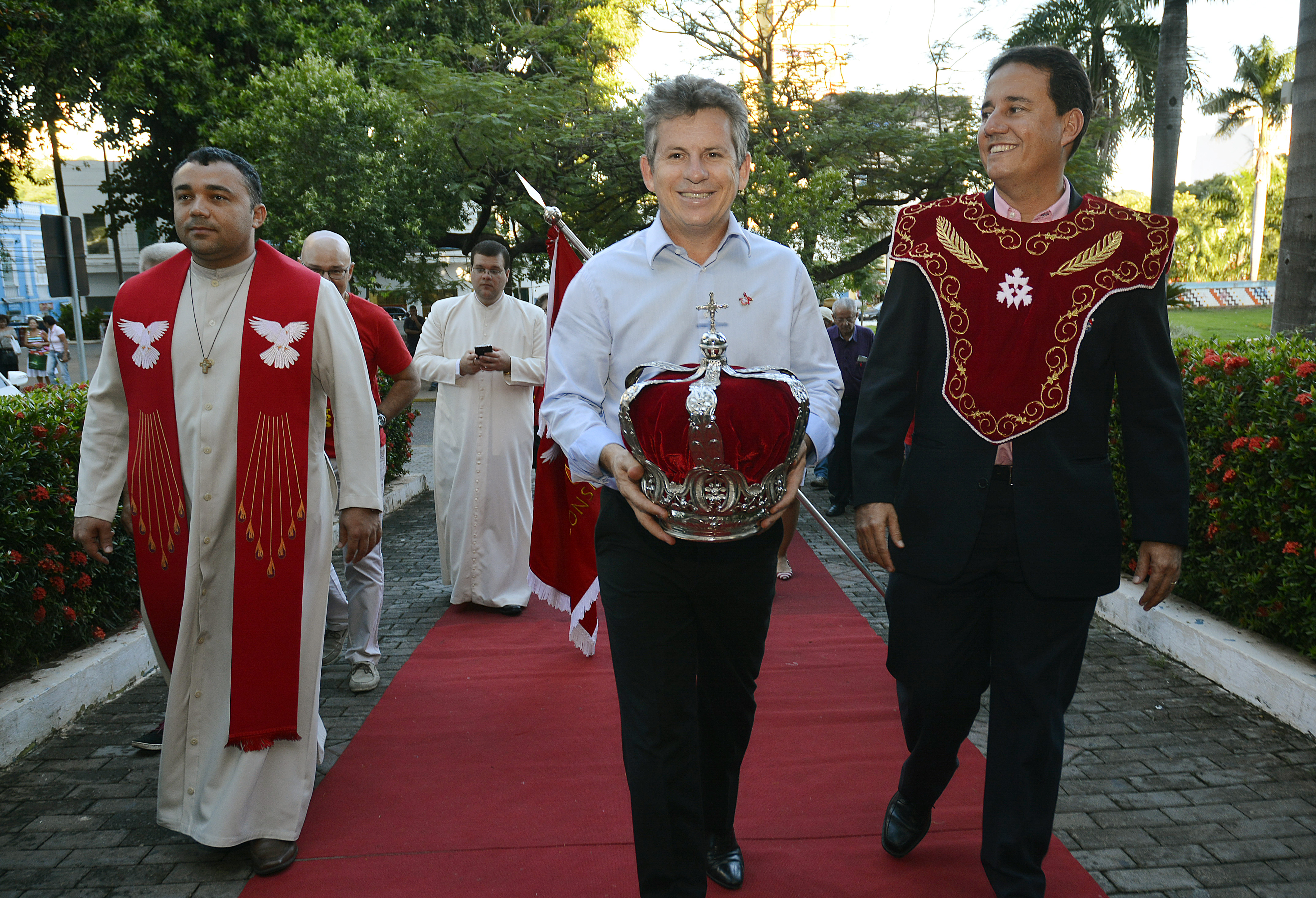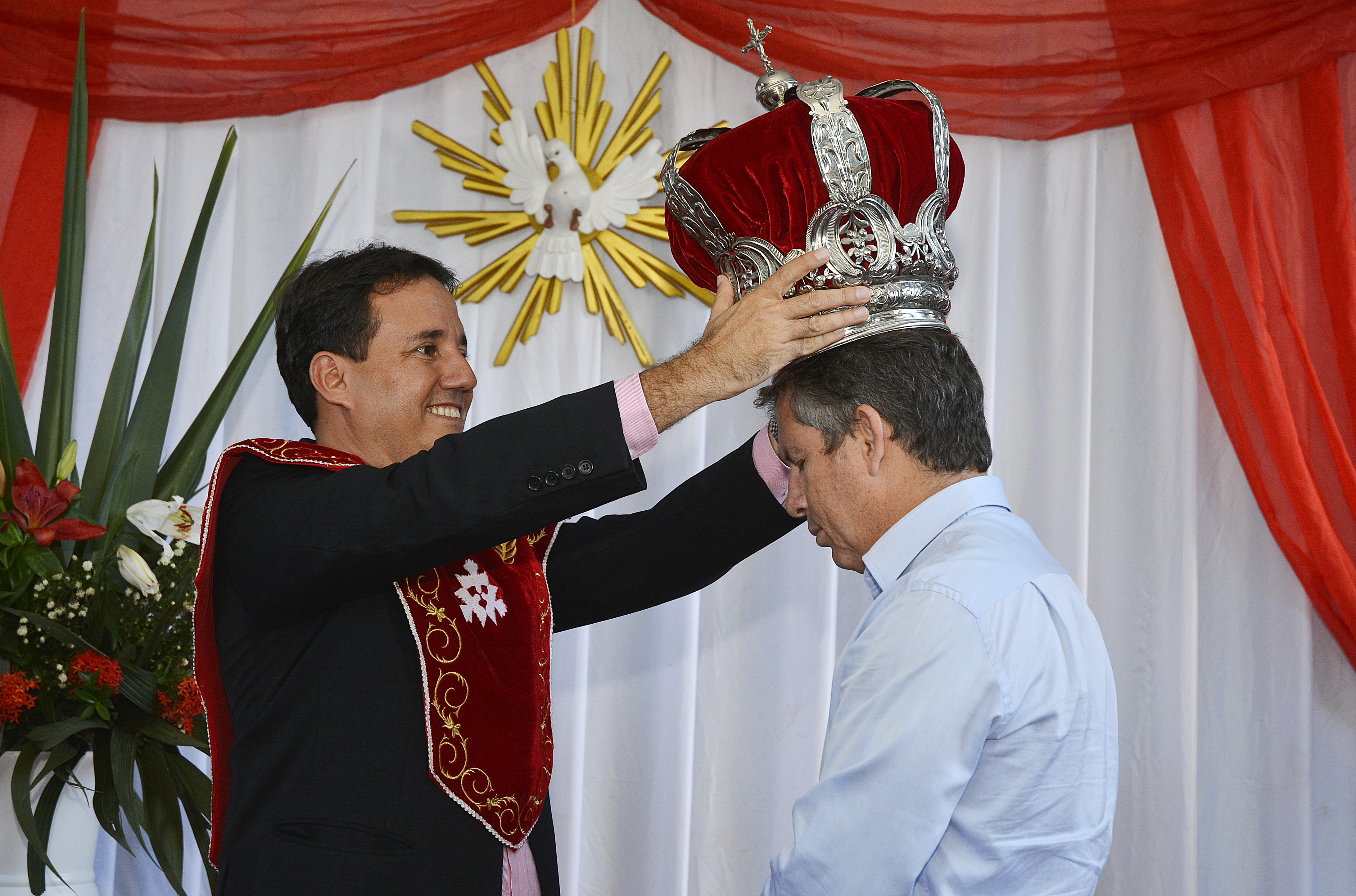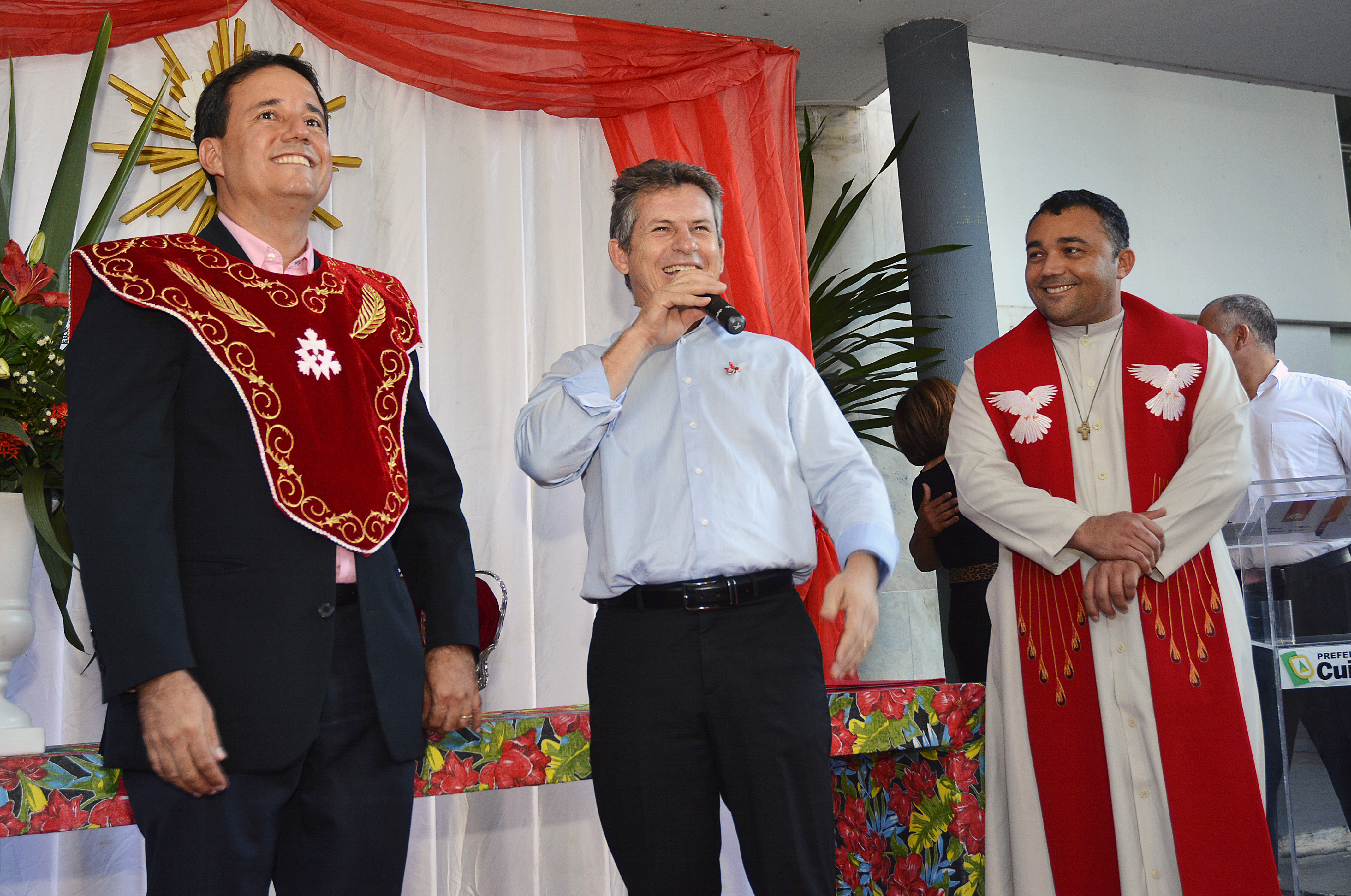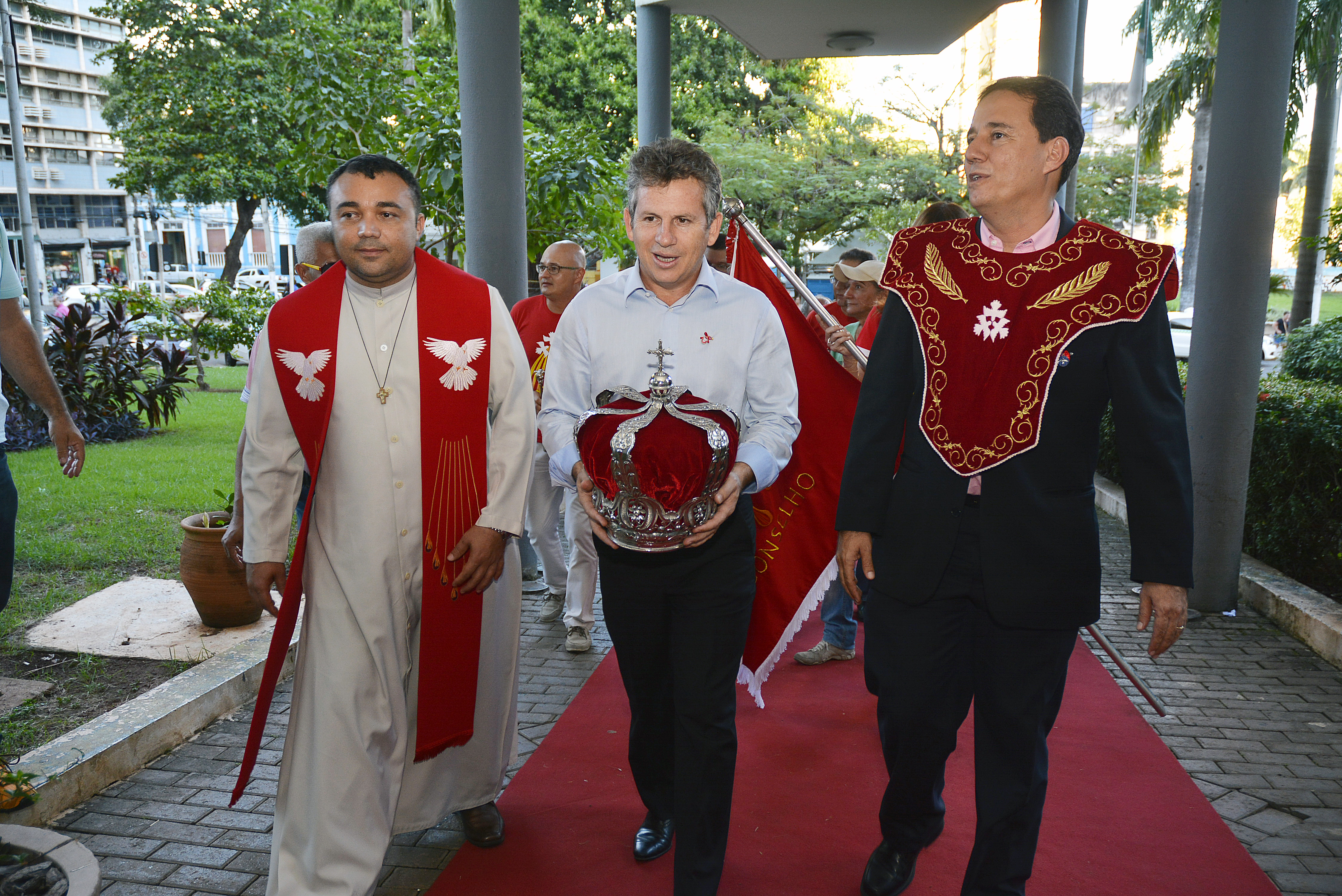 O prefeito Mauro Mendes recebeu na tarde desta quarta-feira (04), no saguão do Palácio Alencastro os festeiros do Senhor Divino Espírito Santo. Na solenidade, o prefeito recebeu das mãos do Imperador da festa, Leopoldo Mario Nigro, a coroa simbólica da festa e também o Certificado de Grande Benemérito da Catedral do Senhor Bom Jesus de Cuiabá, que é dada a personalidades que se destacam na preservação das tradições religiosas. A solenidade faz parte do calendário litúrgico; uma tradição da cultura religiosa cuiabana há mais 170 anos.