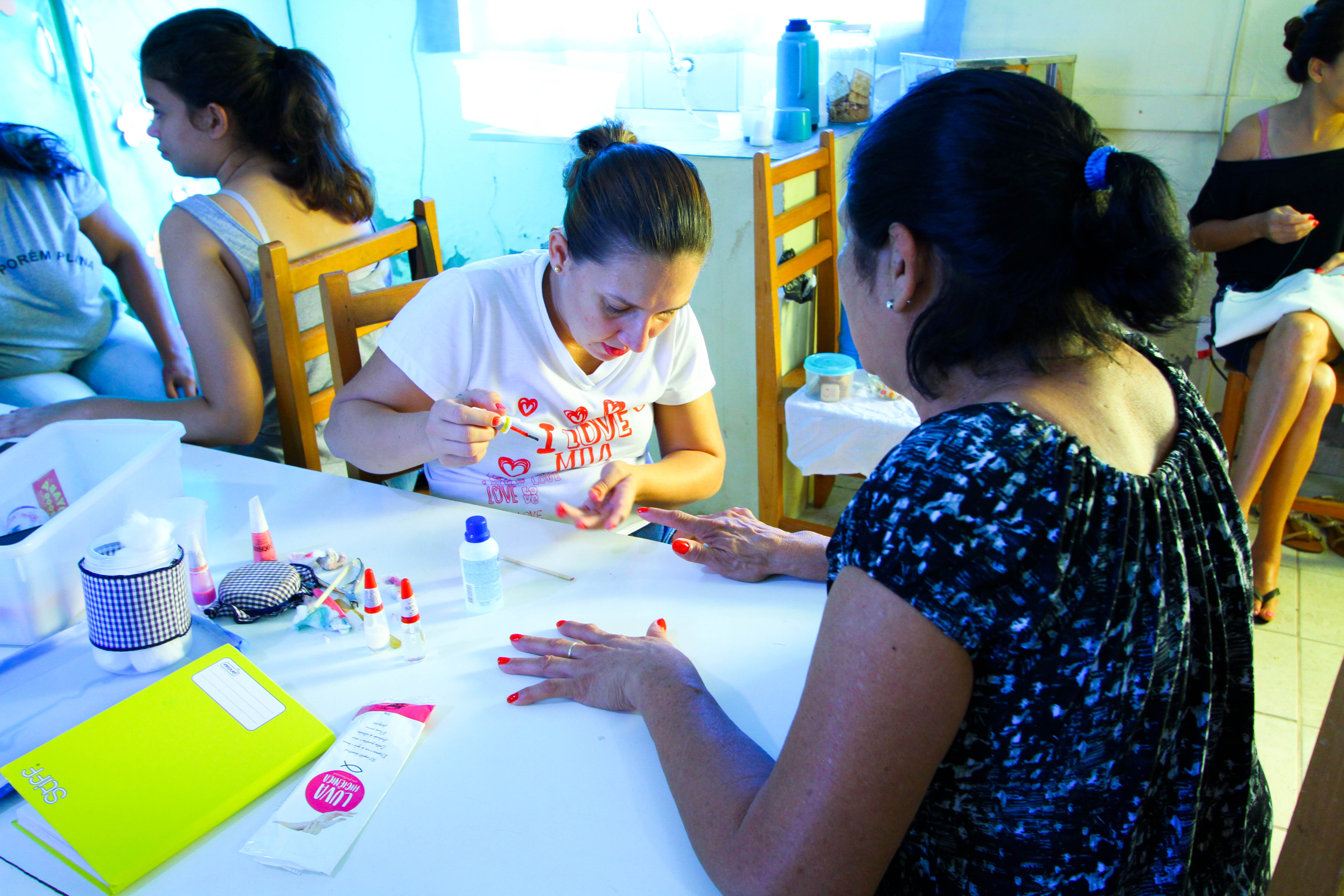No Cras do bairro Jardim Araçá, as alunas estão tendo a oportunidade de aprender as técnicas no curso de manicure e pedicure. A capacitação faz parte do Programa Qualifica 300 - Edição Mulher, idealizado pela primeira-dama Márcia Pinheiro e coordenado pela Secretaria Municipal de Assistência Social e Desenvolvimento Humano (Smasdh).