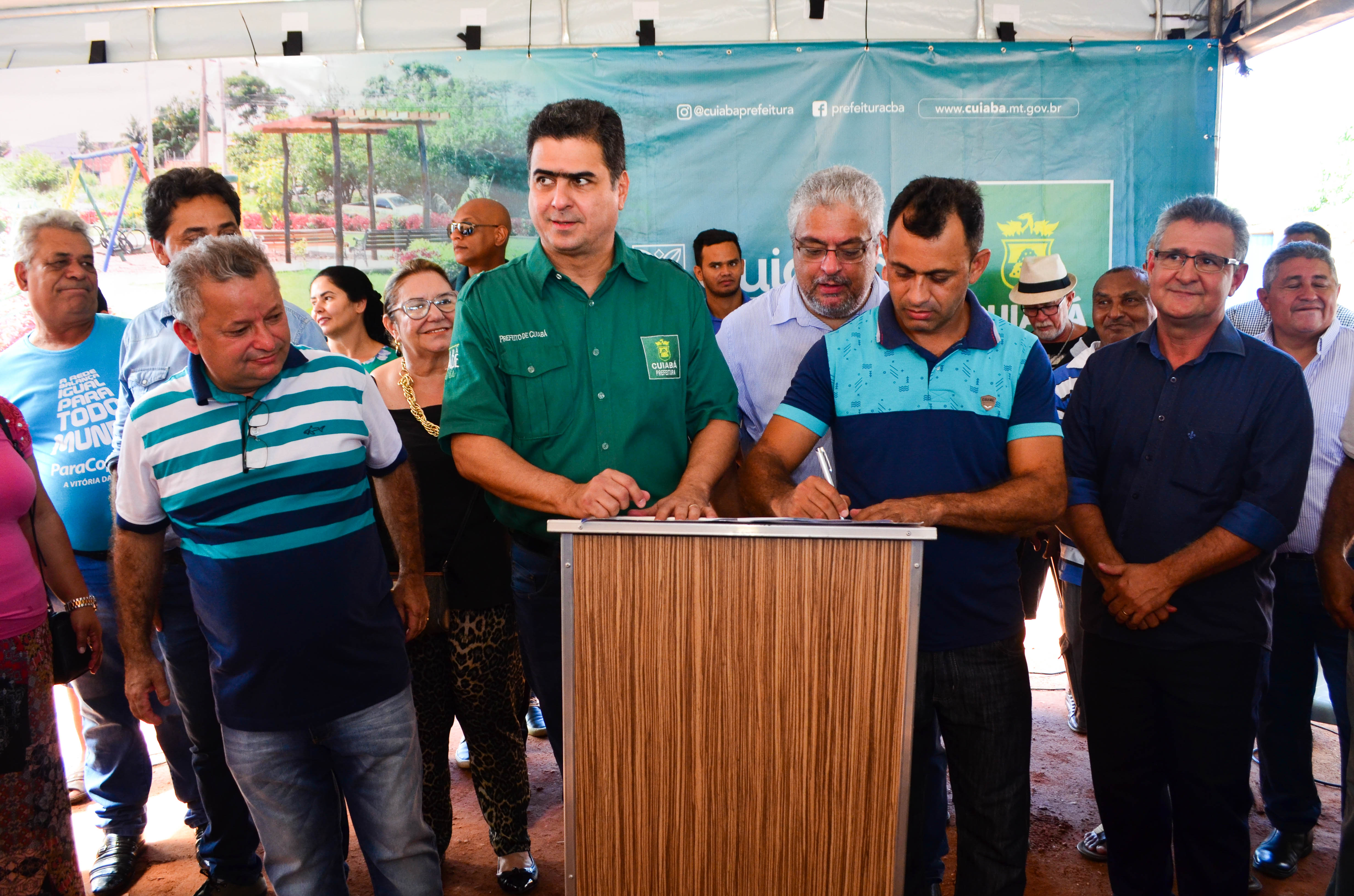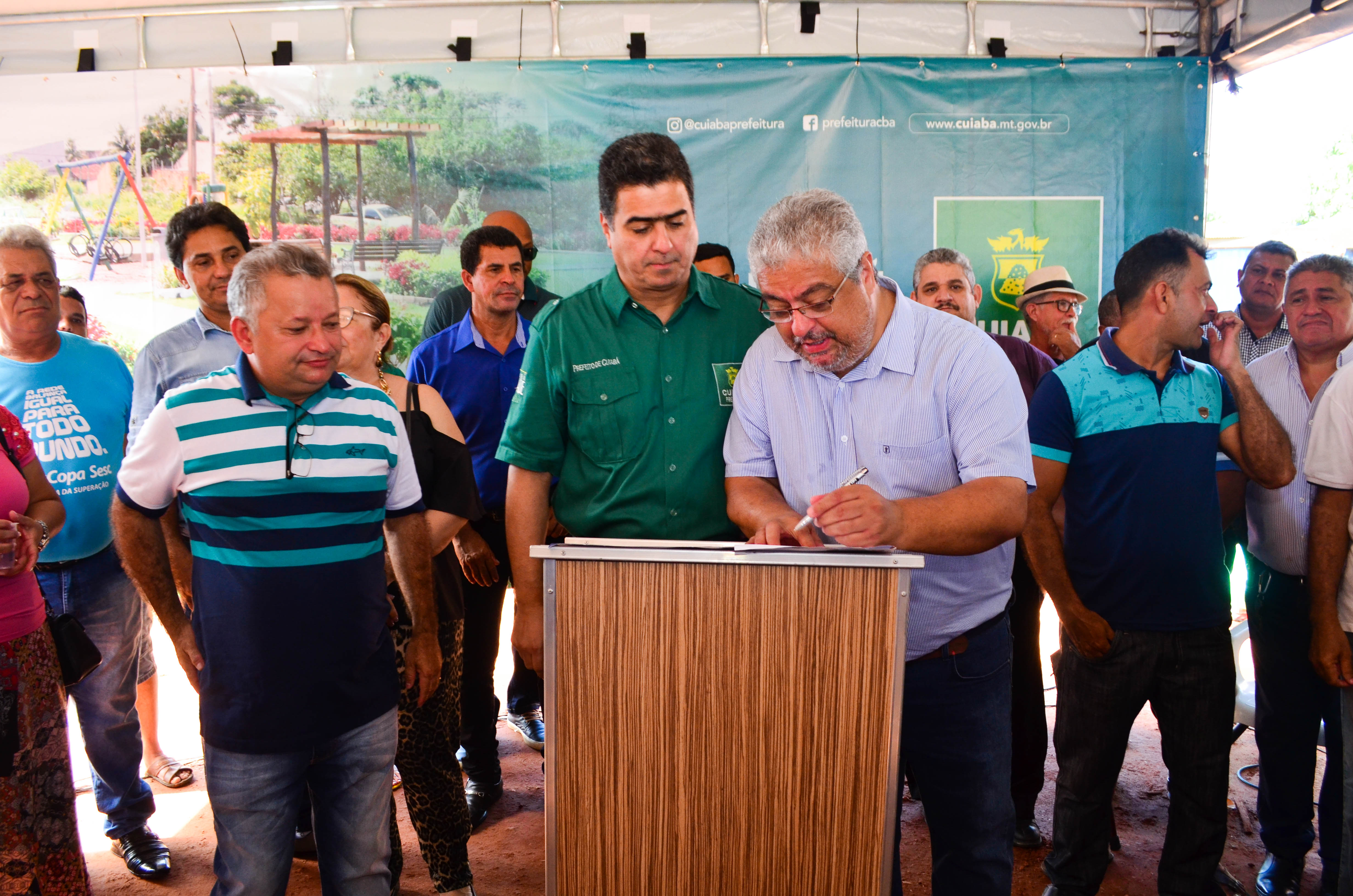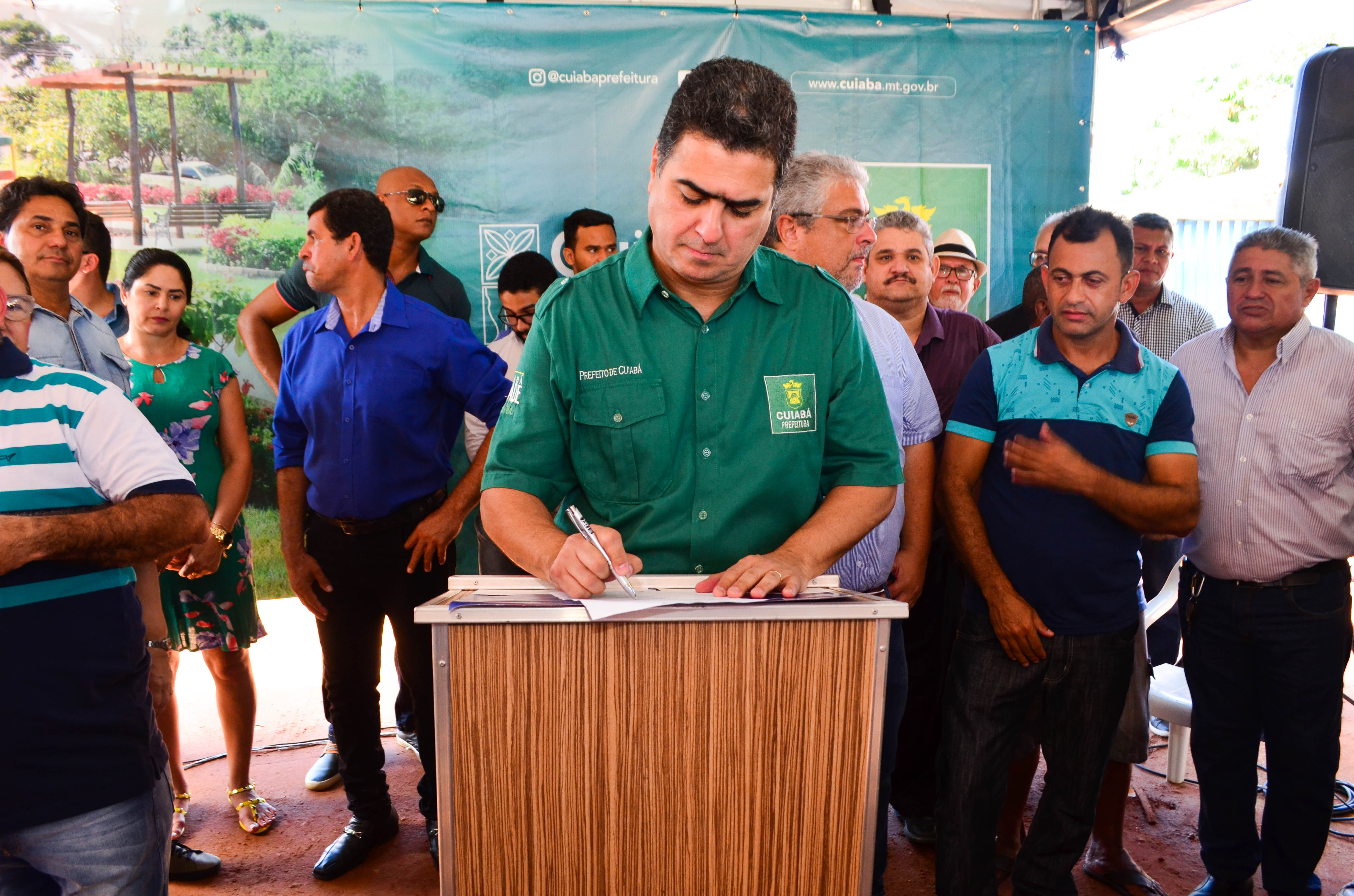 O prefeito de Cuiabá, Emanuel Pinheiro, assinou a ordem de serviço referente a segunda etapa das obras de pavimentação de mais 6,53 km de asfalto e drenagem, além da construção da área de lazer do bairro São João Del Rey.