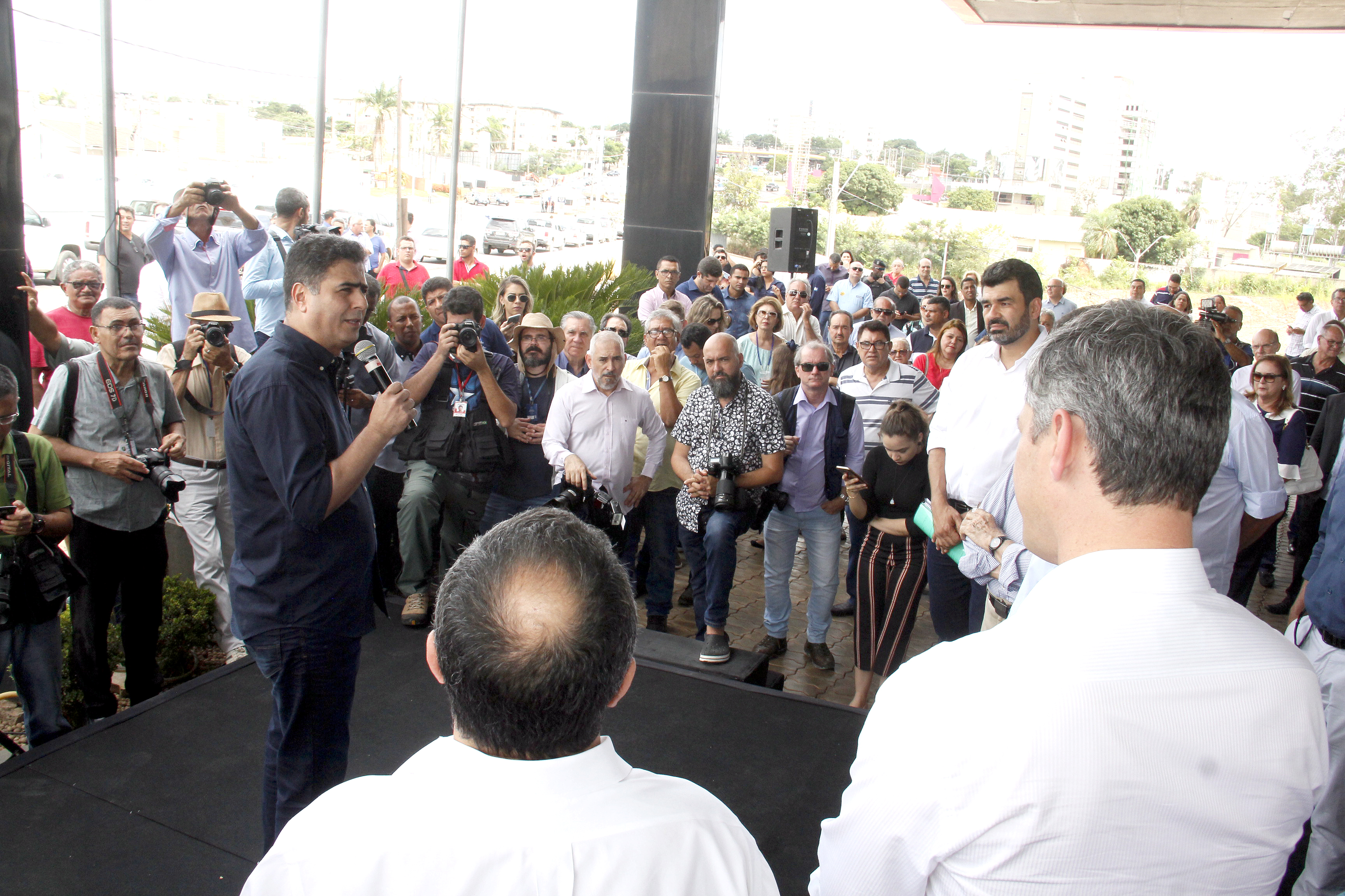 Durante a cerimônia, o Governador do Estado, Pedro Taques passou a administração da trincheira para o município.