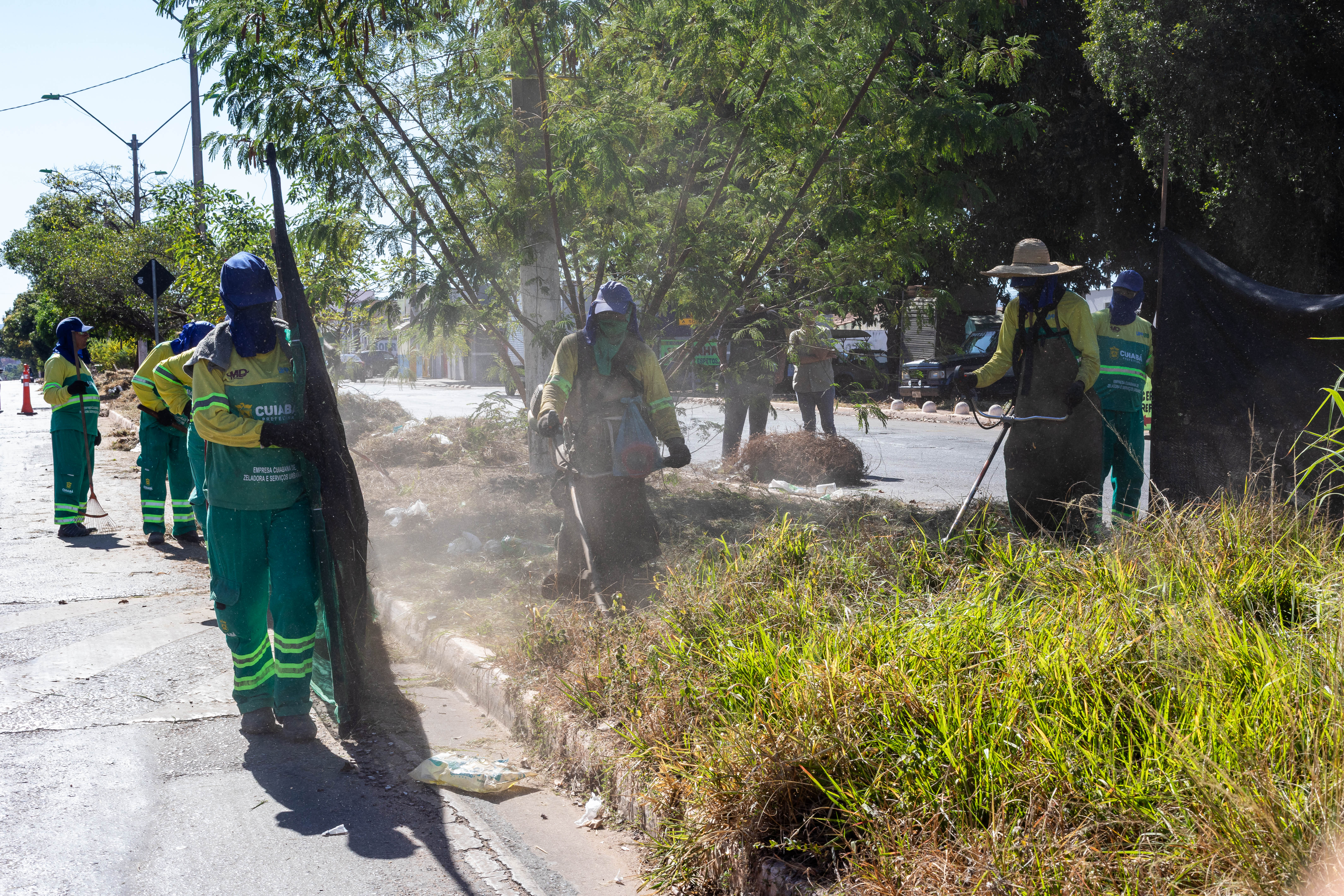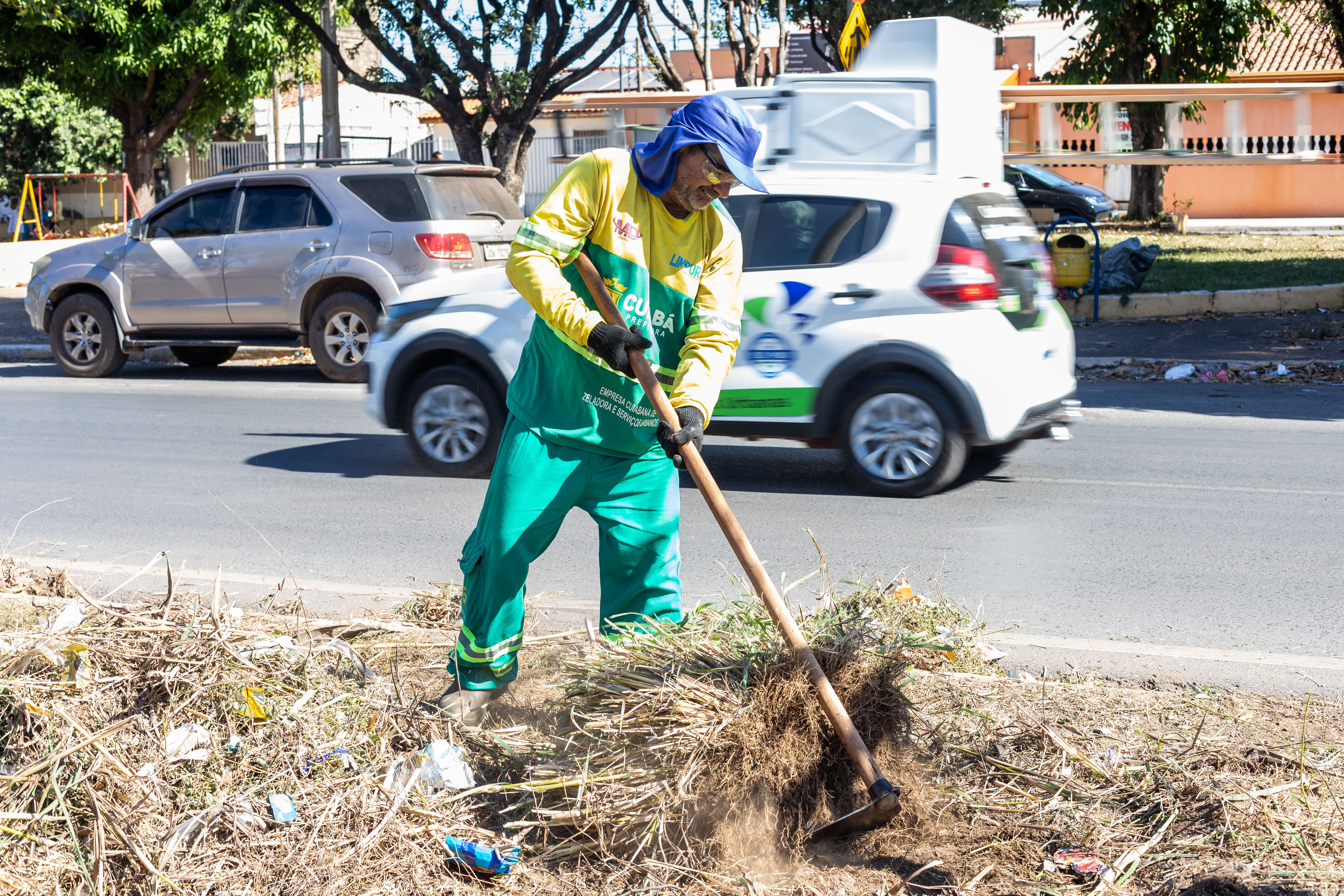 A Prefeitura de Cuiabá, por meio da Empresa Cuiabana de Zeladoria e Serviços Urbanos (Limpurb), segue intensificando as ações de limpeza urbana na capital. Na quarta-feira (18), as equipes atuaram na Avenida Tuiuiú, localizada no bairro CPA IV, com a realização de roçagem, varrição, pintura de meio-fio e manutenção na rede de iluminação pública.