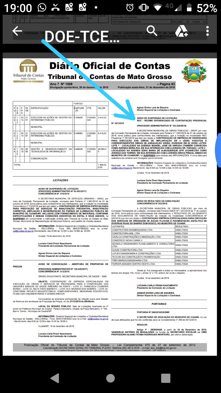 Veja anexa a publicação com a suspensão realizada a pedido da Prefeitura de Cuiabá.
