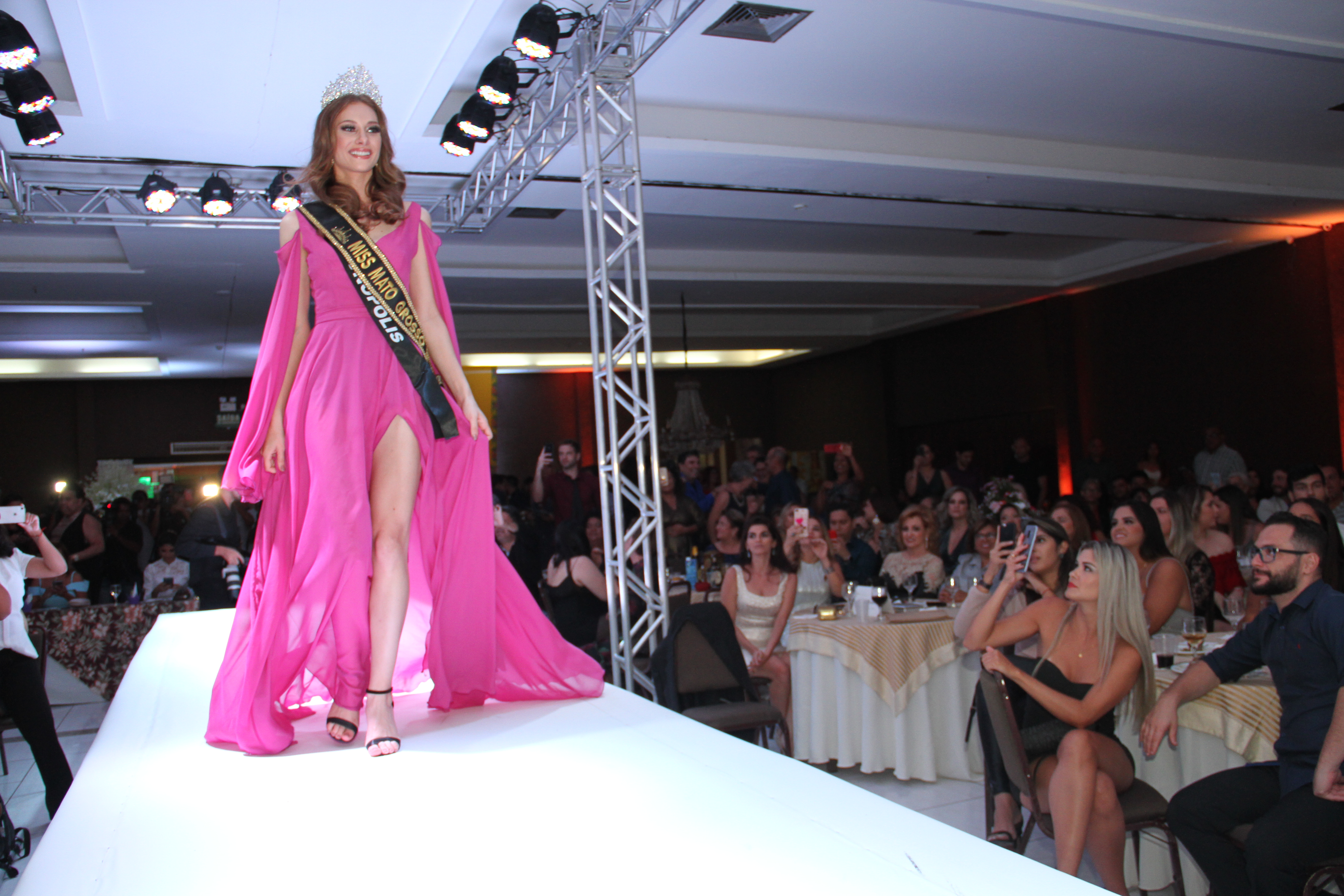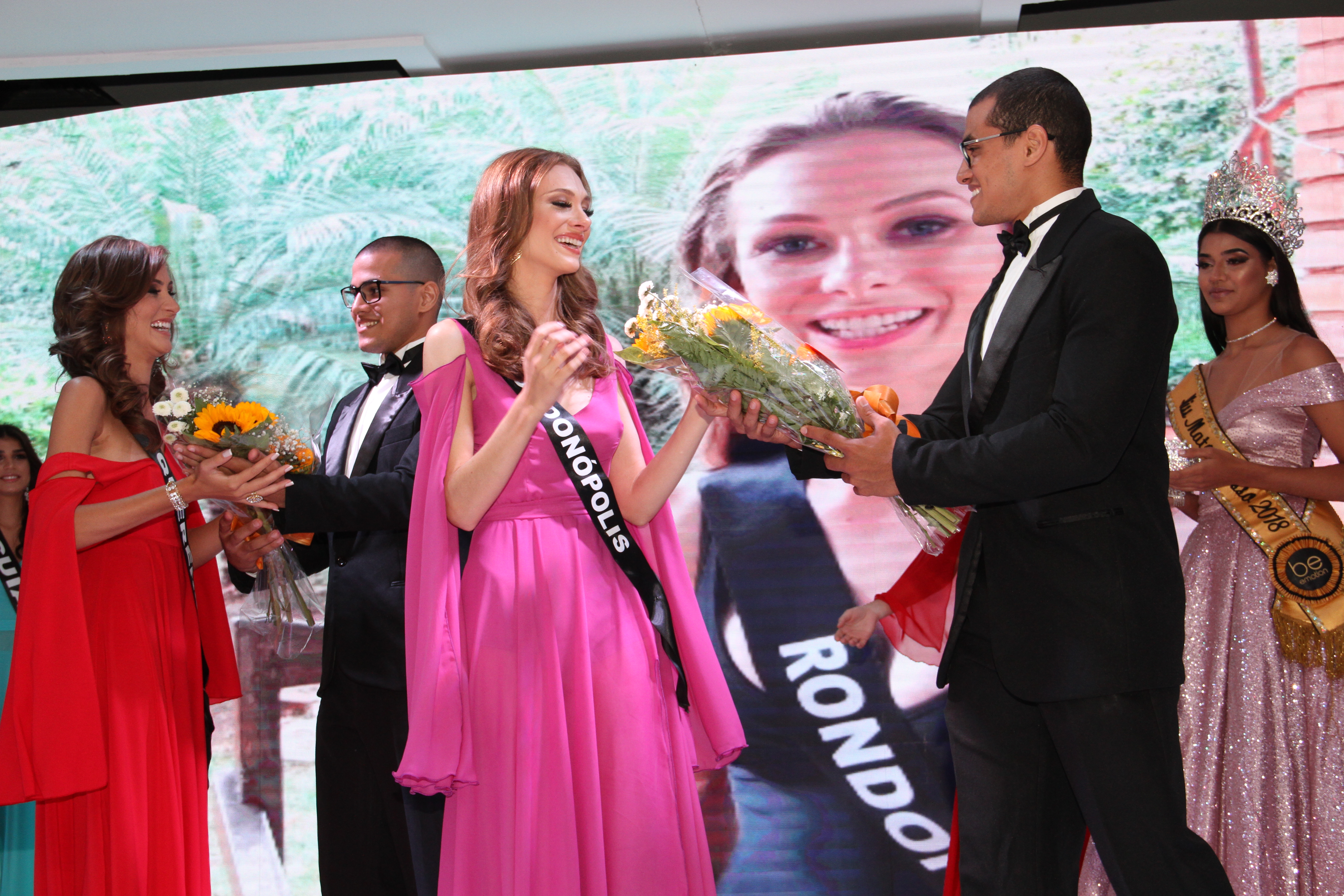 Após receber a faixa da mãos da Miss Mato Grosso 2018, Caroline Back, de 18 anos, a nova representante discursou sobre seu próprio projeto social que realiza em Rondonópolis e disse que já acompanha o trabalho da primeira-dama de Cuiabá.